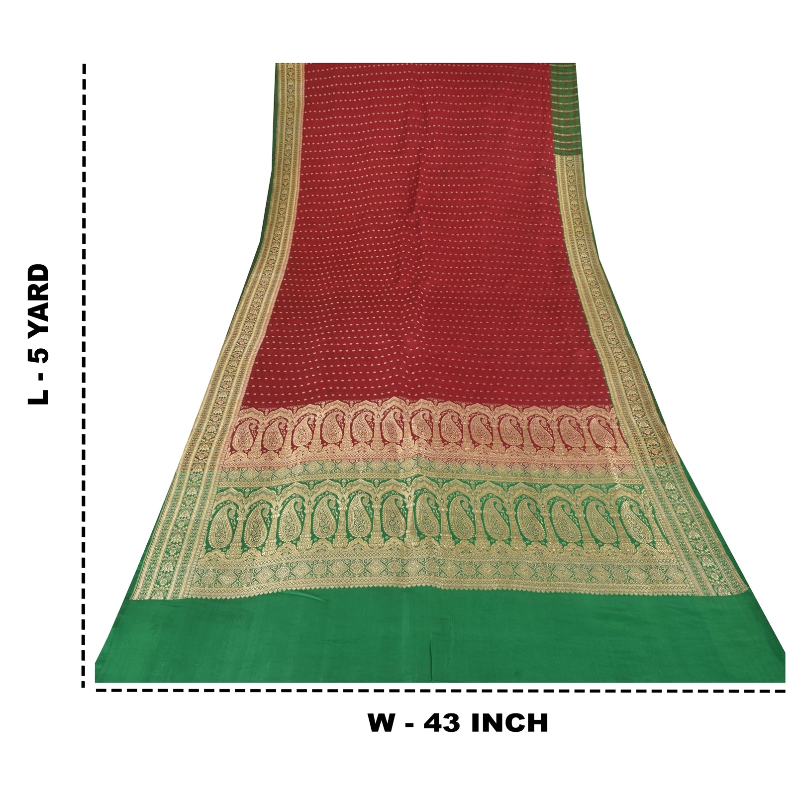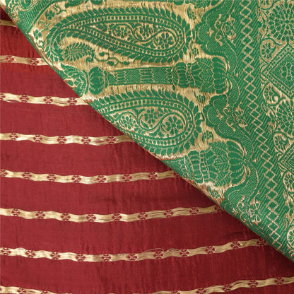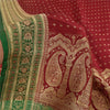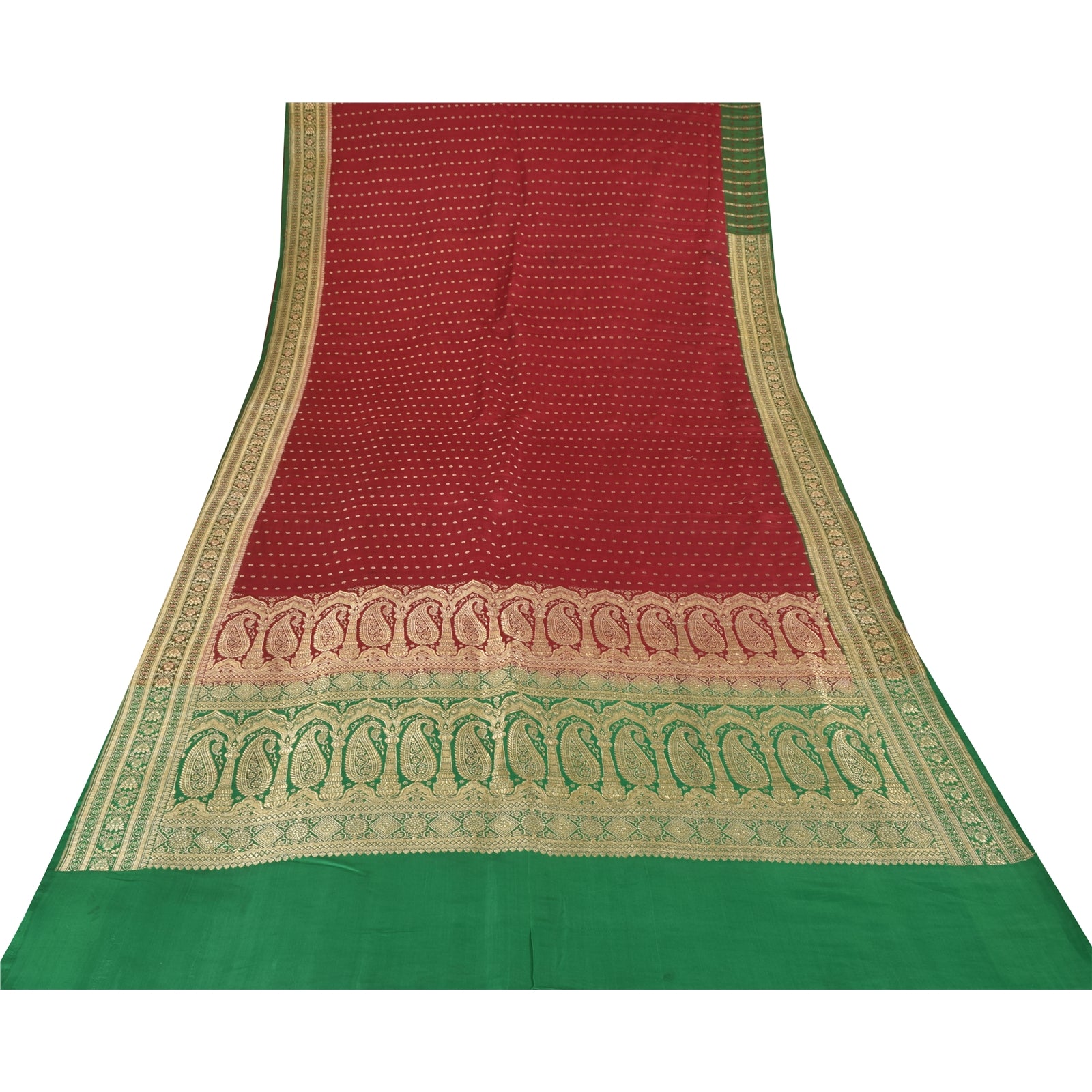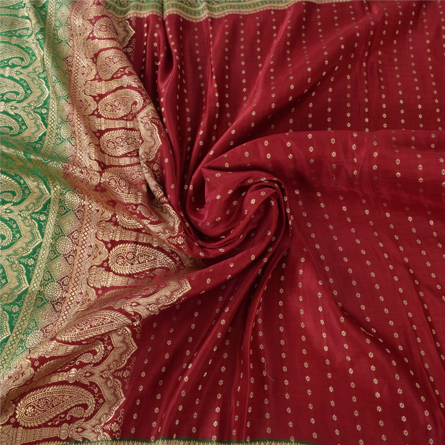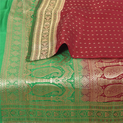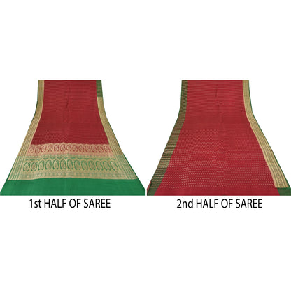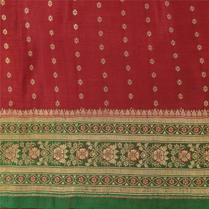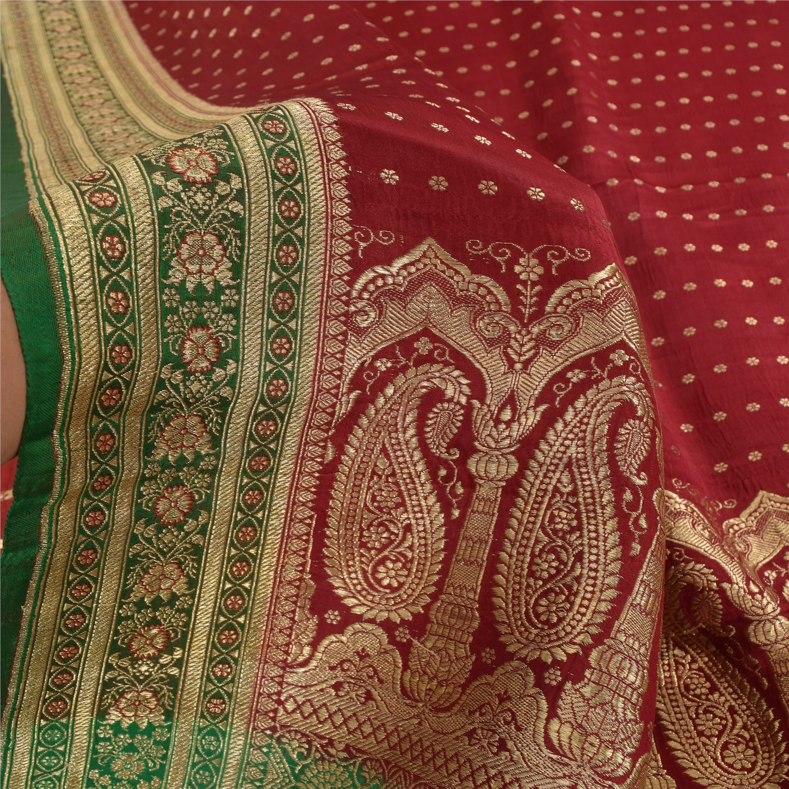 Sanskriti Vintage Green/Red Sarees Pure Silk Brocade/Banarasi Woven Sari Sustainable Fabric