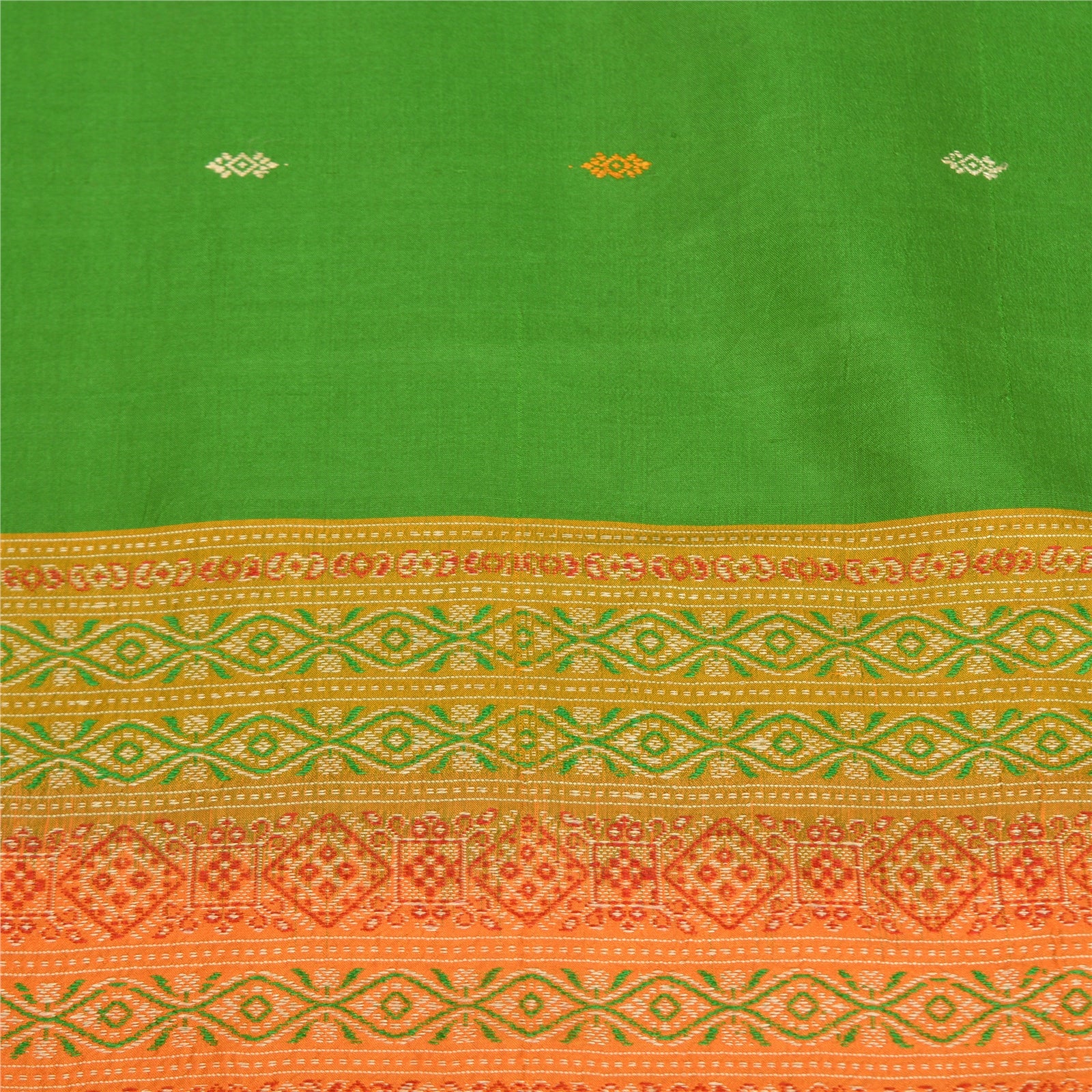 Sanskriti Vintage Green/Saffron Sarees Pure Silk Woven Premium Sari Fabric