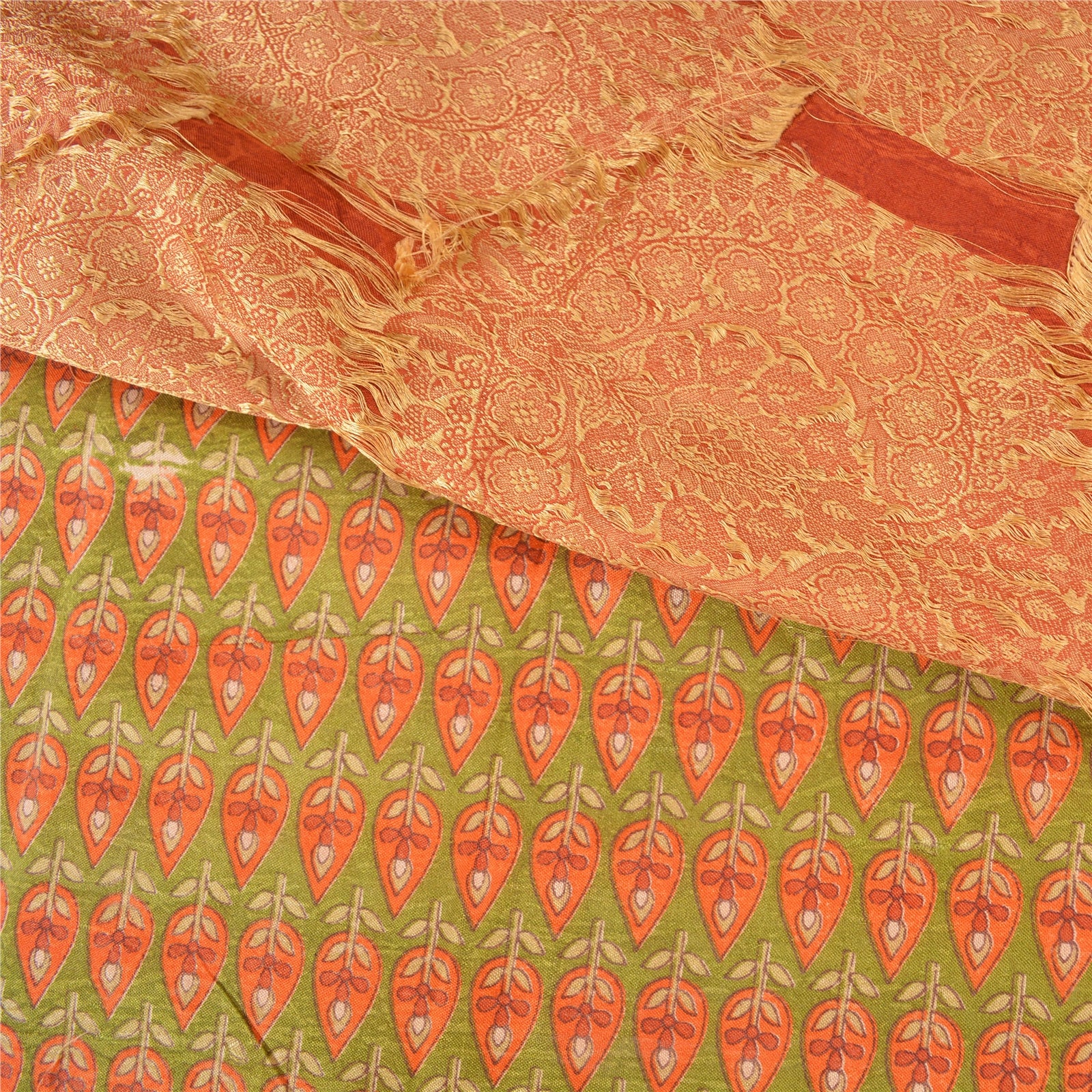 Sanskriti Vintage Green Sarees 100% Pure Silk Woven Printed Sari Craft Sustainable Fabric