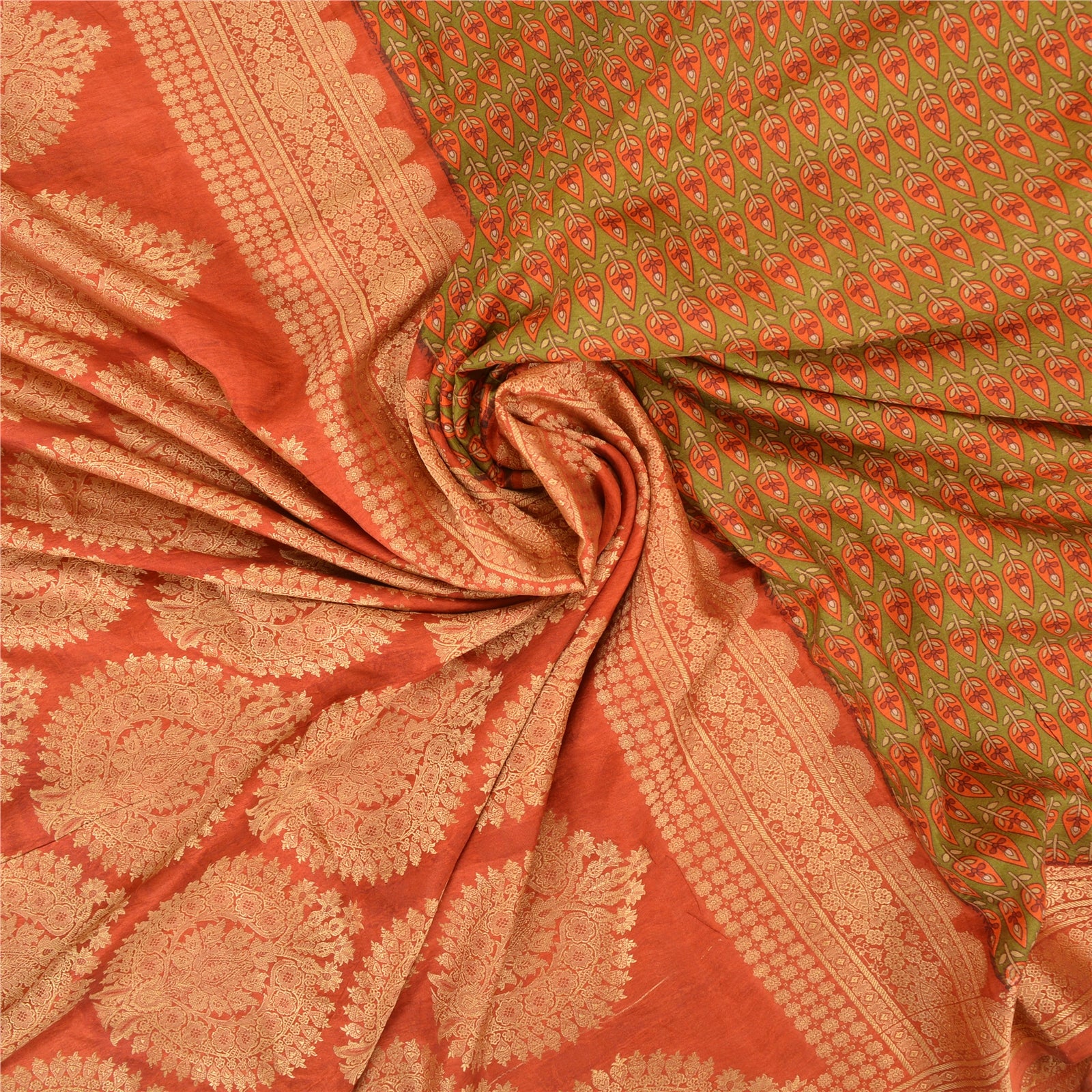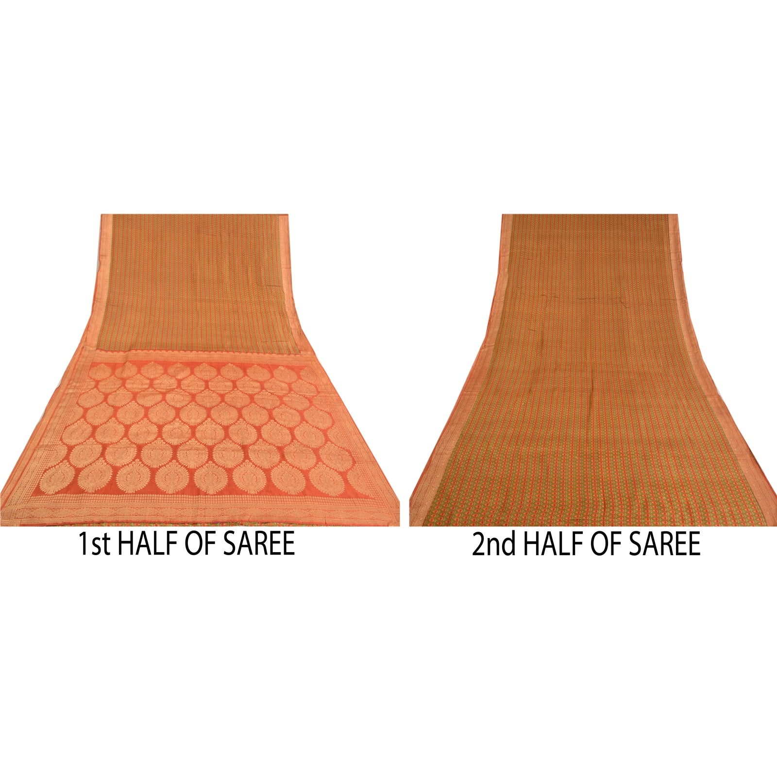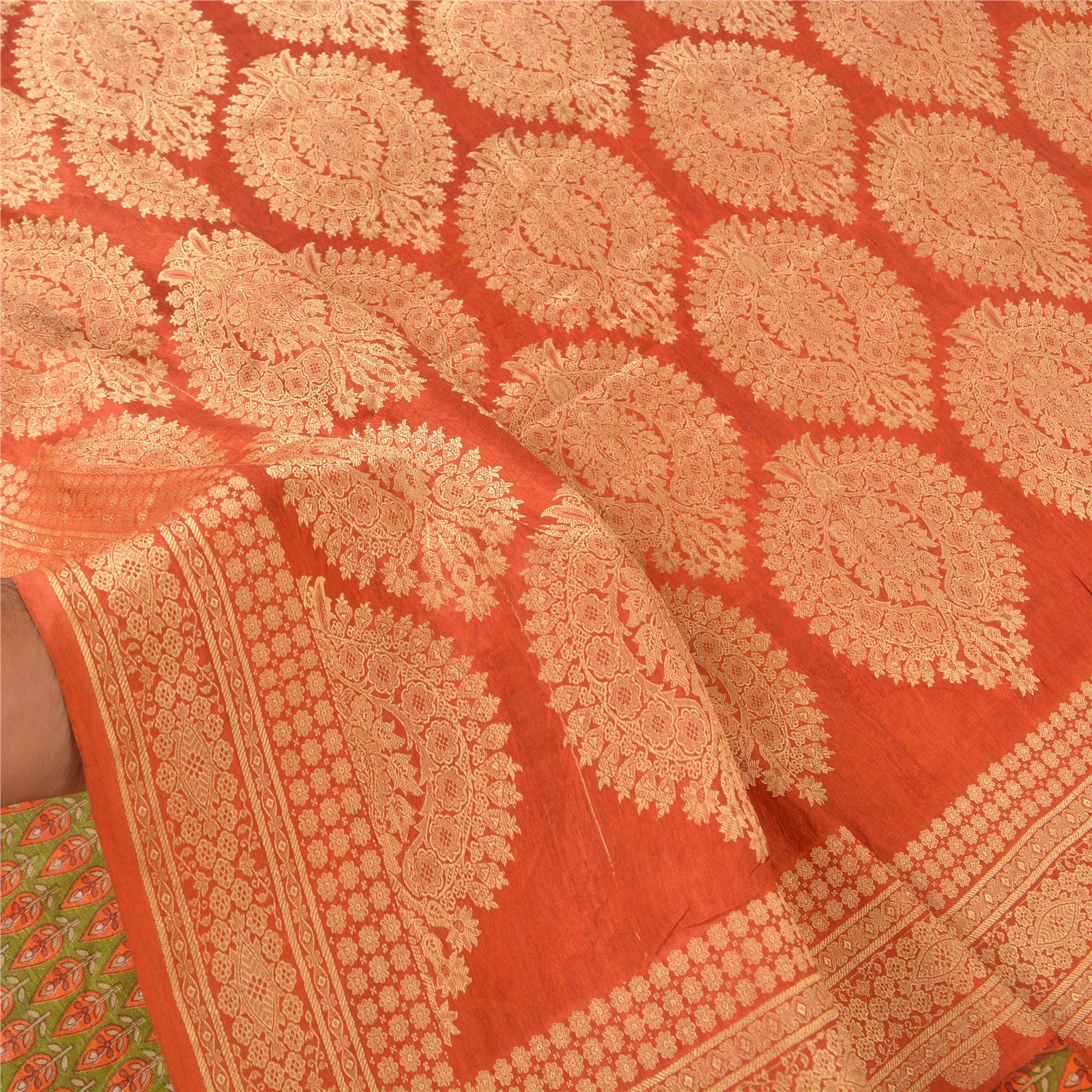'THE ITEM COLOR OR SHADE MAY BE DARKER OR LIGHTER THAN THE PICTURE.' Beautiful green & orange colored pure silk woven & printed sari. Pallu & border features are beige woven thread work with floral design. The center of the saree has printed floral design. This saree can be used for various crafting ideas too. Use it for dress designing, as a throw, as window dressing, upholstery, table linen and much more. Let your creative juices flow. 'International buyers please note: Import duties, taxes, and charges are not included in the item price or postage cost. These charges are the buyer's responsibility. Please check with your country's customs office to determine what these additional costs will be prior to bidding or buying. Buyer will pay custom duty/tax. It is calculated and charged differently by every country. As a seller I do not have any control over it. VAT or sales tax is calculated by the platform at the time of checkout. Customs charge is payable at the time of delivery.'