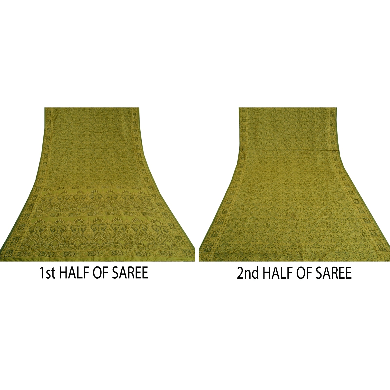 Sanskriti Vintage Green Sarees Art Silk Woven Premium Sari Craft 5 Yard Sustainable Fabric