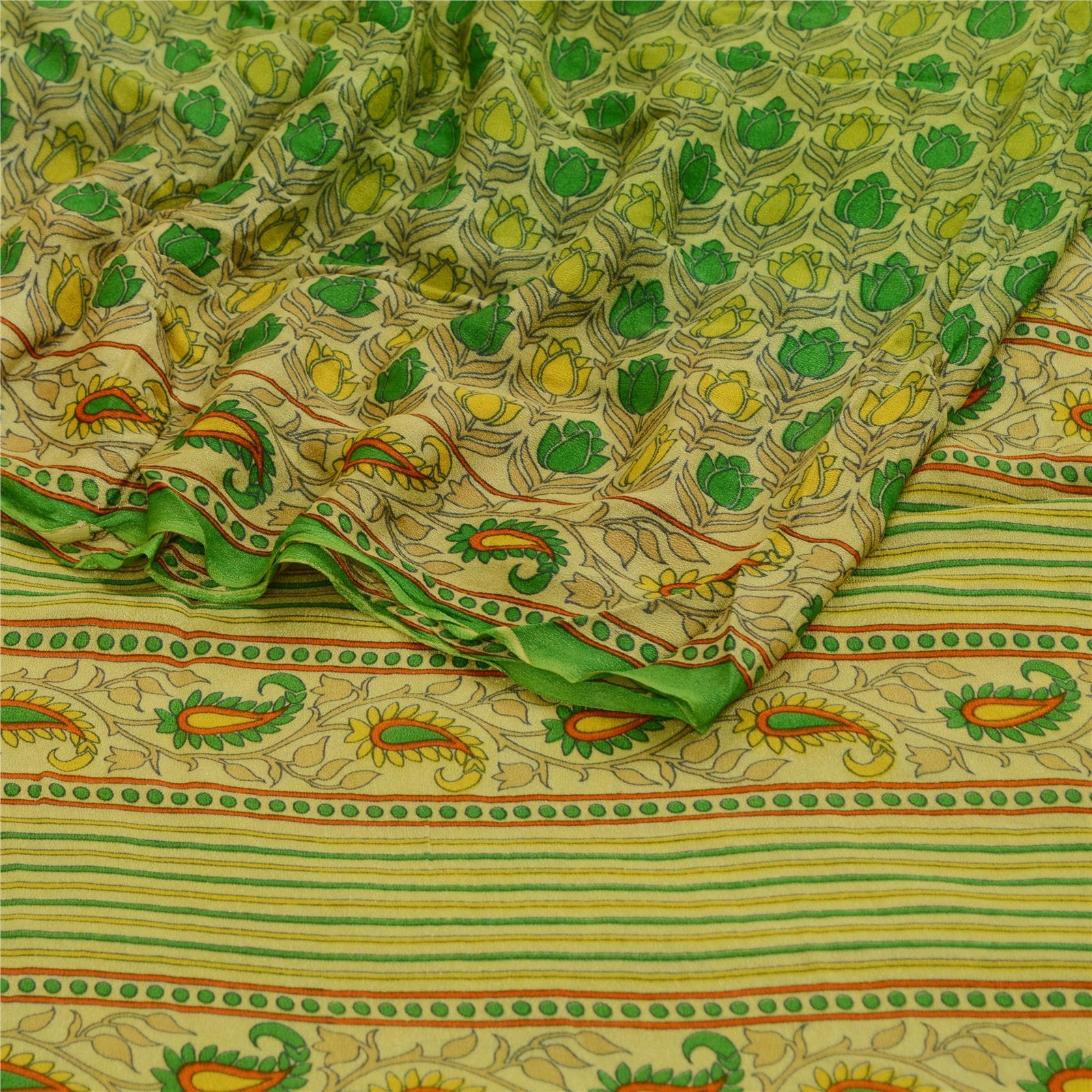 Sanskriti Vintage Green Sarees Georgette Silk Printed Sari 5YD Craft Sustainable Fabric