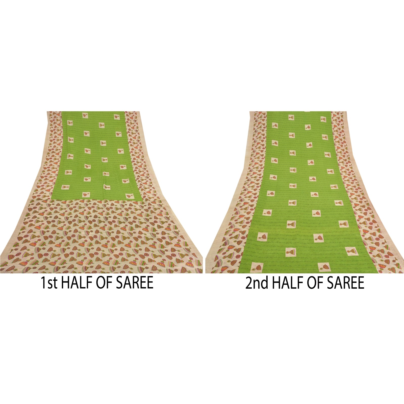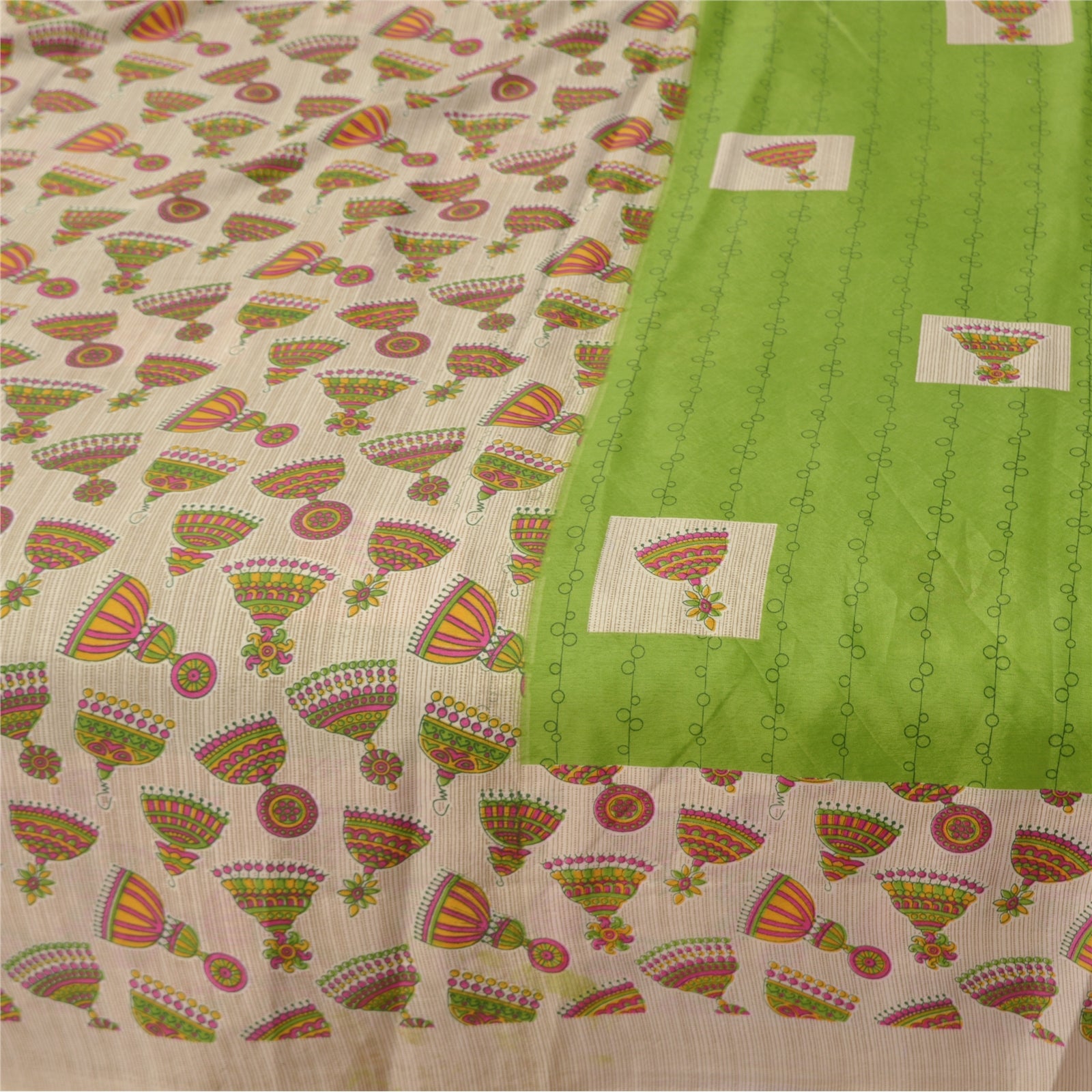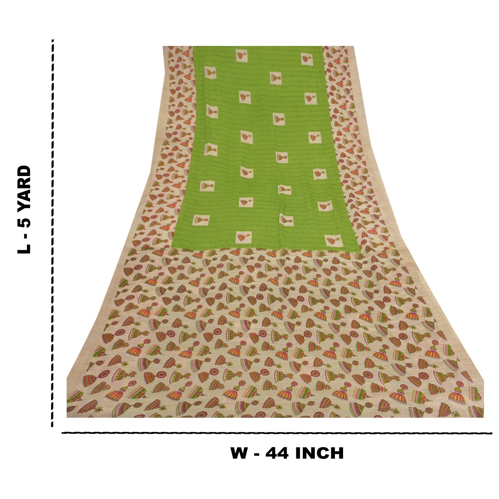 Beautiful shades of green colored printed moss crepe saree. Pallu & Border has printed jhumka earring design. Similar print design in center part of sari. What is special about this saree? Nice printed design with extremely smooth moss crepe base Sustainable Fabric is really enhancing the beauty of the saree. This unique vintage saree can be used for various crafting ideas even if you don't want to use it as a sari. Design a dress, use it as a throw, as window dressing, upholstery, sarongs, table linen and much more. Let your creative juices flow and use this decorated Sustainable Fabric in multiple fashion. Please note - Buyers from Australia are required to pay postage. Registered air mail to Australia is temporarily suspended due to the pandemic. Once it goes back to normal we'll revert to free shipping. For now, we are using Aramex and DHL to ship orders. These services are expensive but faster compared to regular mail. Thank you for your support. If you are buying in bulk we will refund whatever excess is left. Contact us after that purchase. For USA buyers - Single item ships via registered air mail, buy 1 more to get FedEx.