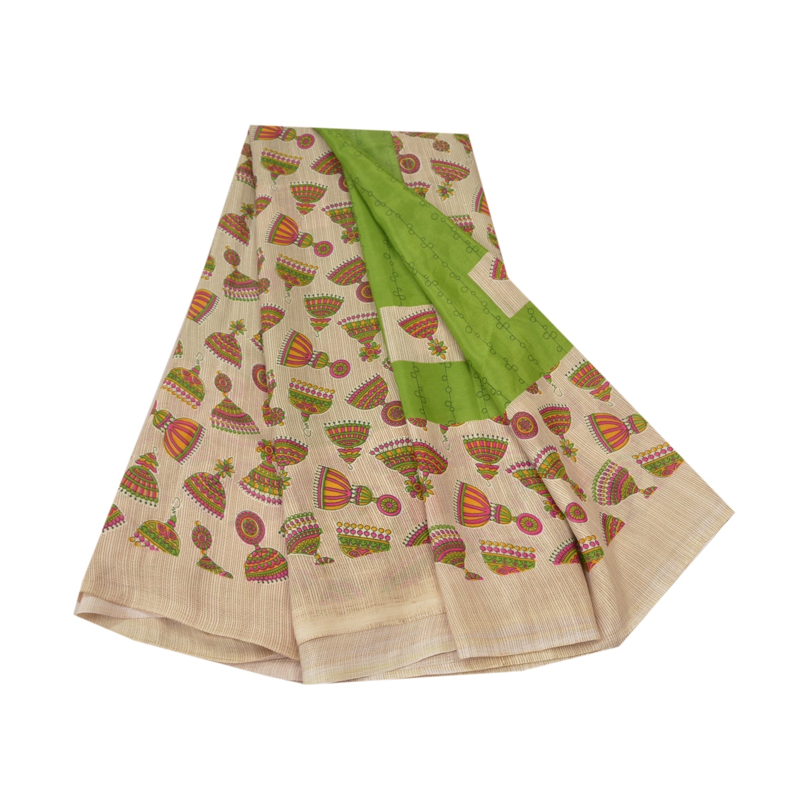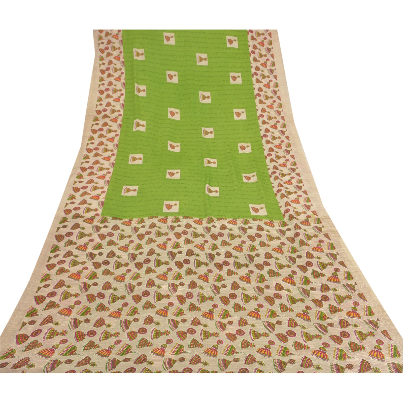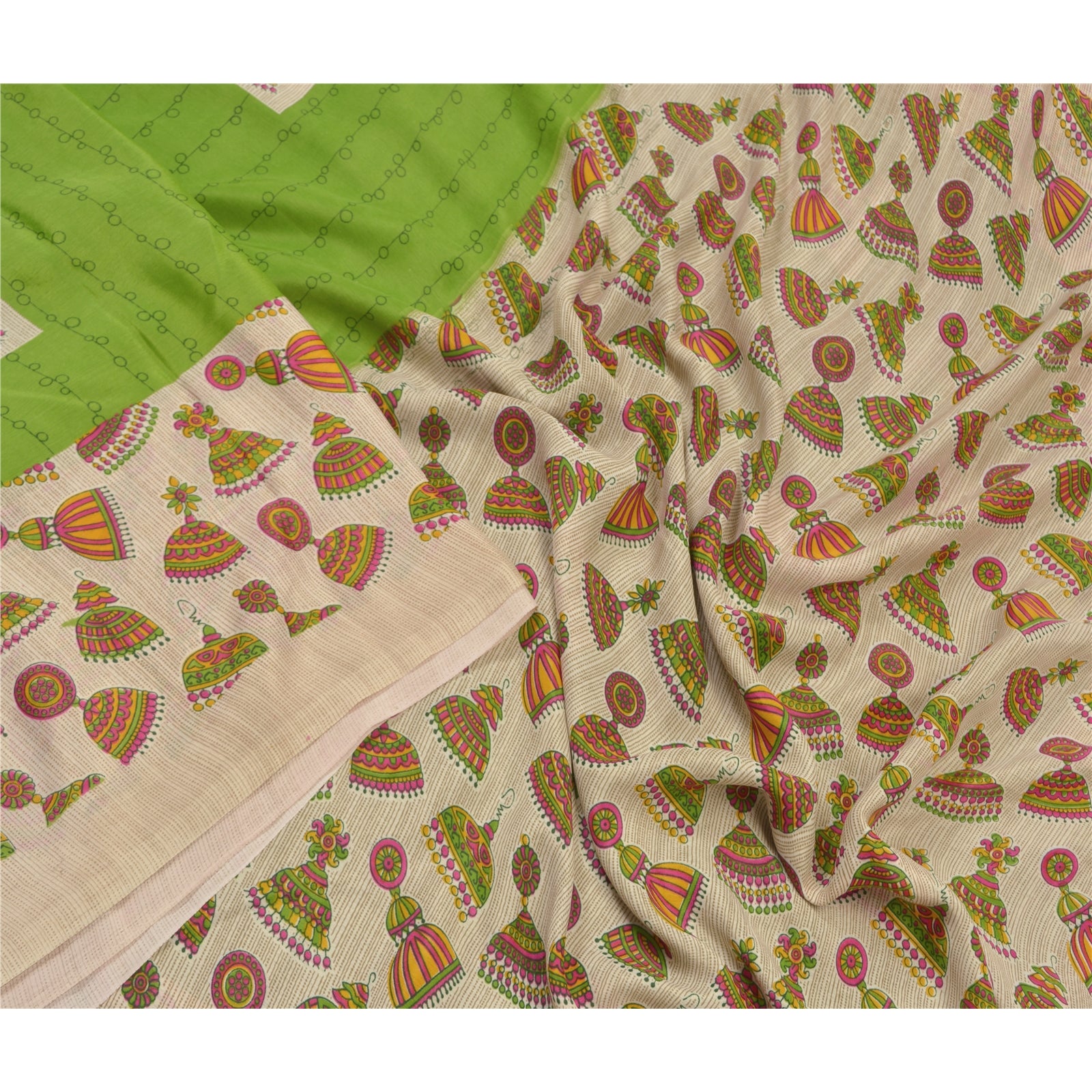 Sanskriti Vintage Green Sarees Moss Crepe Jhumka Printed Craft Sustainable Fabric Sari