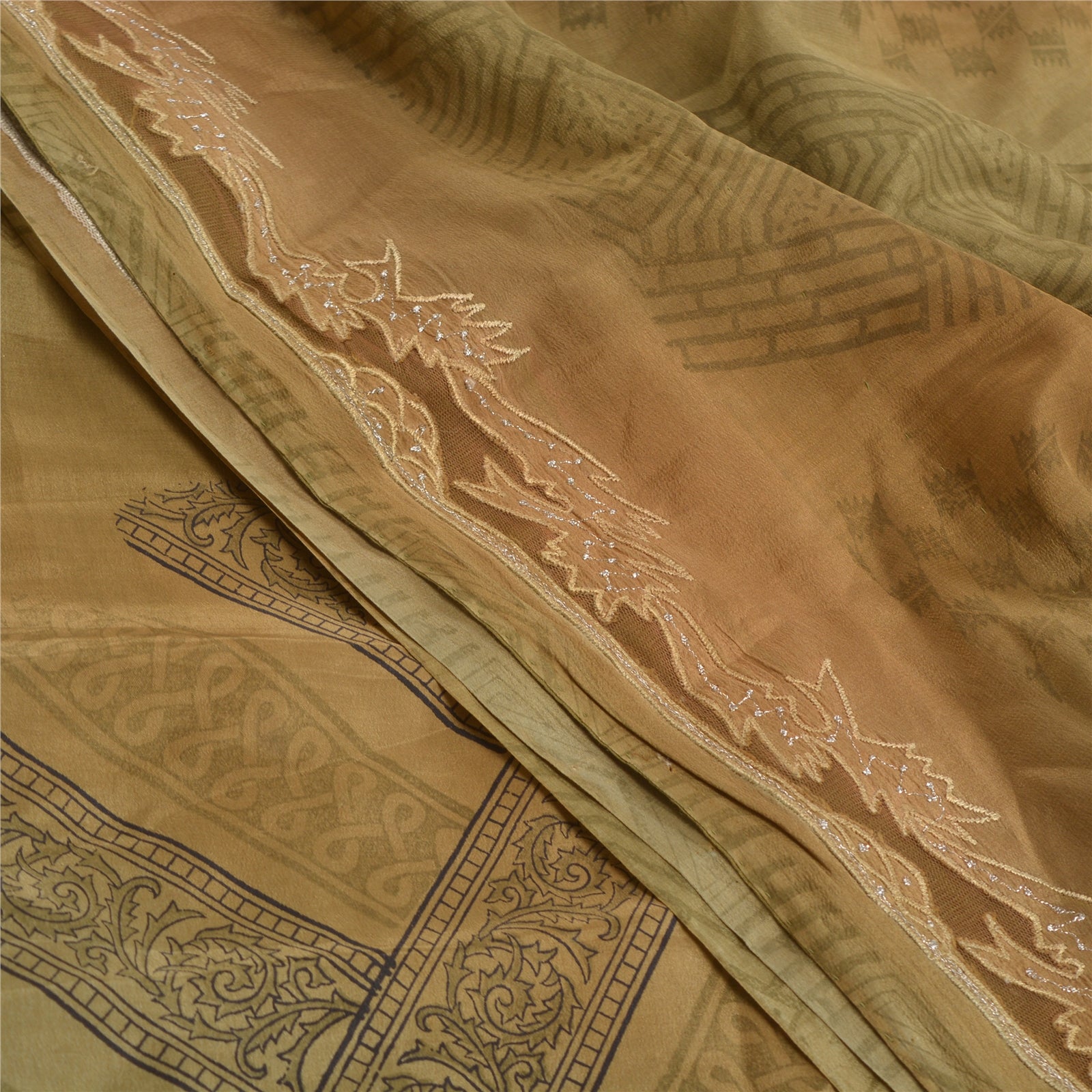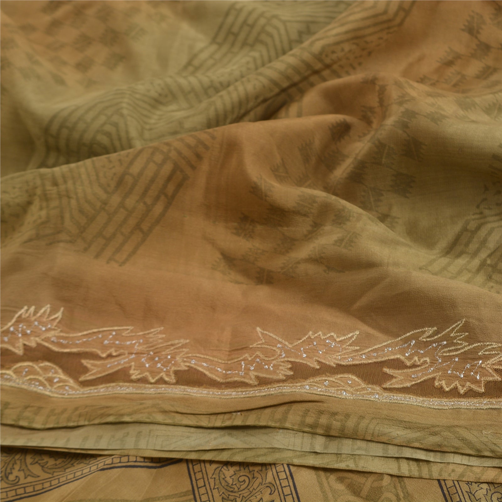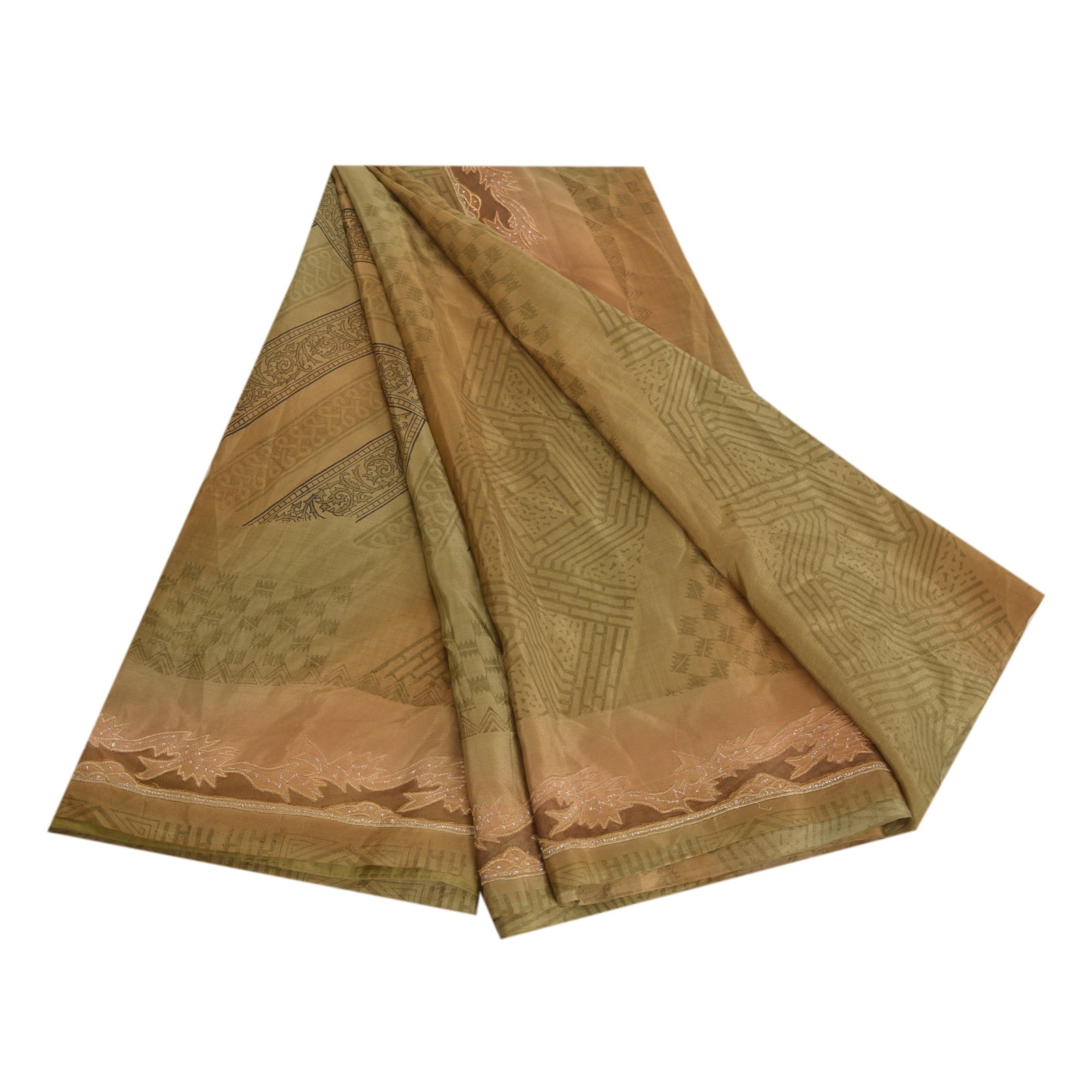 Sanskriti Vintage Green Sarees Pure Crepe Silk Printed Sari Floral Craft Sustainable Fabric