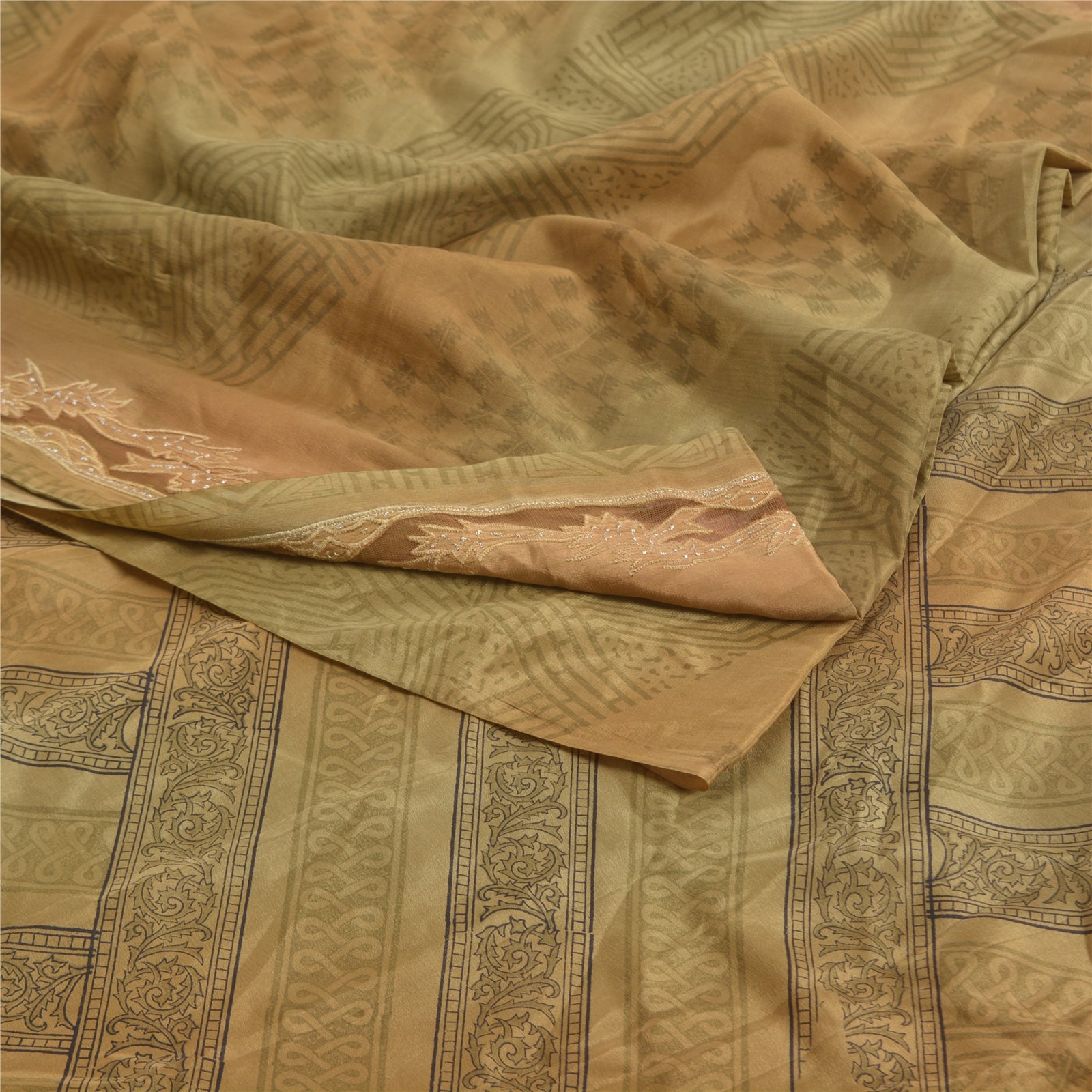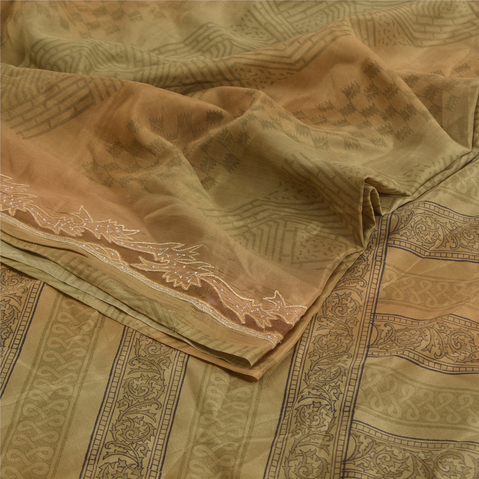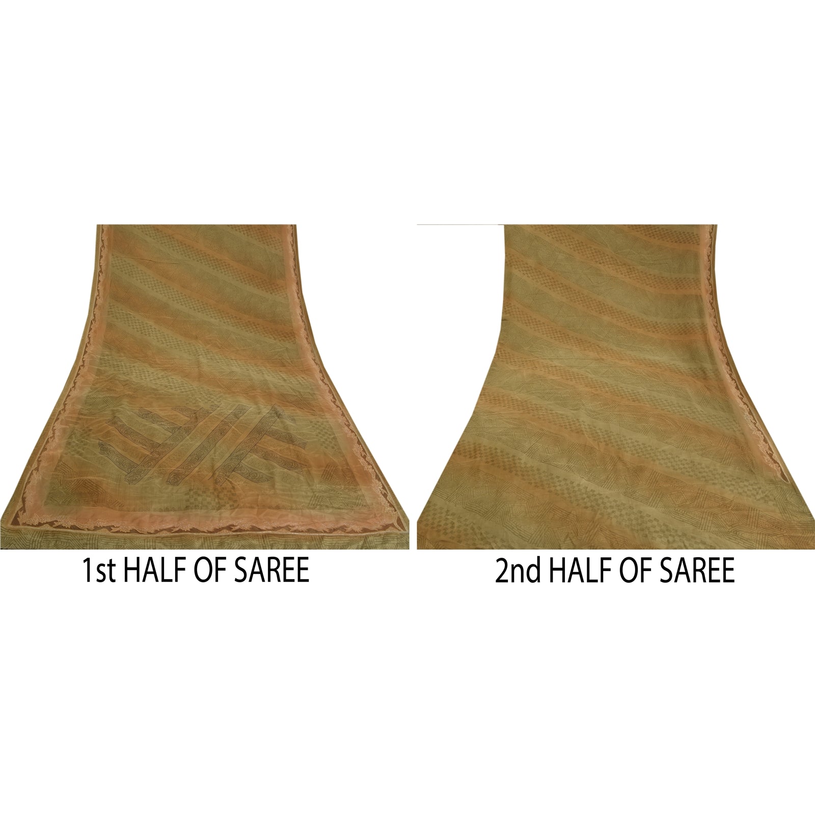 Sanskriti Vintage Green Sarees Pure Crepe Silk Printed Sari Floral Craft Sustainable Fabric