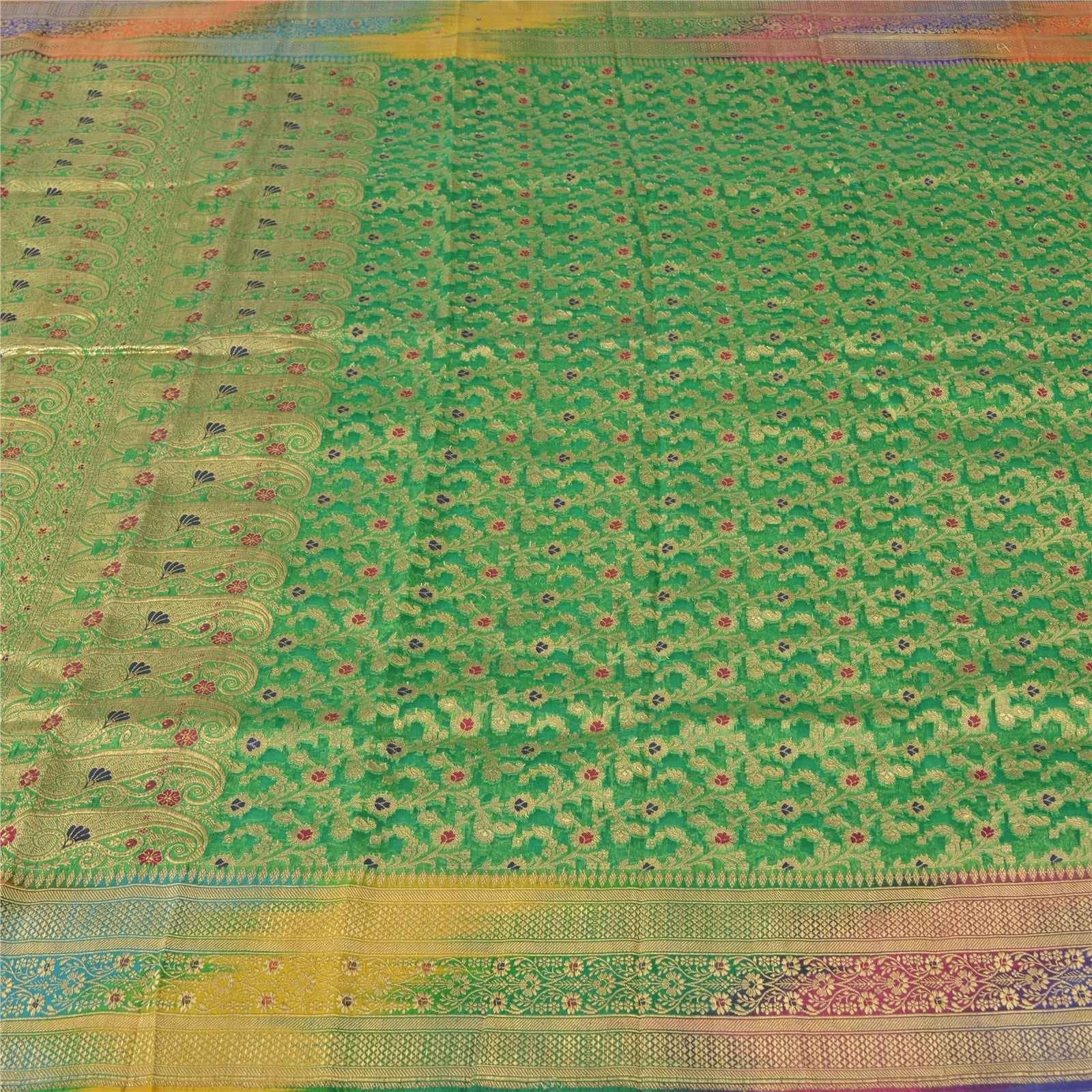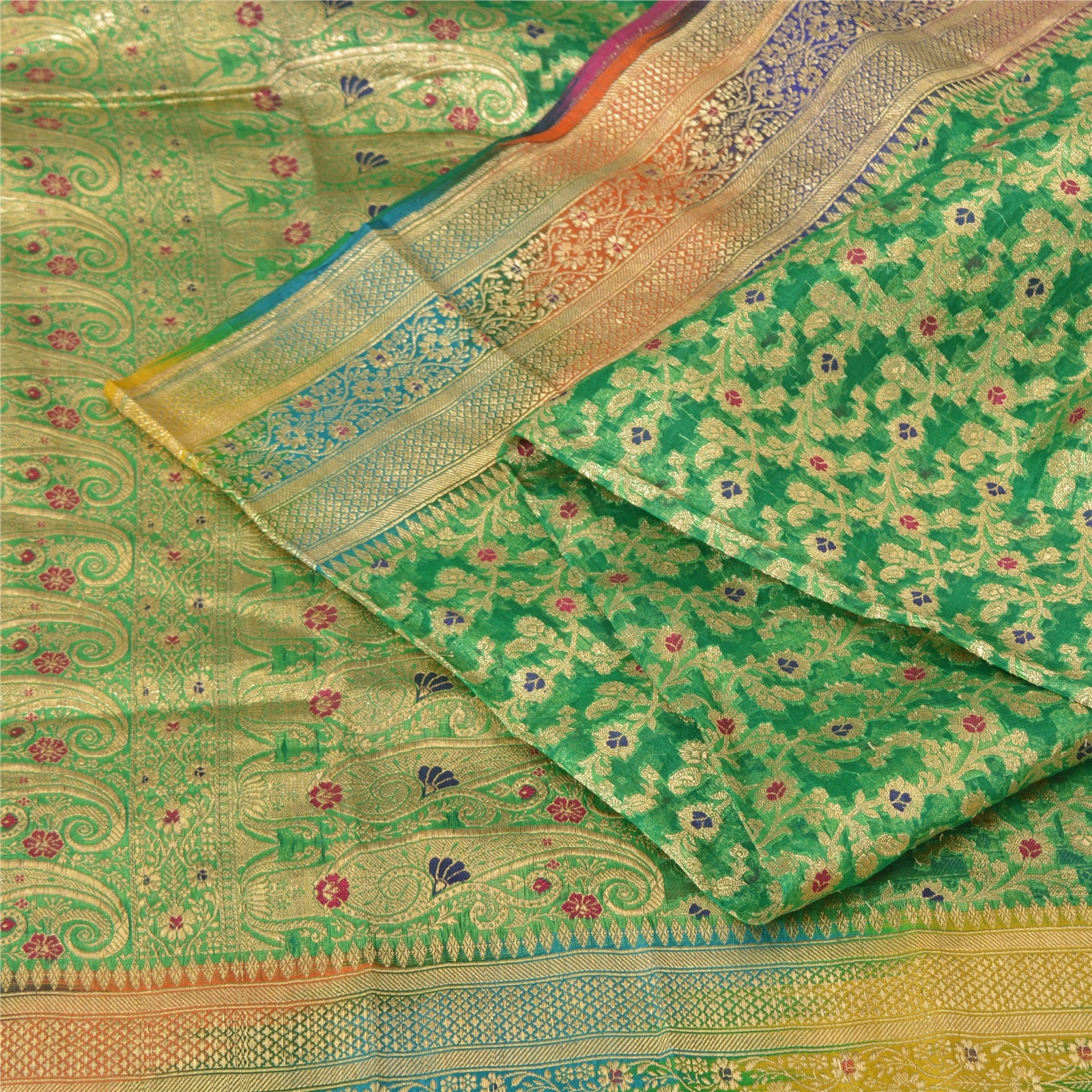 Sanskriti vintage Green Sarees Pure Silk Hand Woven Banarasi/Brocade Fabric Sari