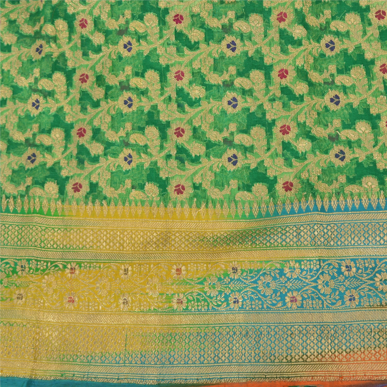 THE ITEM COLOR OR SHADE MAY BE DARKER OR LIGHTER THAN THE PICTURE.' Gorgeous green colored hand woven banarasi brocade saree which is crafted with Pure Silk. The pallu & border sari features floral and paisley design embellished with pure metallic golden zari work, blue/pink woven work. The center part of sari boasts floral design with similar work. This saree can be used for various crafting ideas too. Use it for dress designing, as a throw, as window dressing, upholstery, table linen and much more. Let your creative juices flow! The quality of zari work is amazing, its a pure metallic zari. Some zari work gives a antique look. Shipping note: International buyers please note: Import duties, taxes, and charges are not included in the item price or postage cost. These charges are the buyer's responsibility. Please check with your country's customs office to determine what these additional costs will be prior to bidding or buying. Buyer will pay custom duty/tax. It is calculated and charged differently by every country. As a seller I do not have any control over it. VAT or sales tax is calculated by the platform at the time of checkout. Customs charge is payable at the time of delivery.'