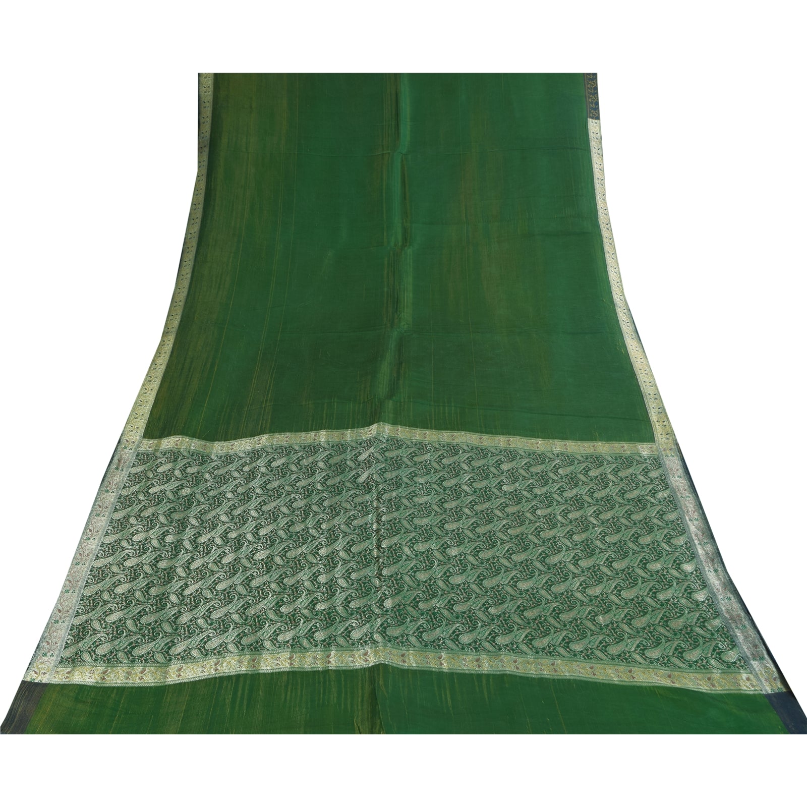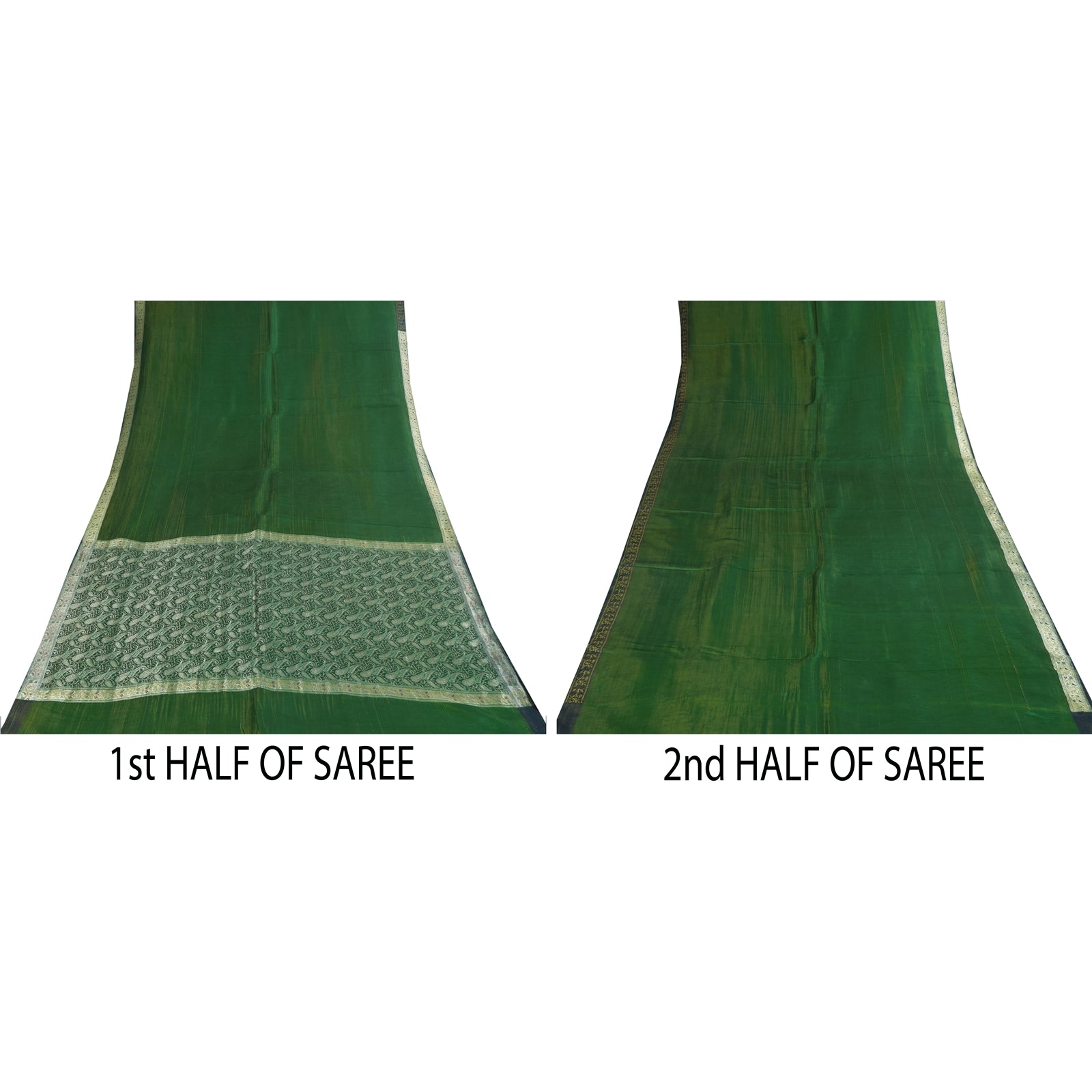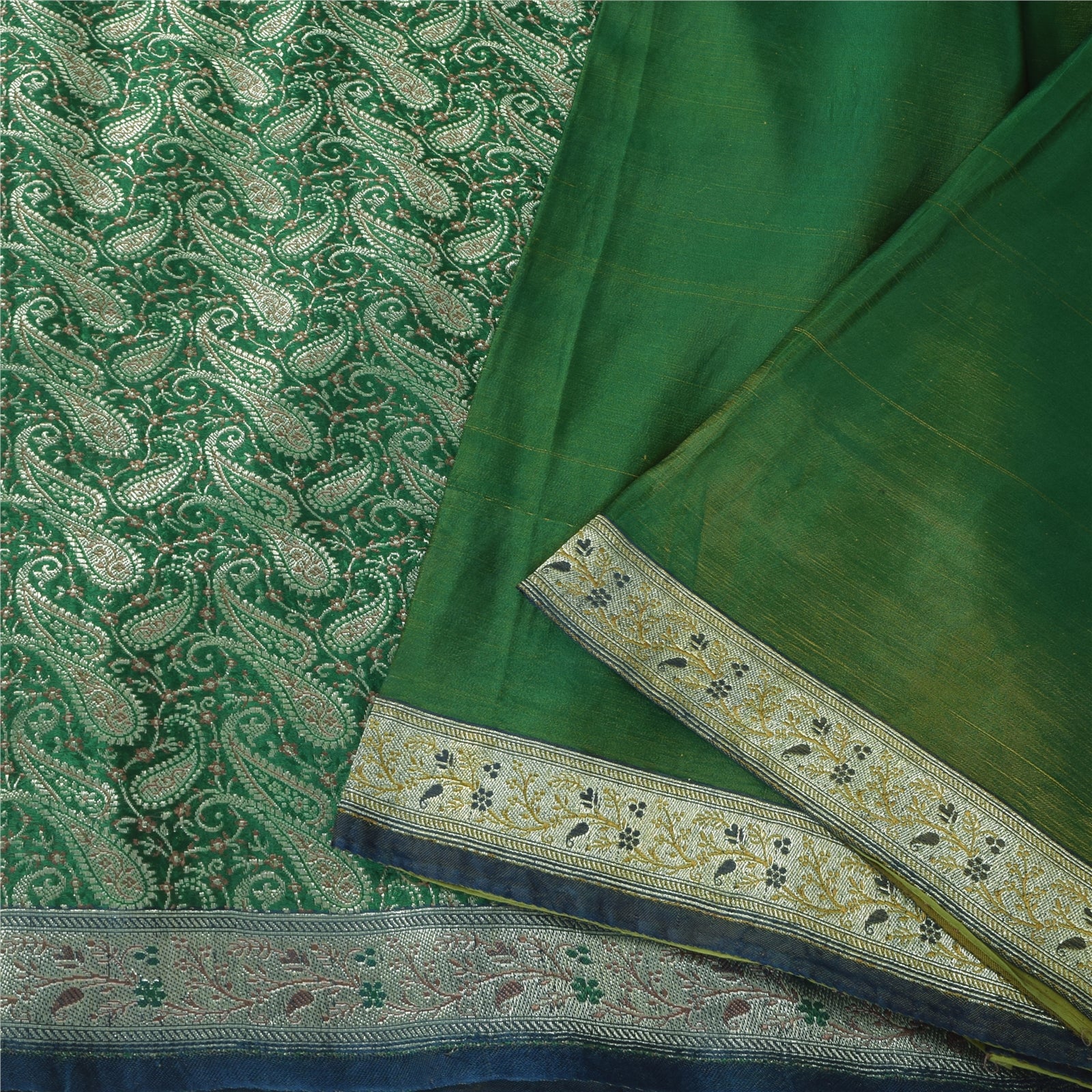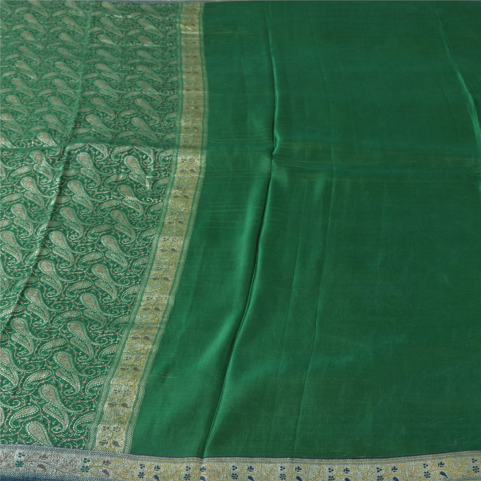 Sanskriti Vintage Green Sarees Pure Silk Woven Brocade Banarasi Sari 5+yd Sustainable Fabric