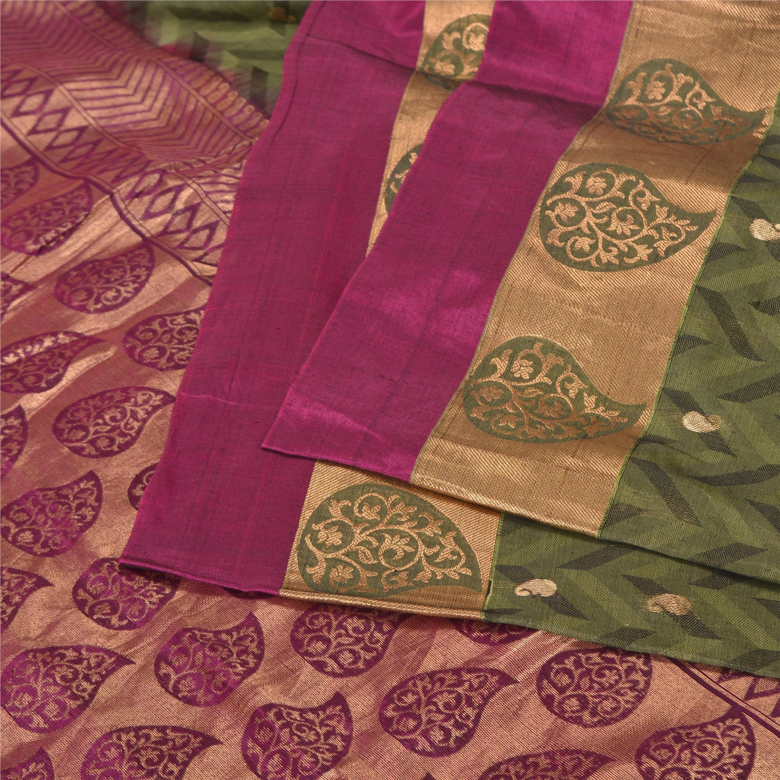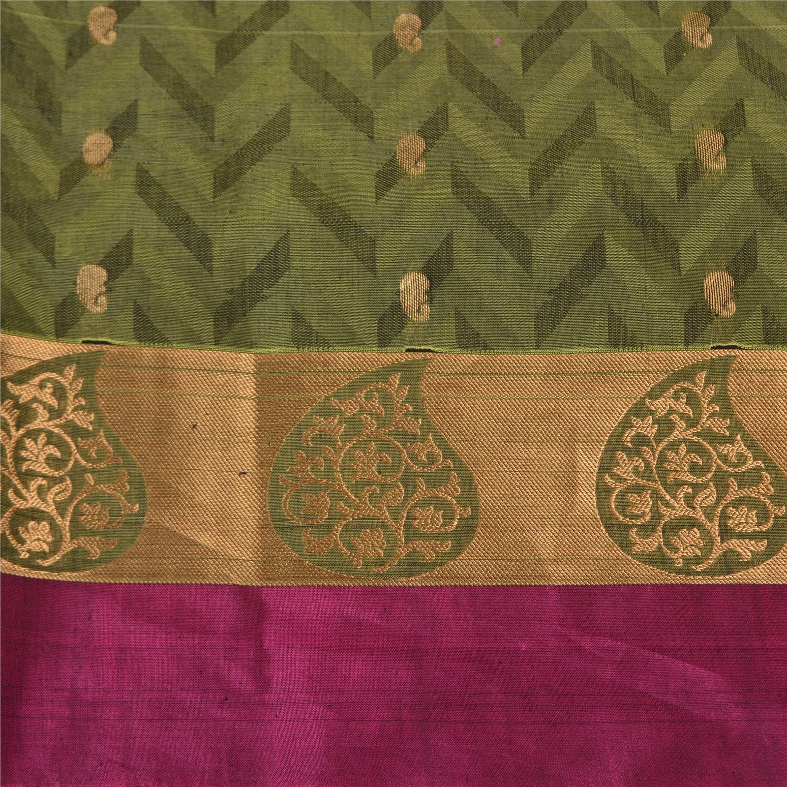 Sanskriti Vintage Green Sarees Pure Silk Woven Brocade/Banarasi Sari Sustainable Fabric
