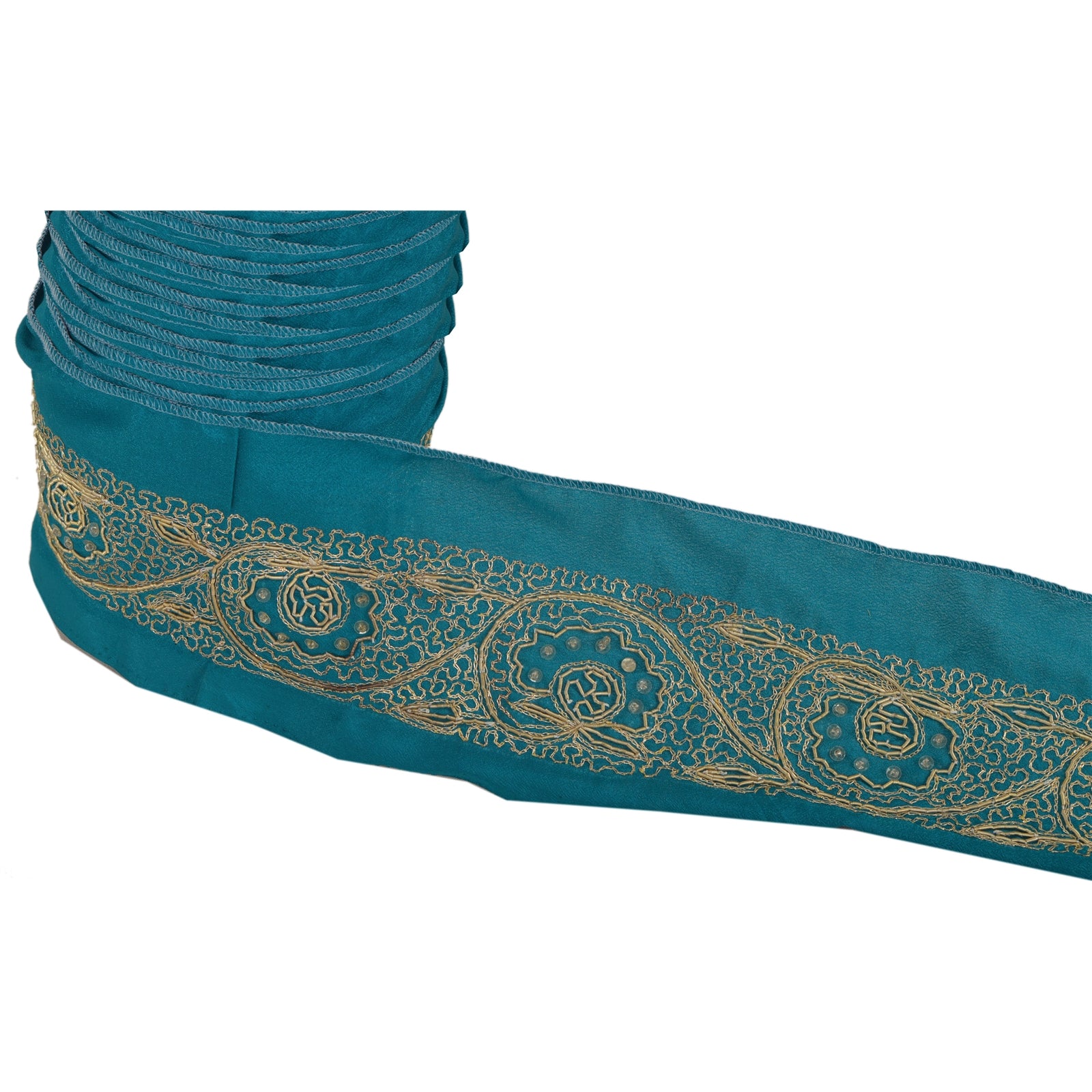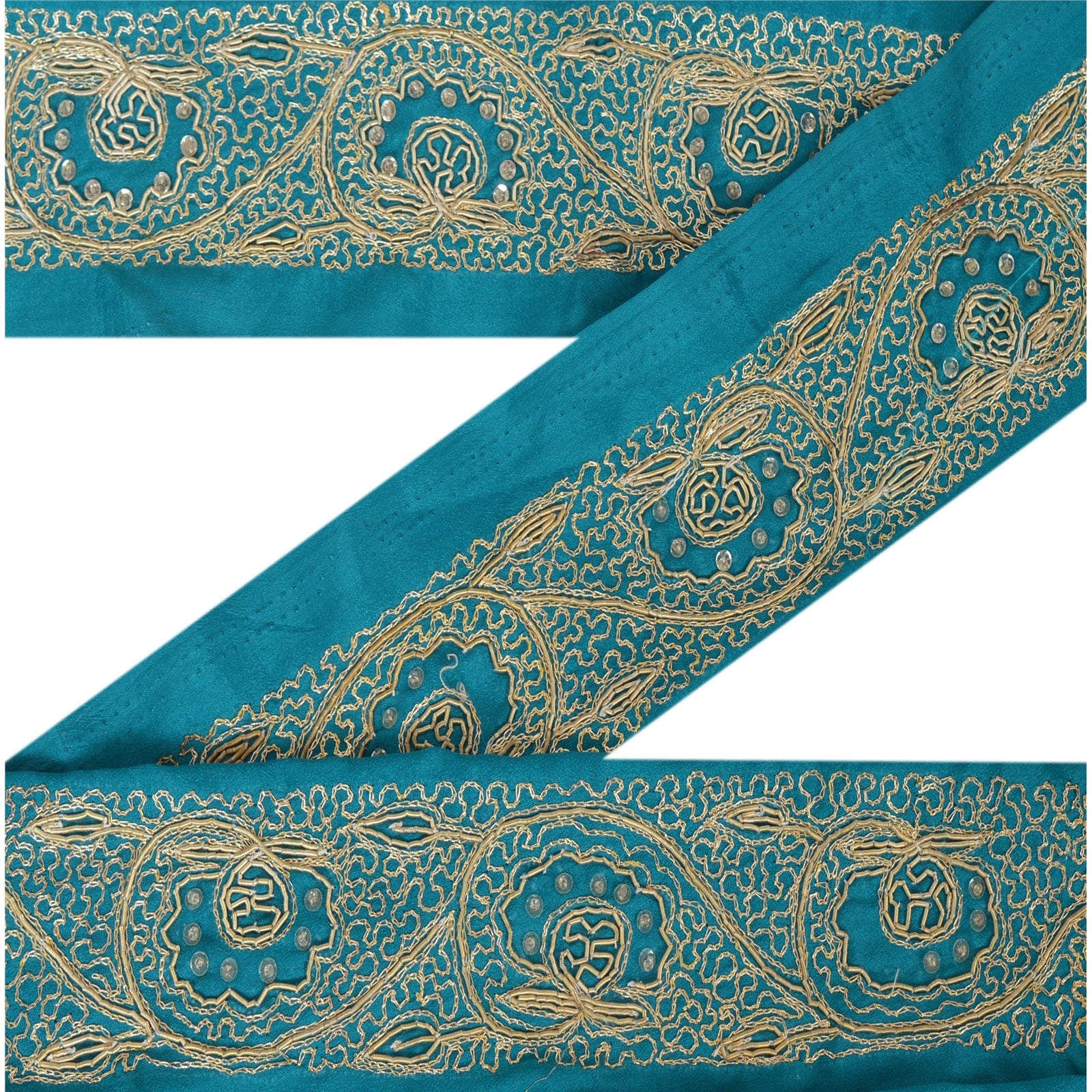 Sanskriti Vintage Green Sari Border Hand Beaded Craft 1 Yard Trim Sewing Lace