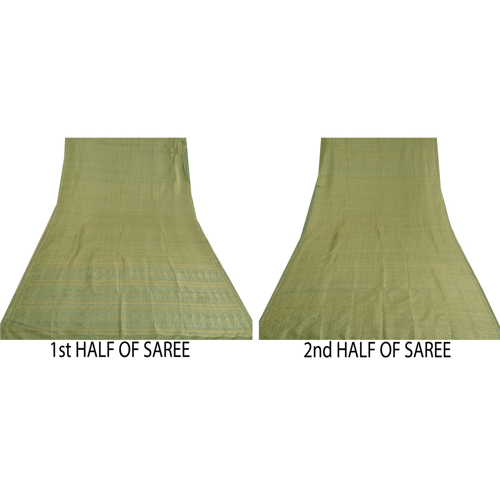 Sanskriti Vintage Grey Heavy Indian Sarees Pure Satin Silk Woven Sari Sustainable Fabric