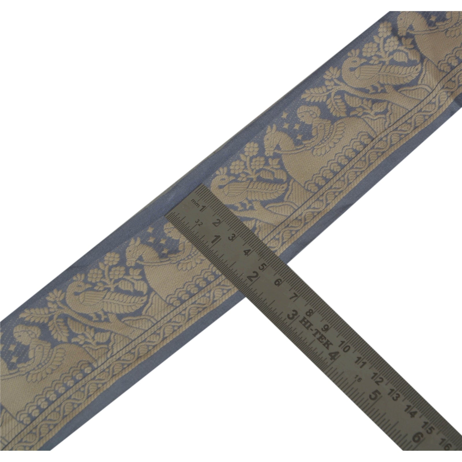 Sanskriti Vintage Grey Sari Border Woven Baluchari 1 Yard Craft Trim Sewing Lace