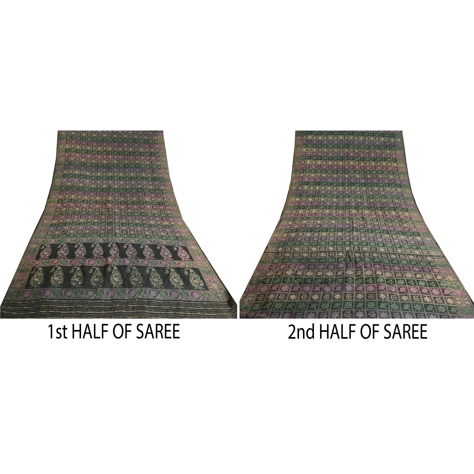 'THE ITEM COLOR OR SHADE MAY BE DARKER OR LIGHTER THAN THE PICTURE.' Stupendous!! Sanskriti Offers This Vintage Greyish Black Color Woven Brocade/Banarasi Saree Which Is Crafted With 100% Pure Silk Base Sustainable Fabric. The pallu & border sari features floral & paisley design with metallic golden zari work & multi color woven thread work. You can see similar zari & woven thread work with floral & geometric in center part of the sari. This heavy saree can be used for various crafting ideas too. Use it for dress designing, as a throw, as window dressing, upholstery, table linen and much more. Let your creative juices flow! 'International buyers please note: Import duties, taxes, and charges are not included in the item price or postage cost. These charges are the buyer's responsibility. Please check with your country's customs office to determine what these additional costs will be prior to bidding or buying. Buyer will pay custom duty/tax. It is calculated and charged differently by every country. As a seller I do not have any control over it. VAT or sales tax is calculated by the platform at the time of checkout. Customs charge is payable at the time of delivery.'