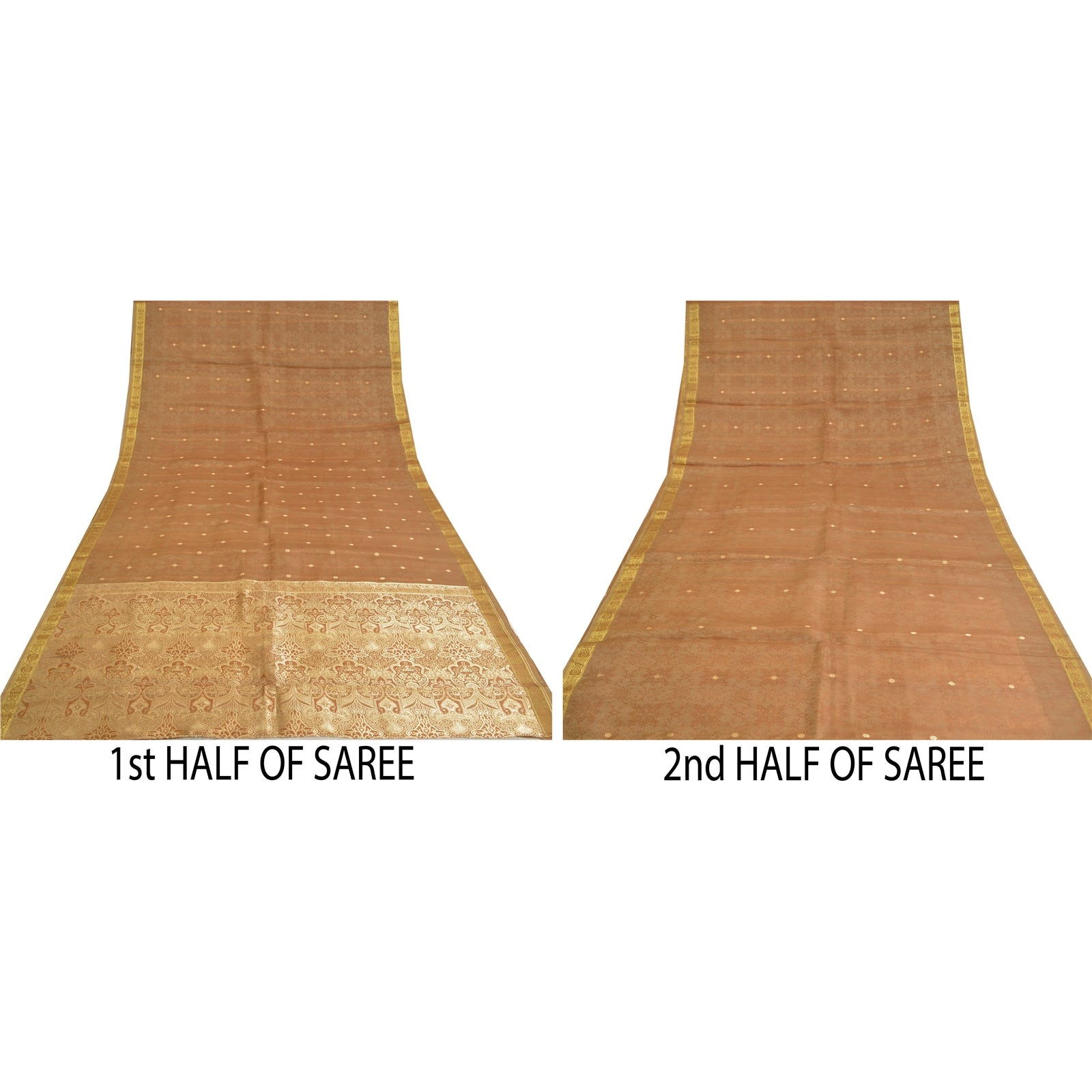 Sanskriti Vintage Heavy Brown Sarees Pure Organza Silk Woven Brocade Sari Sustainable Fabric
