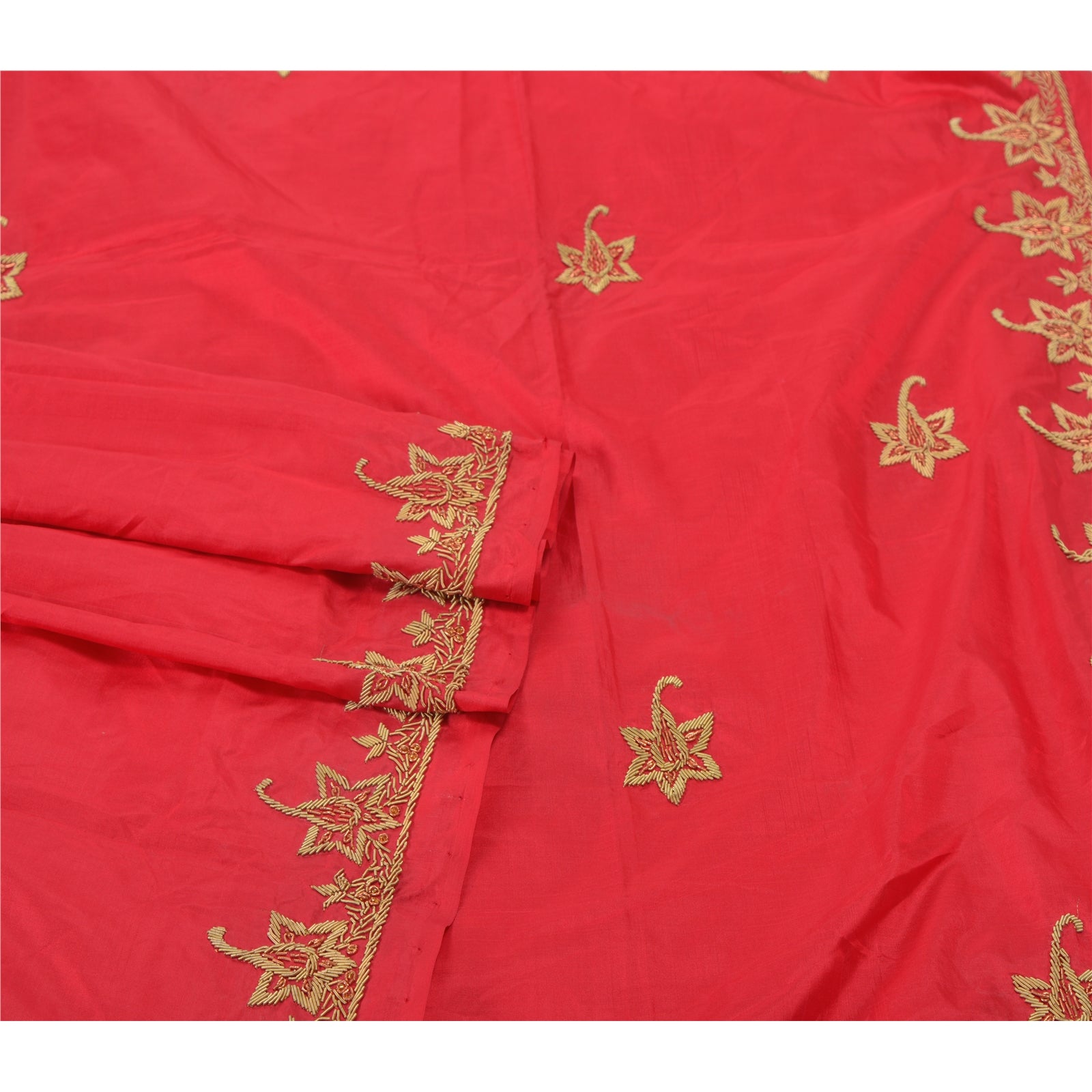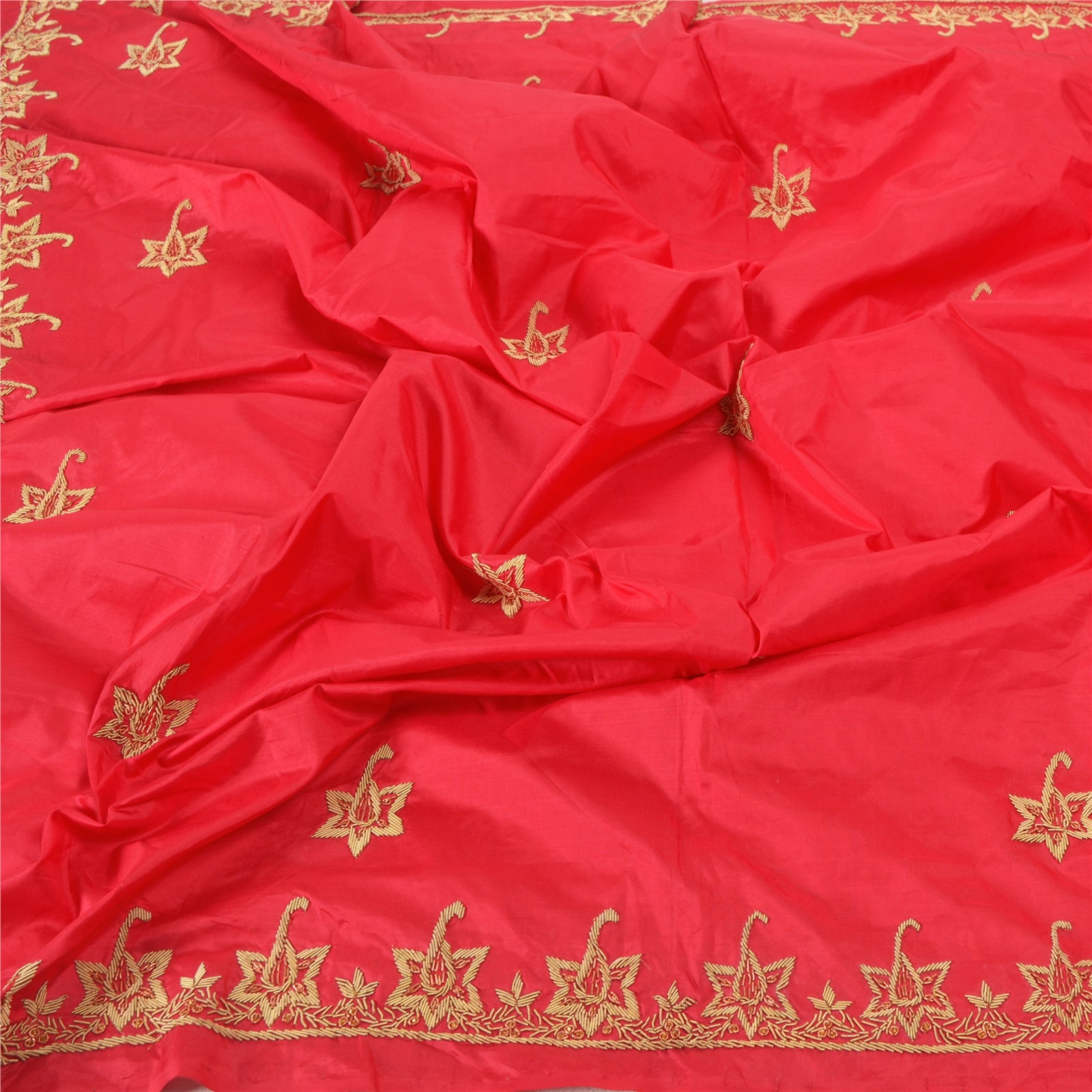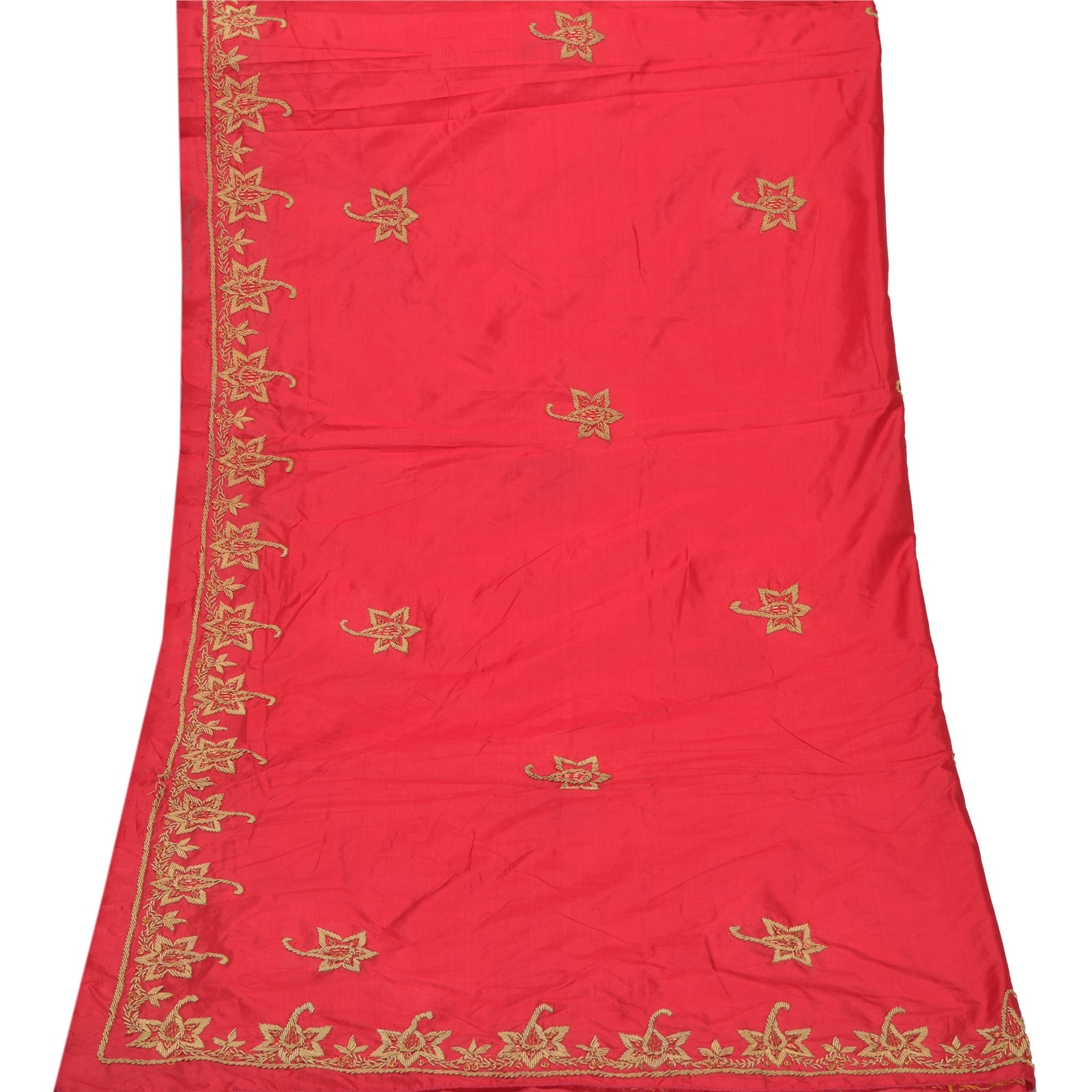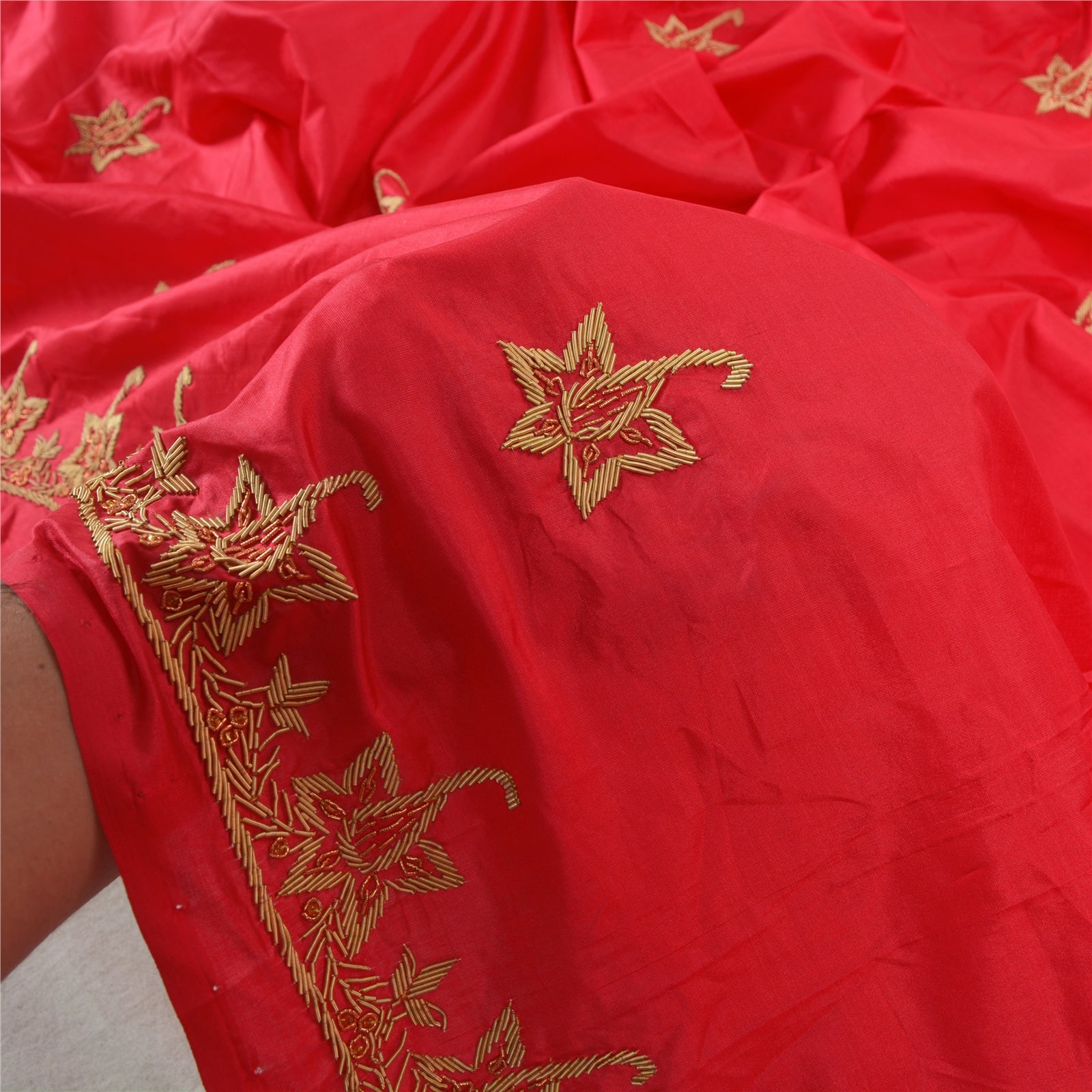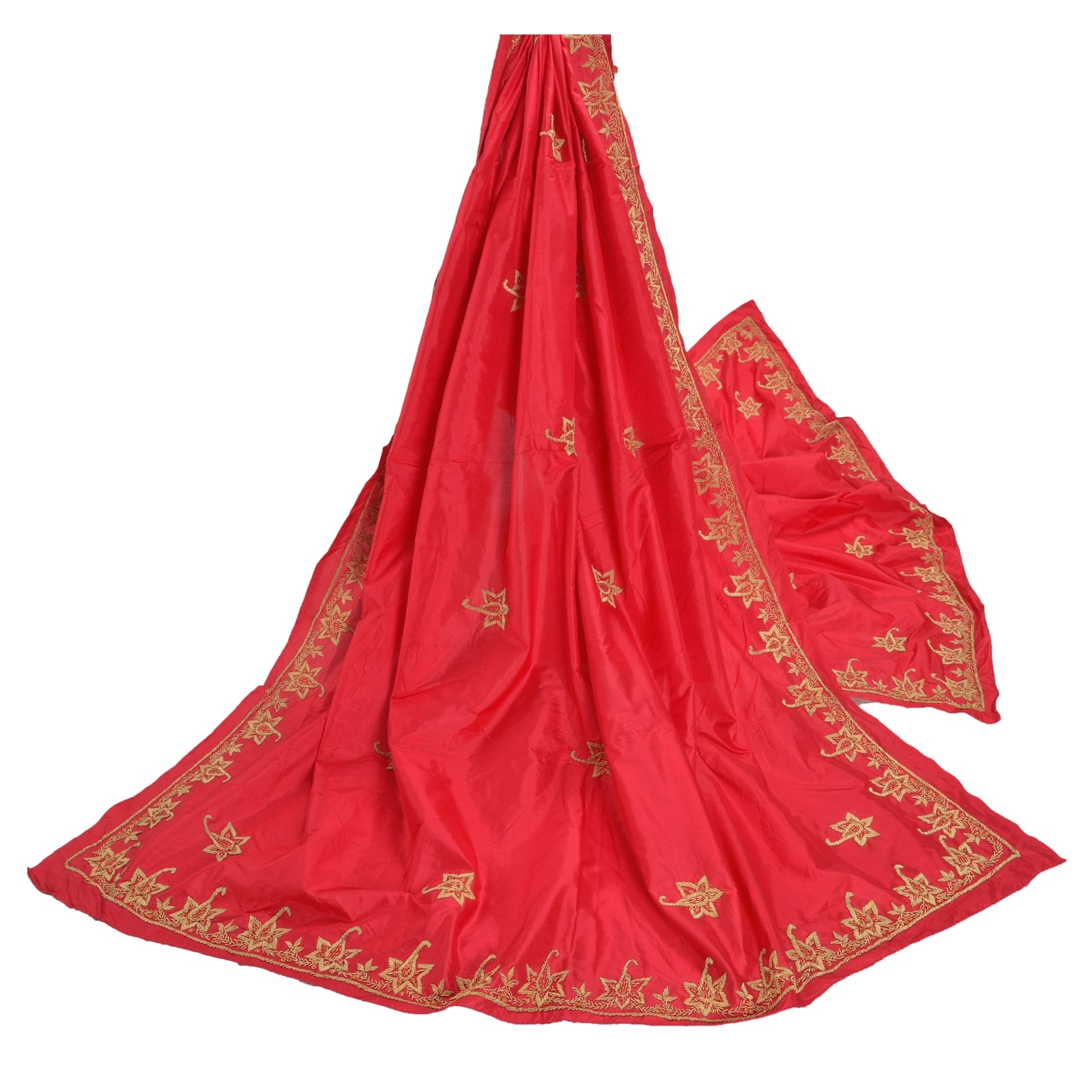 Sanskriti Vintage Heavy Dupatta 100% Pure Silk Red Hand Beaded Zardozi Stole