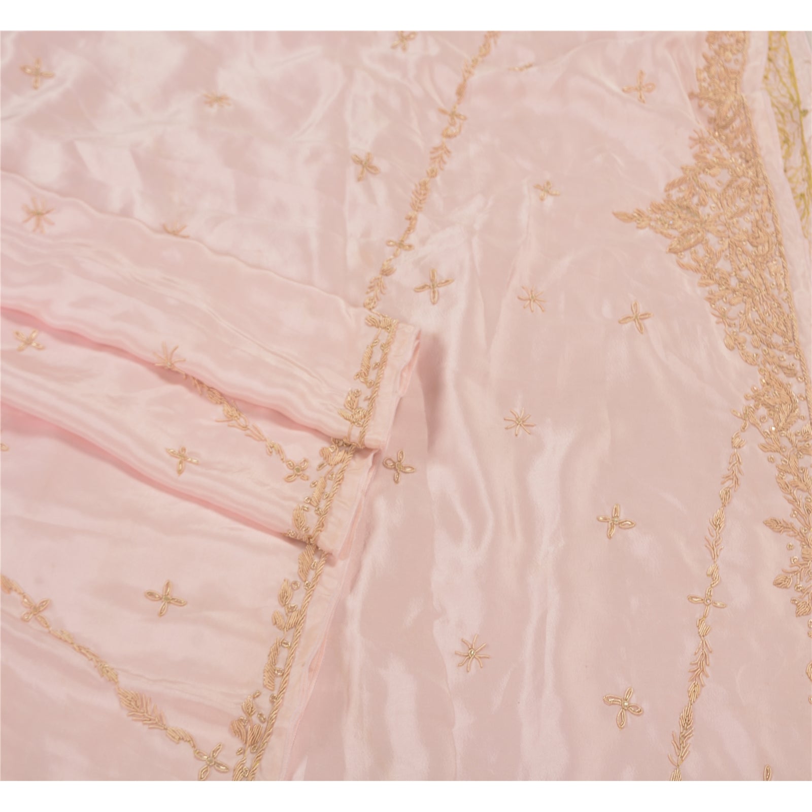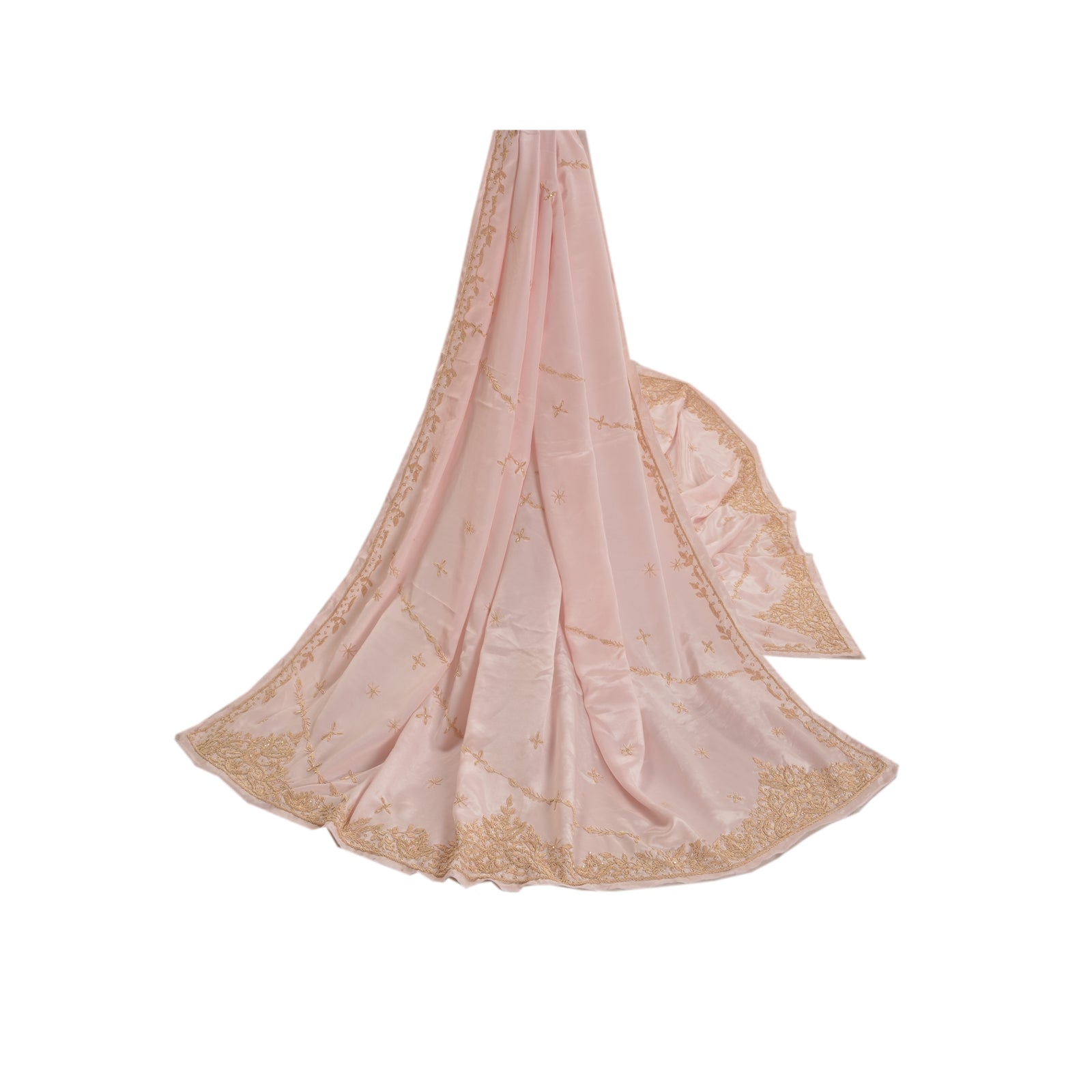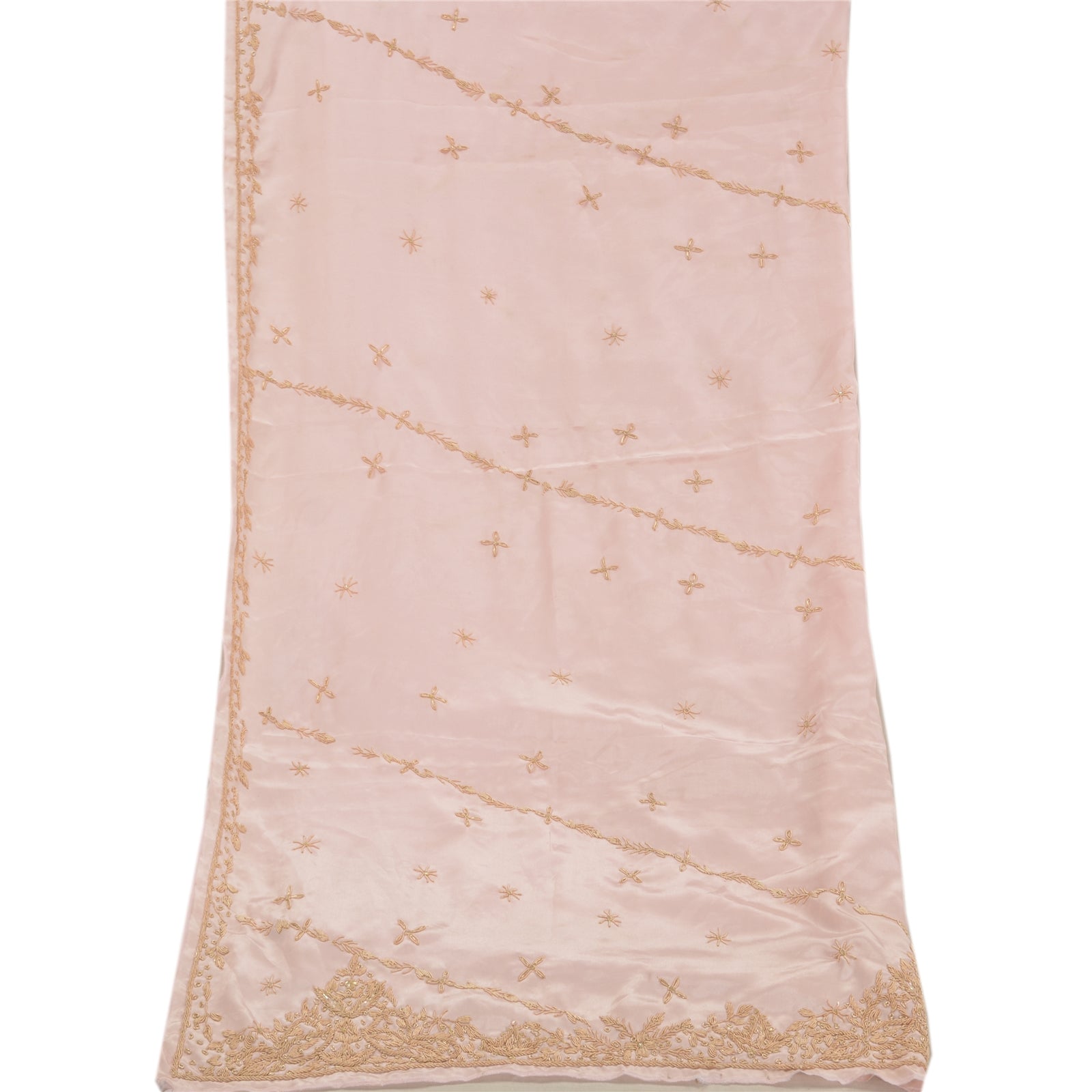 Stunning Very Heavy Dupatta Hand Embroidered Art (Artificial) Silk Dupatta/Stole In Shade Of Baby Pink Color Sustainable Fabric. This one of a kind item is difficult to express in words. Border feature is floral design embellished with metallic golden color zardozi/dabka work, white glass beads work are main highlight of the dupatta. Also you can see the center part of the dupatta has zardozi work with floral motifs. Zardozi work is giving a fabulous look to the dupatta. Awesome one !!!