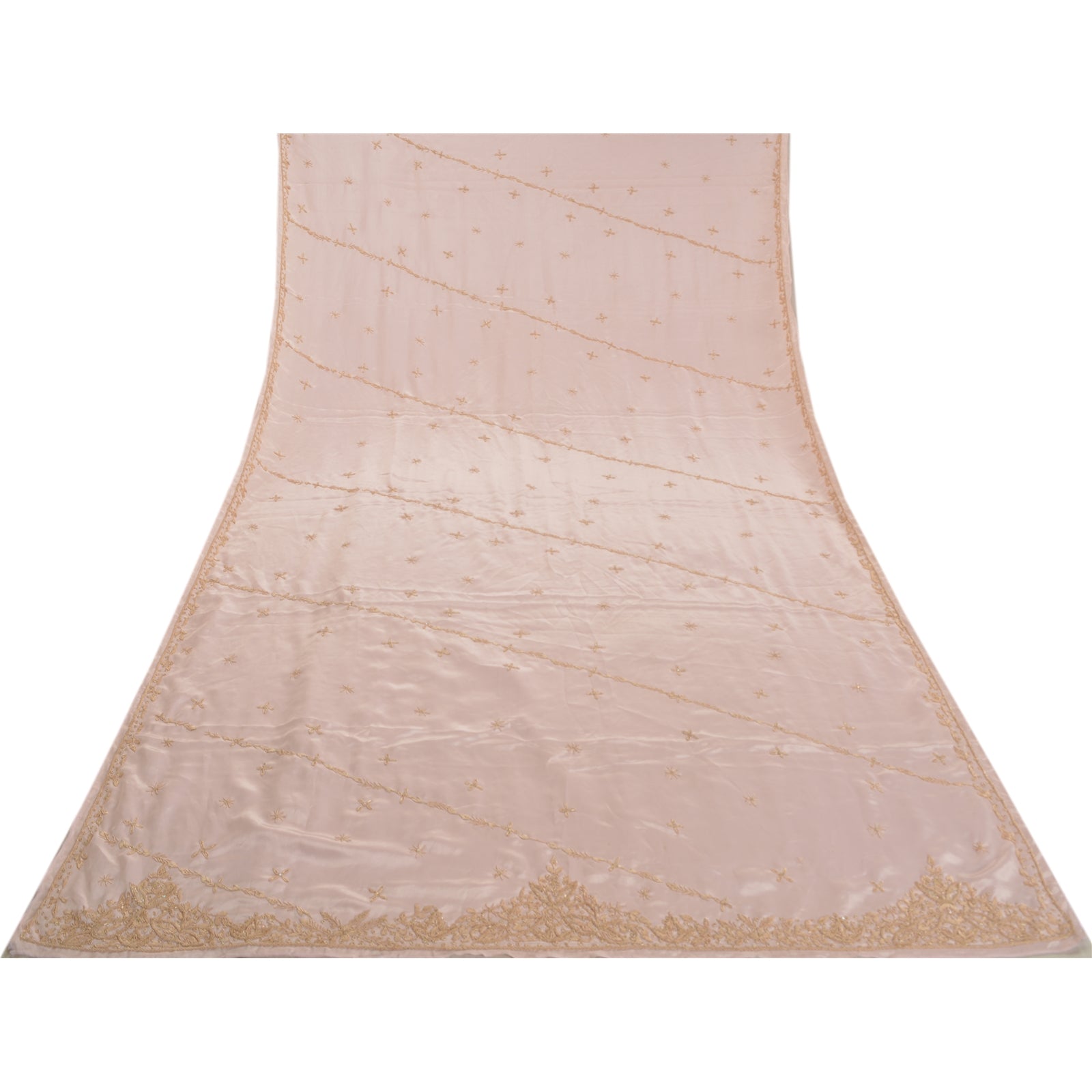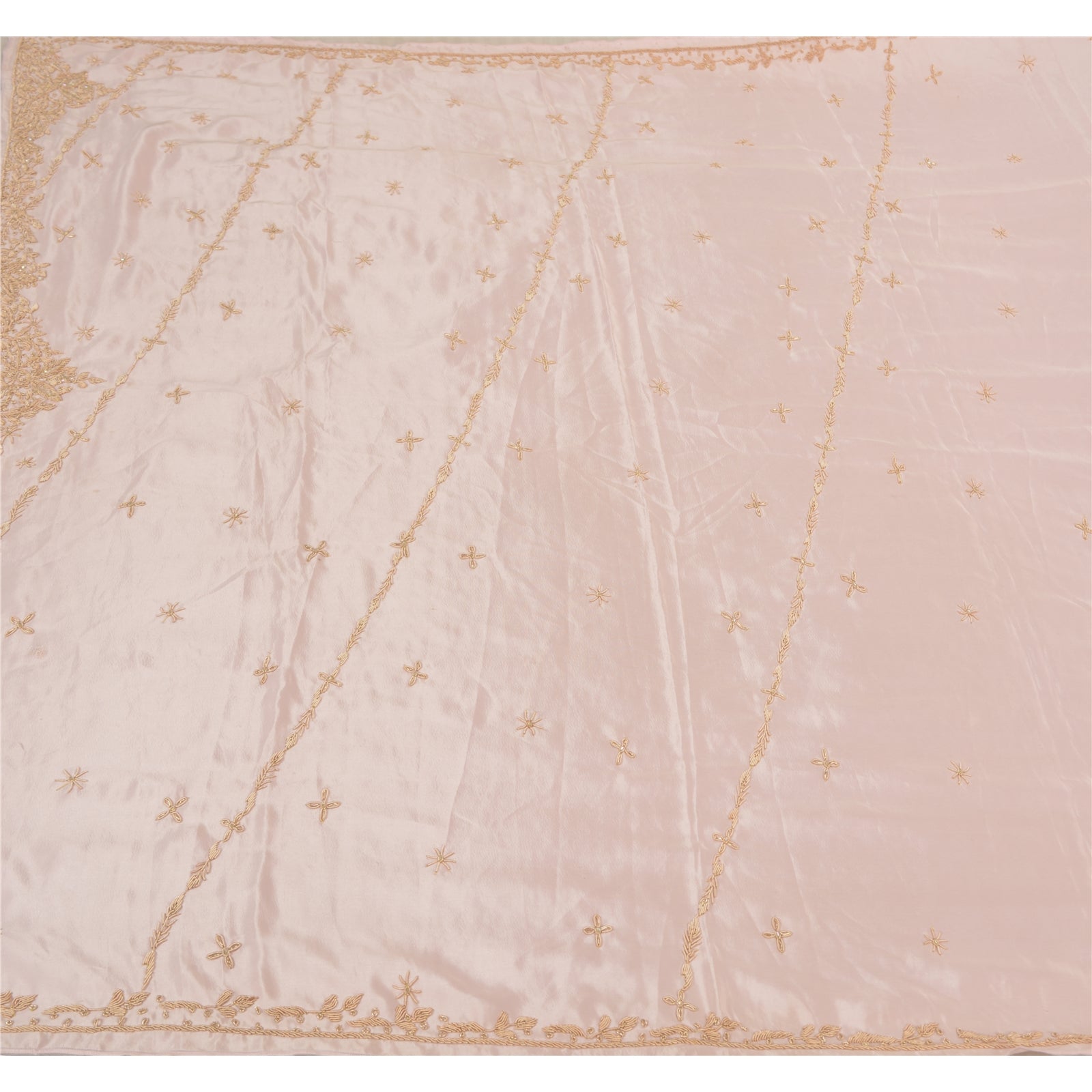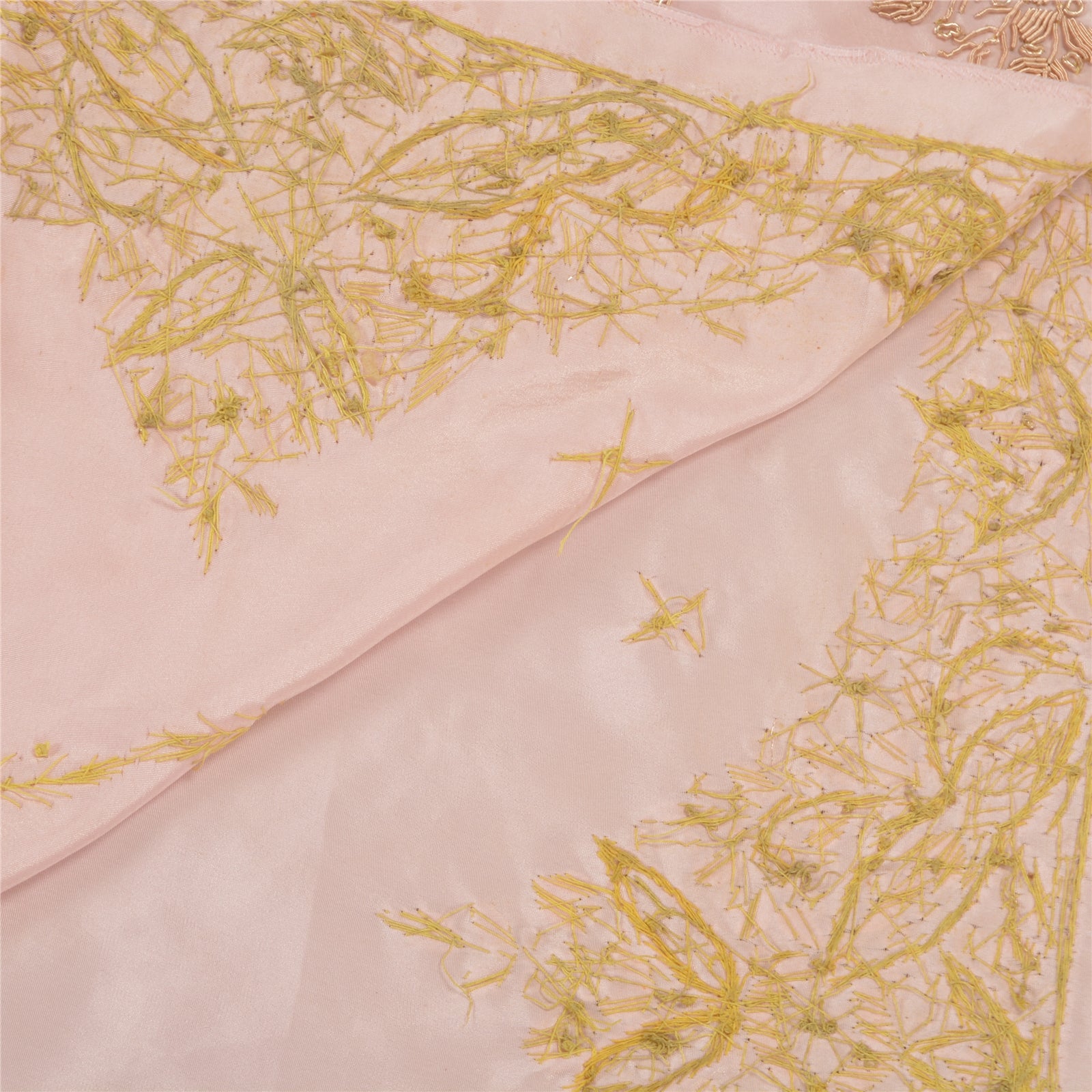 Stunning Very Heavy Dupatta Hand Embroidered Art (Artificial) Silk Dupatta/Stole In Shade Of Baby Pink Color Sustainable Fabric. This one of a kind item is difficult to express in words. Border feature is floral design embellished with metallic golden color zardozi/dabka work, white glass beads work are main highlight of the dupatta. Also you can see the center part of the dupatta has zardozi work with floral motifs. Zardozi work is giving a fabulous look to the dupatta. Awesome one !!!
