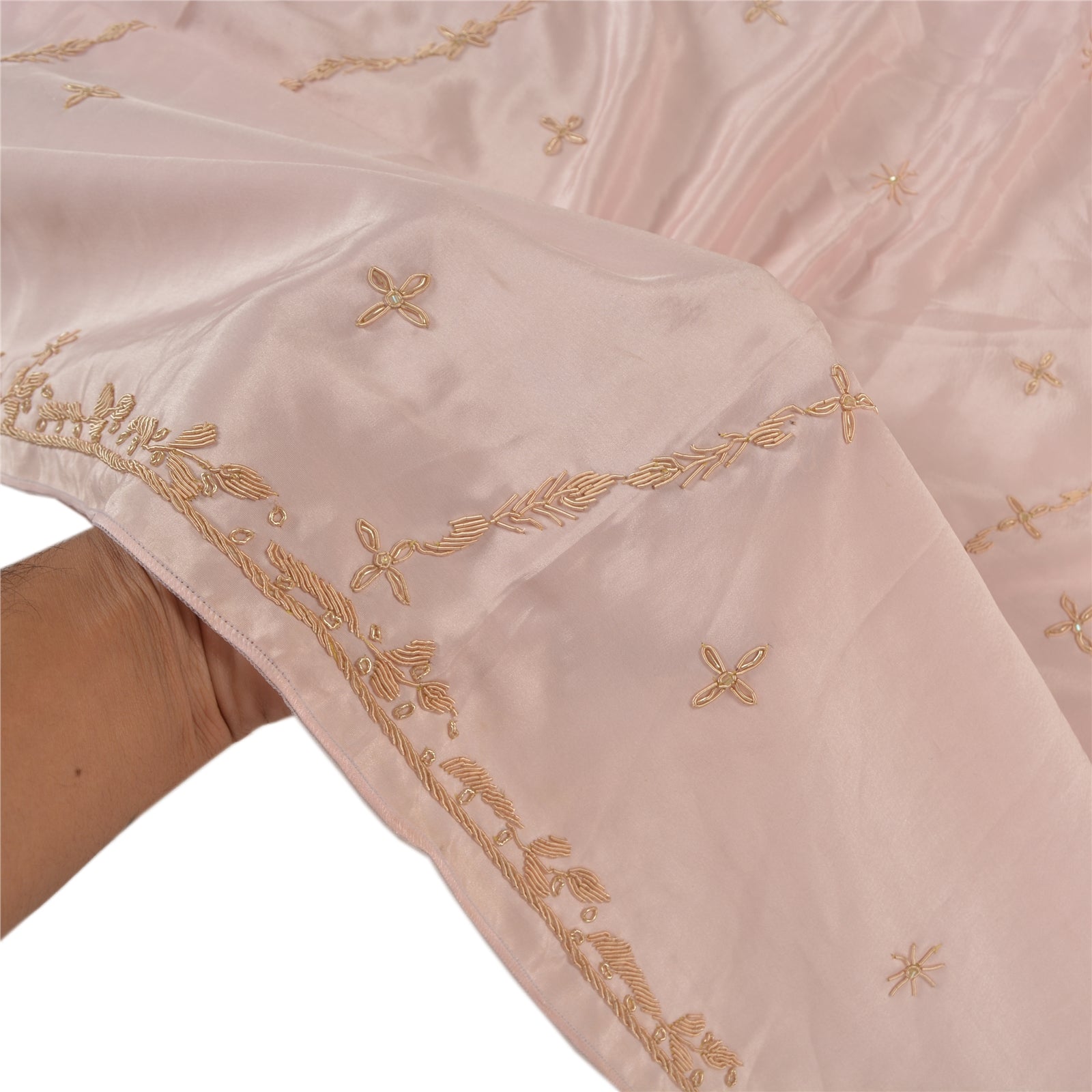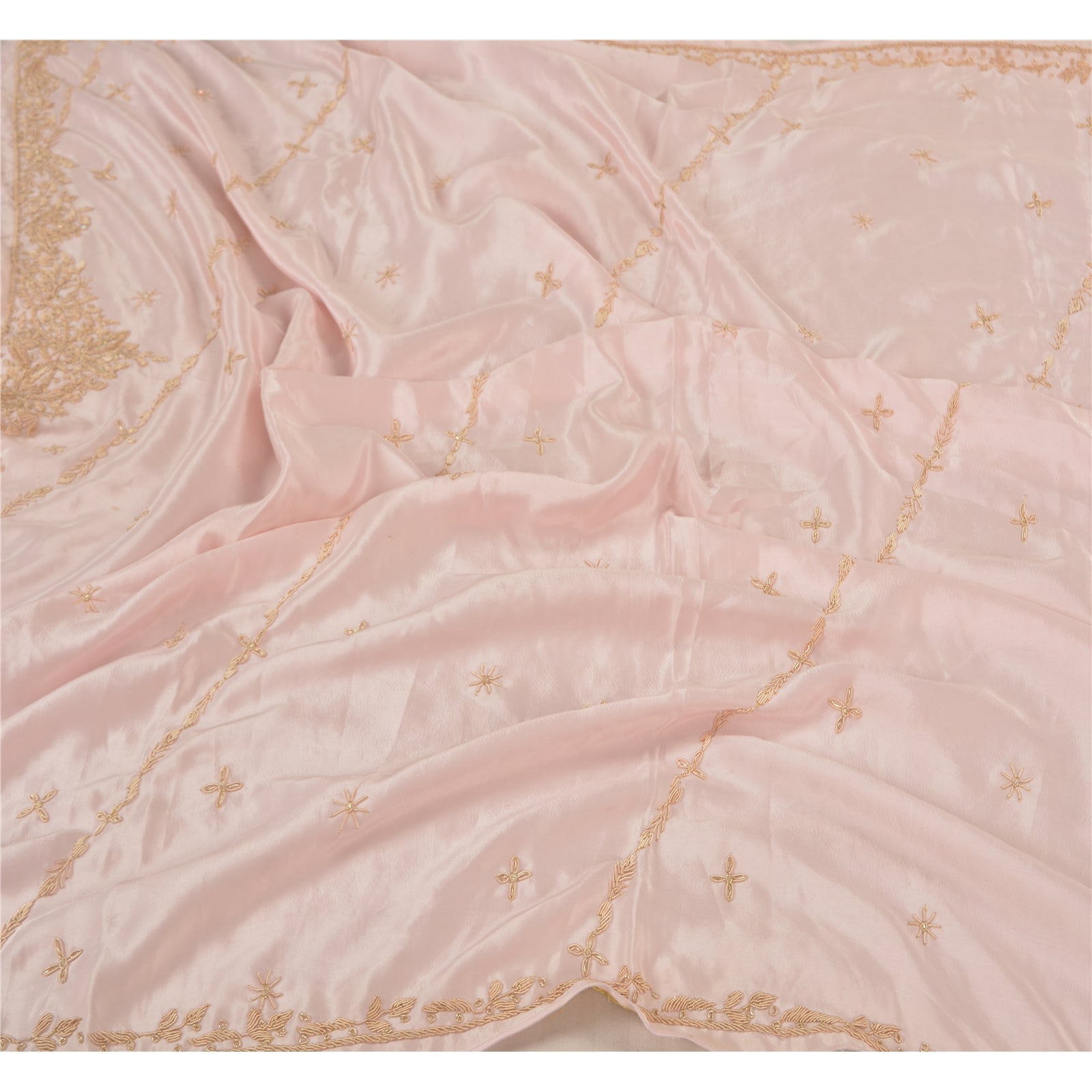 Sanskriti Vintage Heavy Dupatta Art Silk Baby Pink Hand Beaded Zardozi Stole