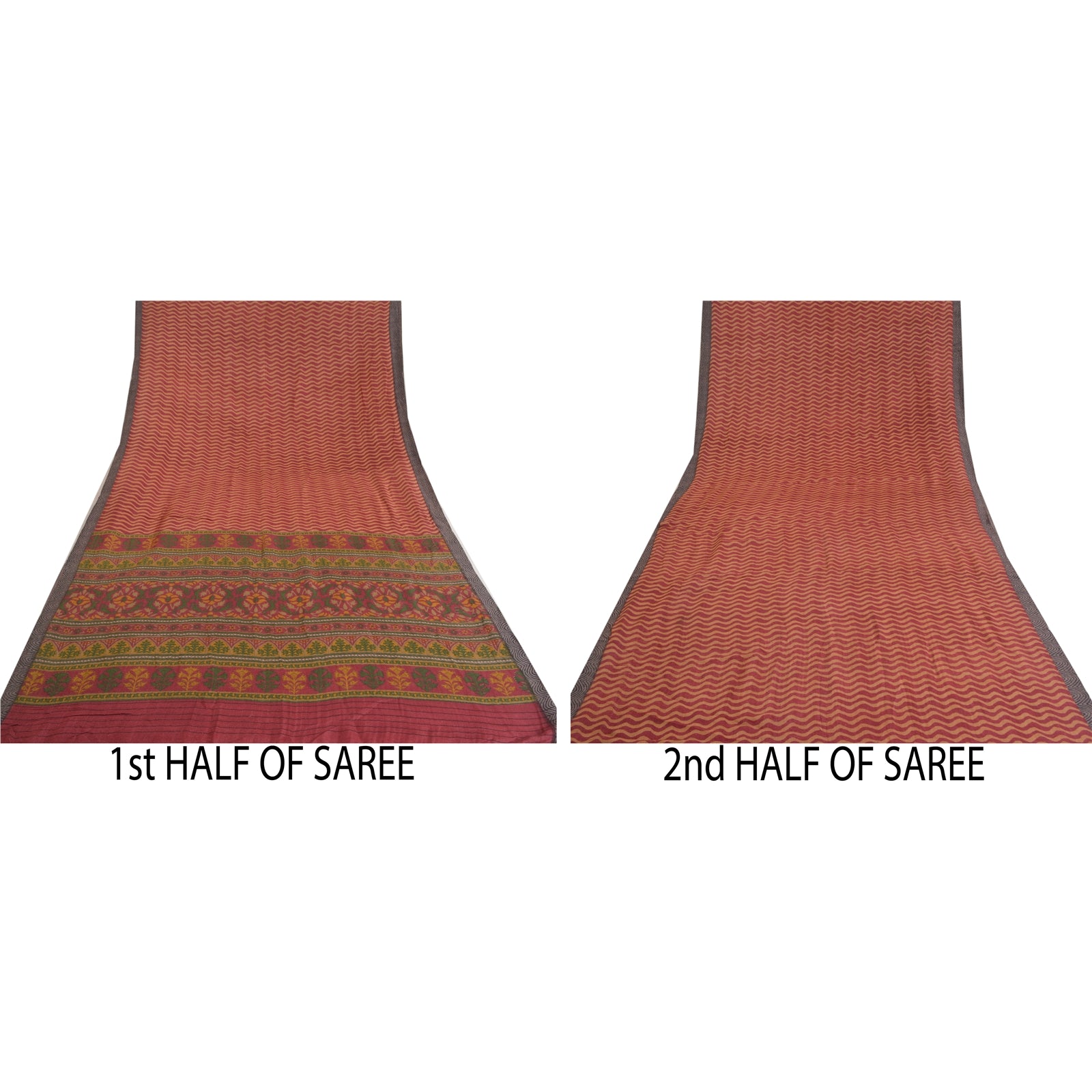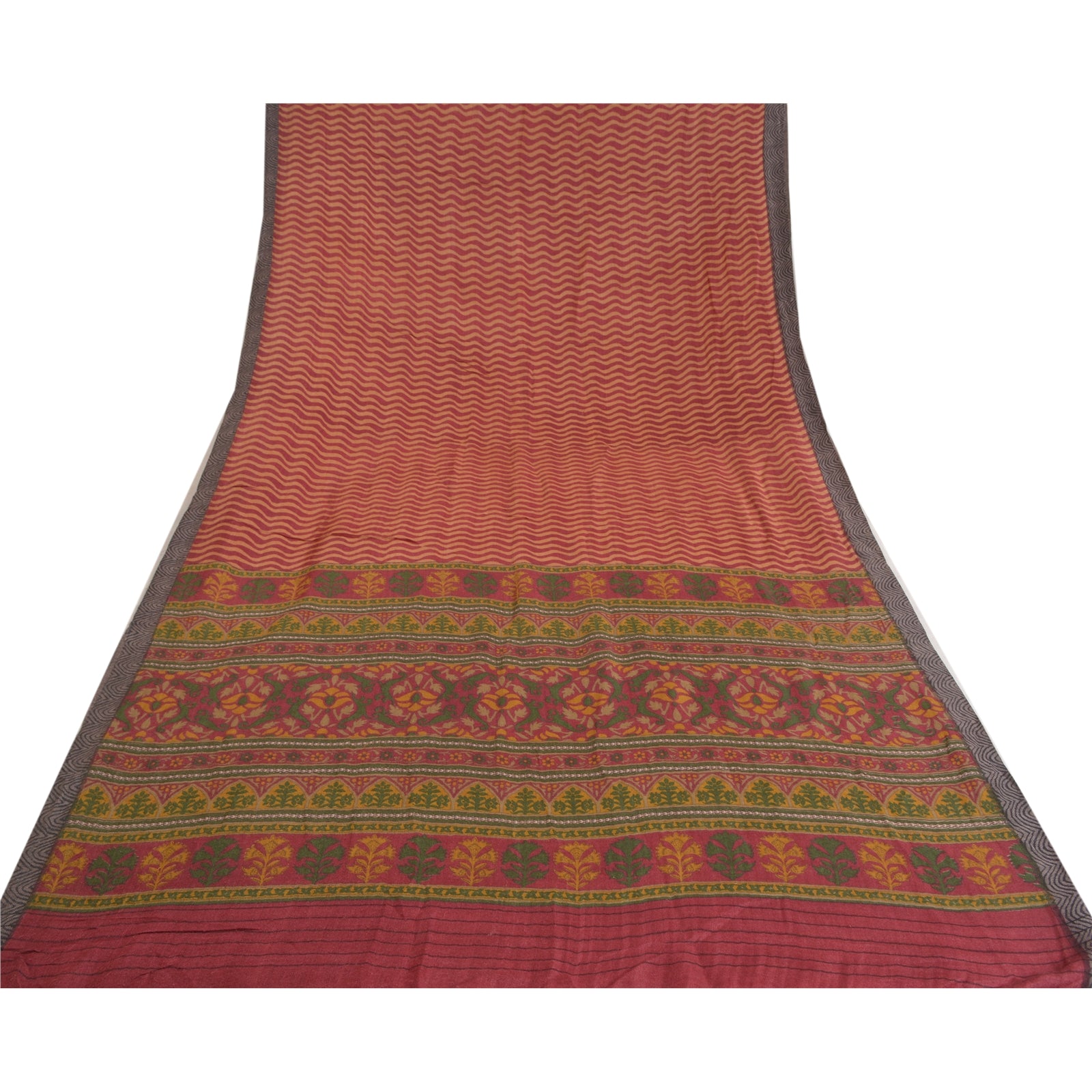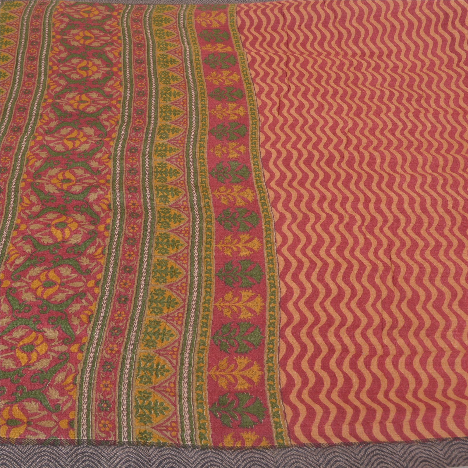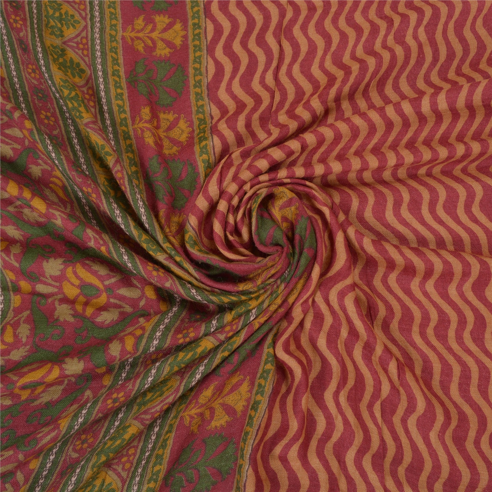 Sanskriti Vintage Heavy Indian Sarees Pure Woolen Red Sustainable Fabric Printed Woven Sari
