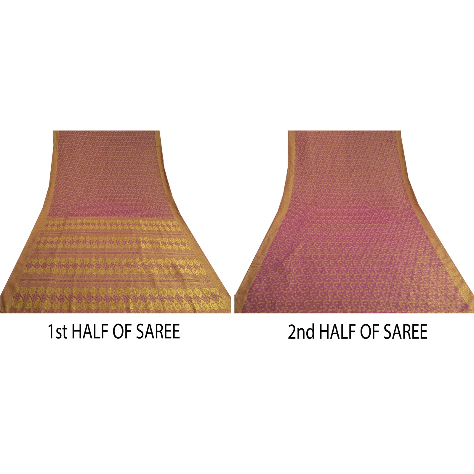 Sanskriti Offers This Vintage Purple Color Woven Brocade/Banarasi Heavy Saree Which Is Crafted With Art (Artificial) Silk Base Sustainable Fabric. The pallu & border sari features floral & paisley design embellished with golden color zari work. You can see similar zari work with floral & paisley design in center part of the sari. This heavy saree can be used for various crafting ideas too. Use it for dress designing, as a throw, as window dressing, upholstery, table linen and much more. Let your creative juices flow!