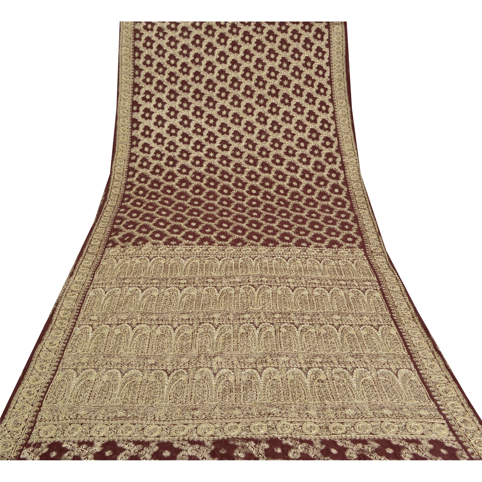 'THE ITEM COLOR OR SHADE MAY BE DARKER OR LIGHTER THAN THE PICTURE.' Outstanding dark red colored blend georgette hand embroidered woven heavy saree. Pallu & border sari has golden zari woven work embellished with white glass beads, golden beads & thread work with floral design. The centre part of the sari has similar woven work with floral design. This heavy saree can be used for various crafting ideas too. Use it for dress designing, as a throw, as window dressing, upholstery, table linen and much more. Let your creative juices flow! 'International buyers please note: Import duties, taxes, and charges are not included in the item price or postage cost. These charges are the buyer's responsibility. Please check with your country's customs office to determine what these additional costs will be prior to bidding or buying. Buyer will pay custom duty/tax. It is calculated and charged differently by every country. As a seller I do not have any control over it. VAT or sales tax is calculated by the platform at the time of checkout. Customs charge is payable at the time of delivery.
