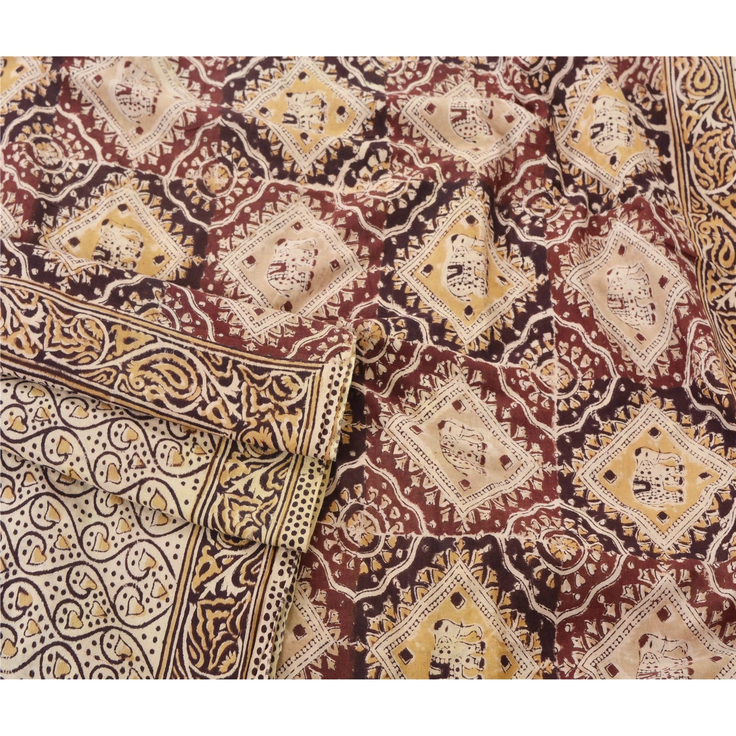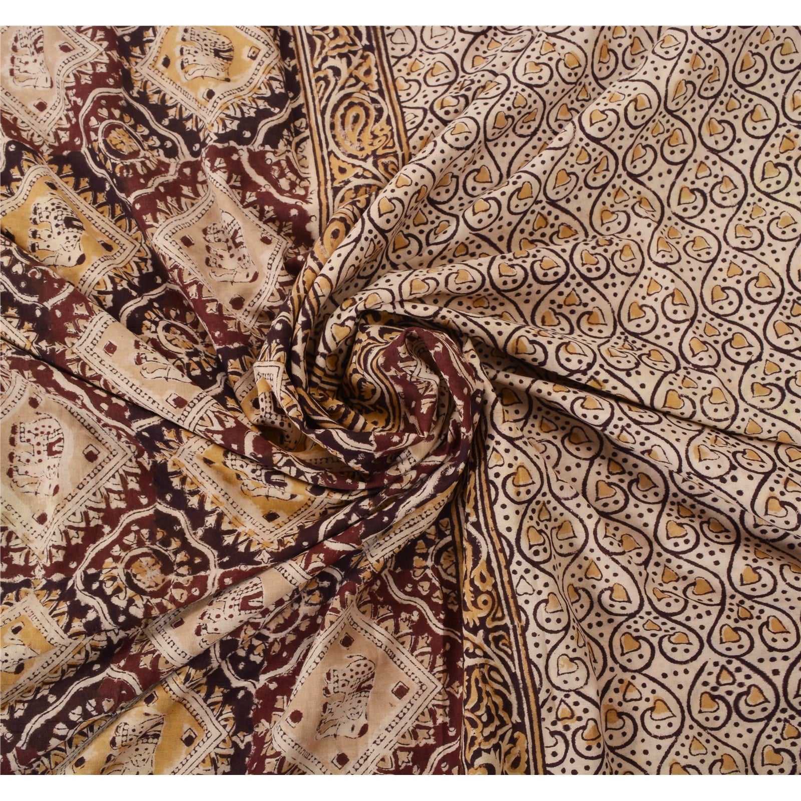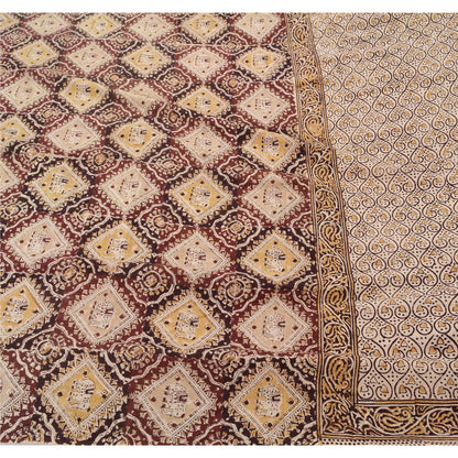 Sanskriti Vintage Heavy Sarees Pure Cotton 5YD Sustainable Fabric Block Print Kalamkari Sari