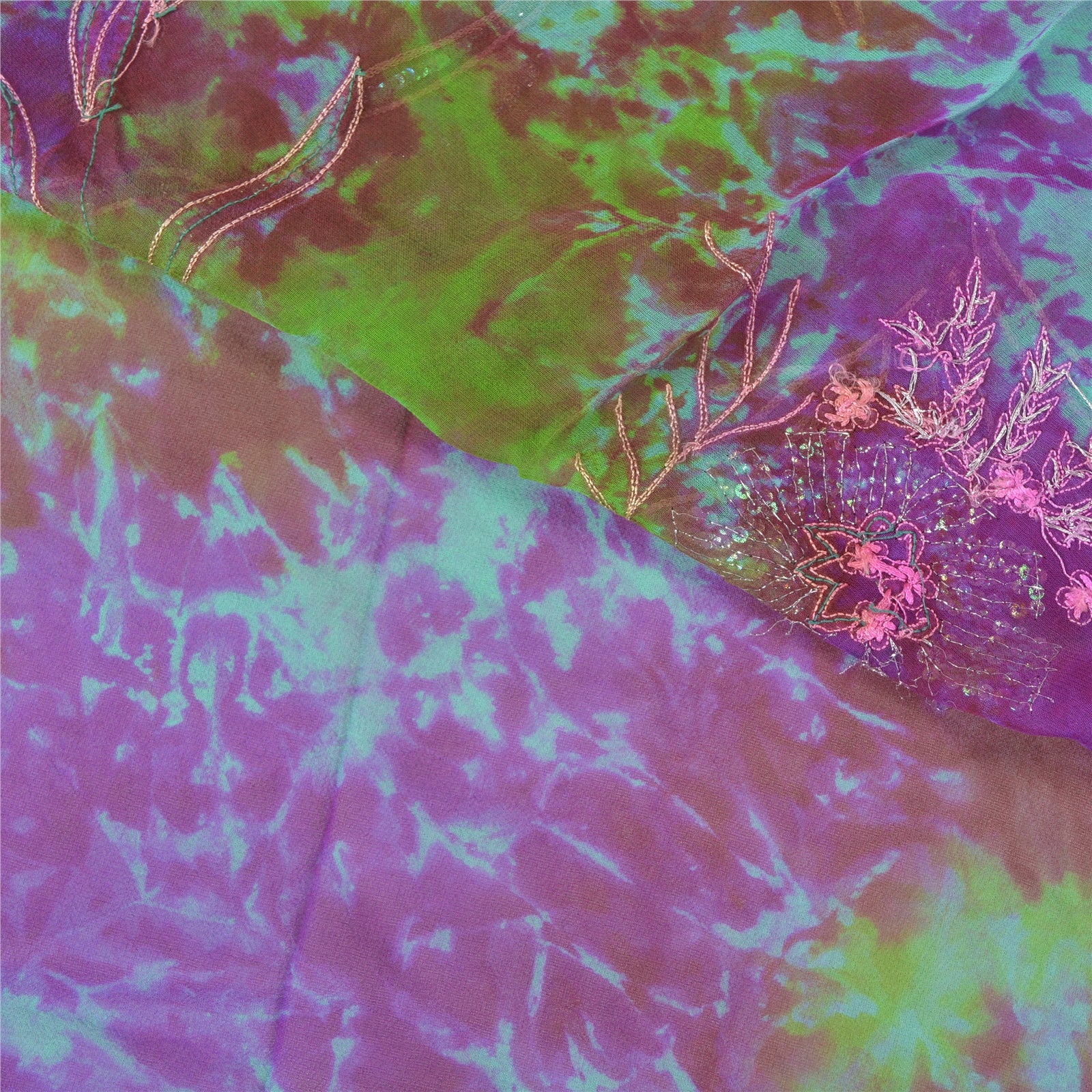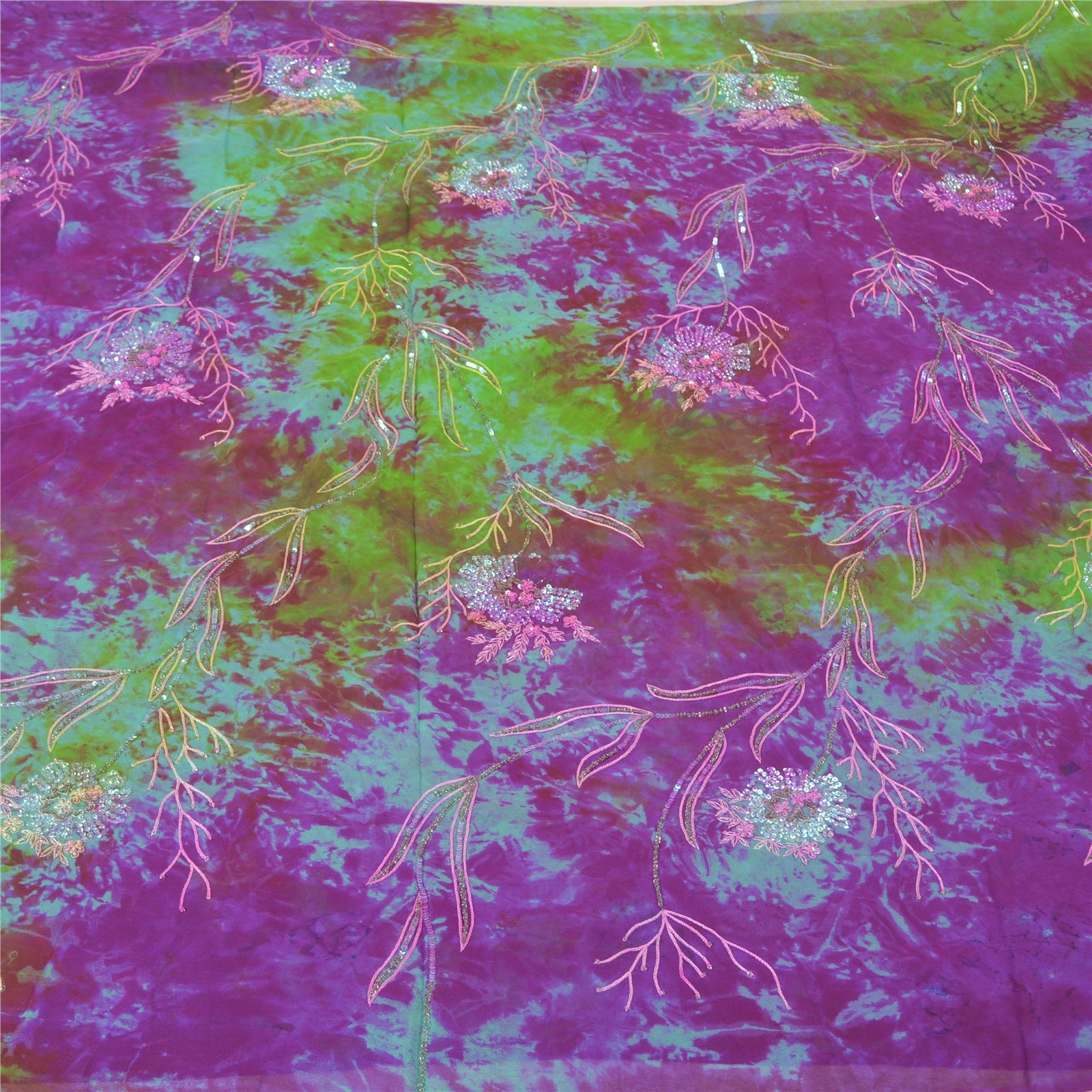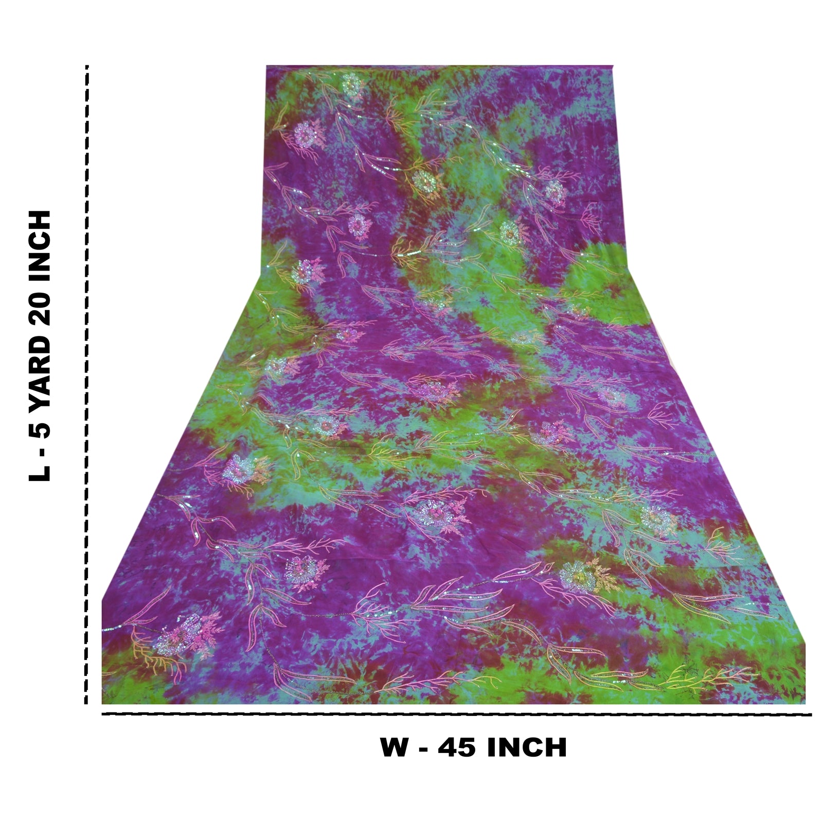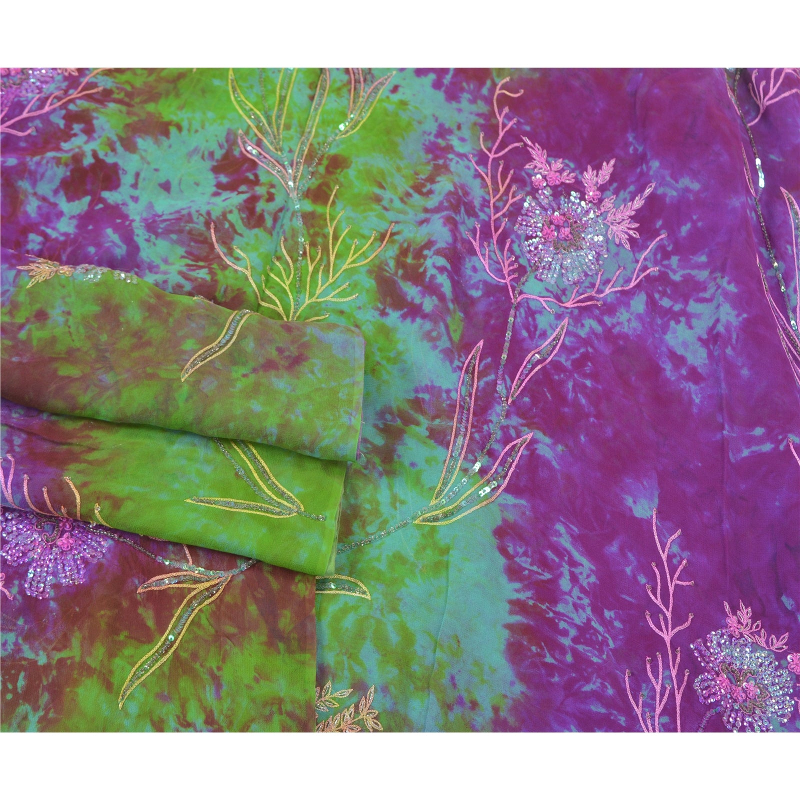 Outstanding shade of purple & green colored 100% pure georgette silk hand embroidered Tie-dye heavy saree. All over sari has tie-dye work embellished with multi reflected sequins, white glass beads & thread work with floral & abstract pattern. This heavy saree can be used for various crafting ideas too. Use it for dress designing, as a throw, as window dressing, upholstery, table linen and much more. Let your creative juices flow! 'International buyers please note: Import duties, taxes, and charges are not included in the item price or postage cost. These charges are the buyer's responsibility. Please check with your country's customs office to determine what these additional costs will be prior to bidding or buying. Buyer will pay custom duty/tax. It is calculated and charged differently by every country. As a seller I do not have any control over it. VAT or sales tax is calculated by the platform at the time of checkout. Customs charge is payable at the time of delivery.'