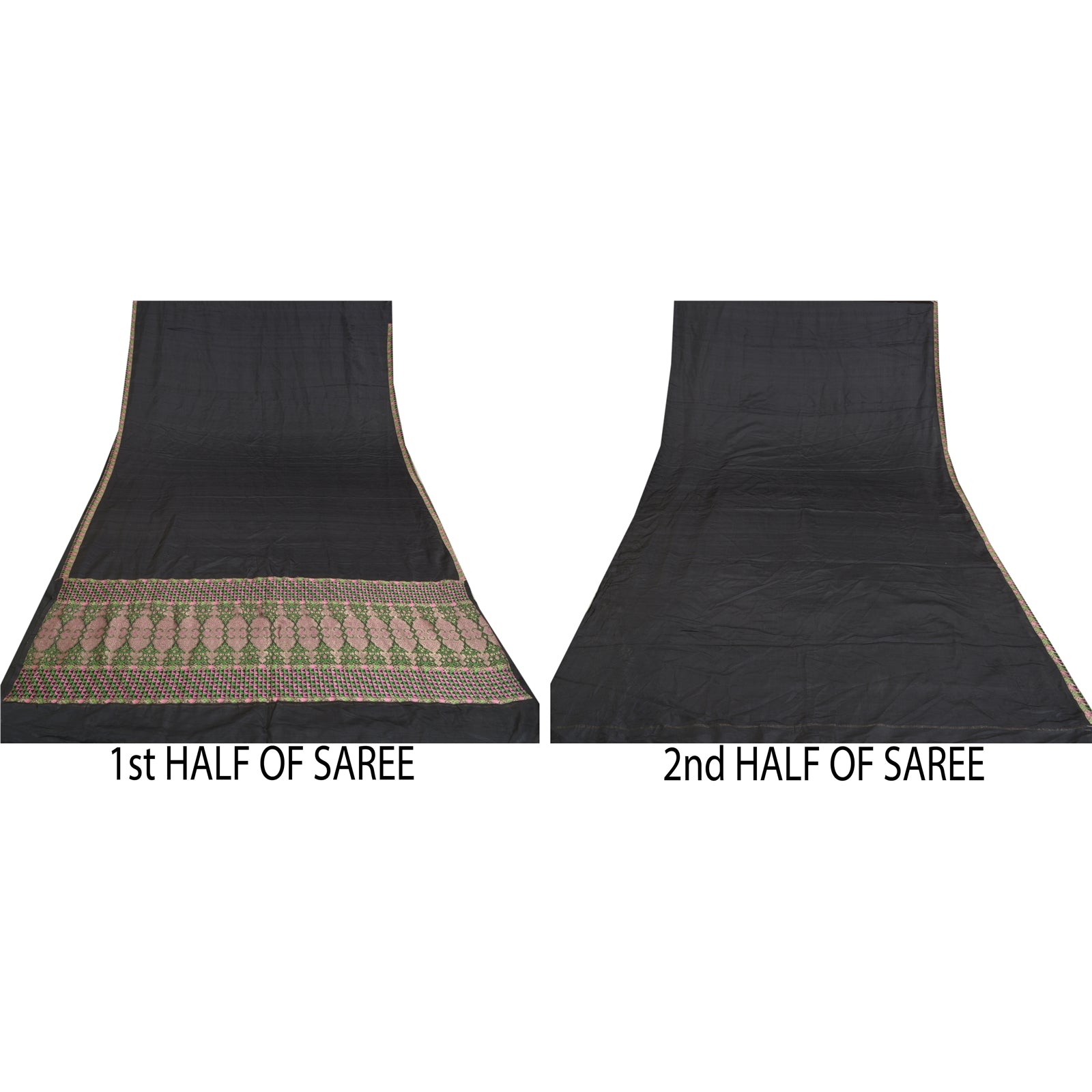 'THE ITEM COLOR OR SHADE MAY BE DARKER OR LIGHTER THAN THE PICTURE.' Sanskriti Offers This Vintage Black Color Woven Brocade/Banarasi Heavy Saree Which Is Crafted With 100% Pure Satin Silk Base Sustainable Fabric. The pallu & border sari features geometric design embellished with metallic golden color zari work, thread work. Solid black color in center part of saree. This heavy saree can be used for various crafting ideas too. Use it for dress designing, as a throw, as window dressing, upholstery, table linen and much more. Let your creative juices flow! 'International buyers please note: Import duties, taxes, and charges are not included in the item price or postage cost. These charges are the buyer's responsibility. Please check with your country's customs office to determine what these additional costs will be prior to bidding or buying. Buyer will pay custom duty/tax. It is calculated and charged differently by every country. As a seller I do not have any control over it. VAT or sales tax is calculated by the platform at the time of checkout. Customs charge is payable at the time of delivery.'