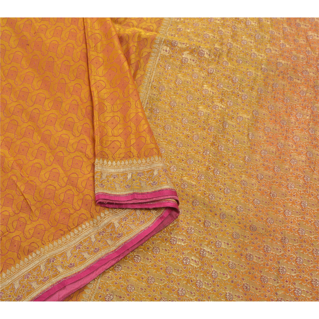 Sanskriti Vintage Heavy Sarees Pure Satin Silk Saffron Woven Brocade Sari Sustainable Fabric