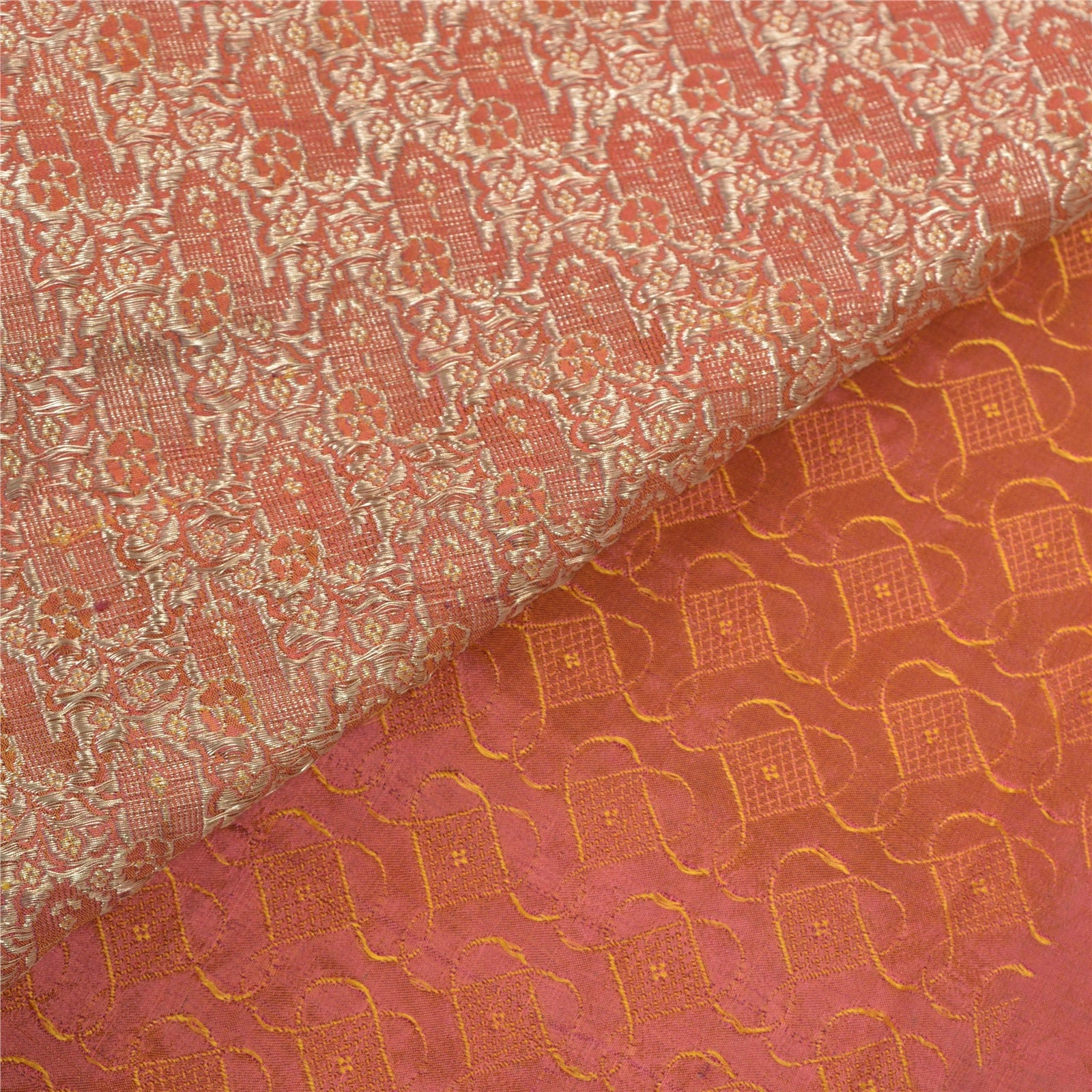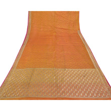 Sanskriti Offers This Vintage Shade Of Saffron Color Woven Brocade/Banarasi Heavy Saree Which Is Crafted With 100% Pure Satin Silk Base Sustainable Fabric The pallu & border sari features floral design embellished with pure metallic golden zari work, pink thread woven work. The center part of sari boasts abstract design with pink woven work. This heavy saree can be used for various crafting ideas too. Use it for dress designing, as a throw, as window dressing, upholstery, table linen and much more. Let your creative juices flow! The quality of zari work is amazing, its a pure metallic zari. Some zari work gives a antique look.