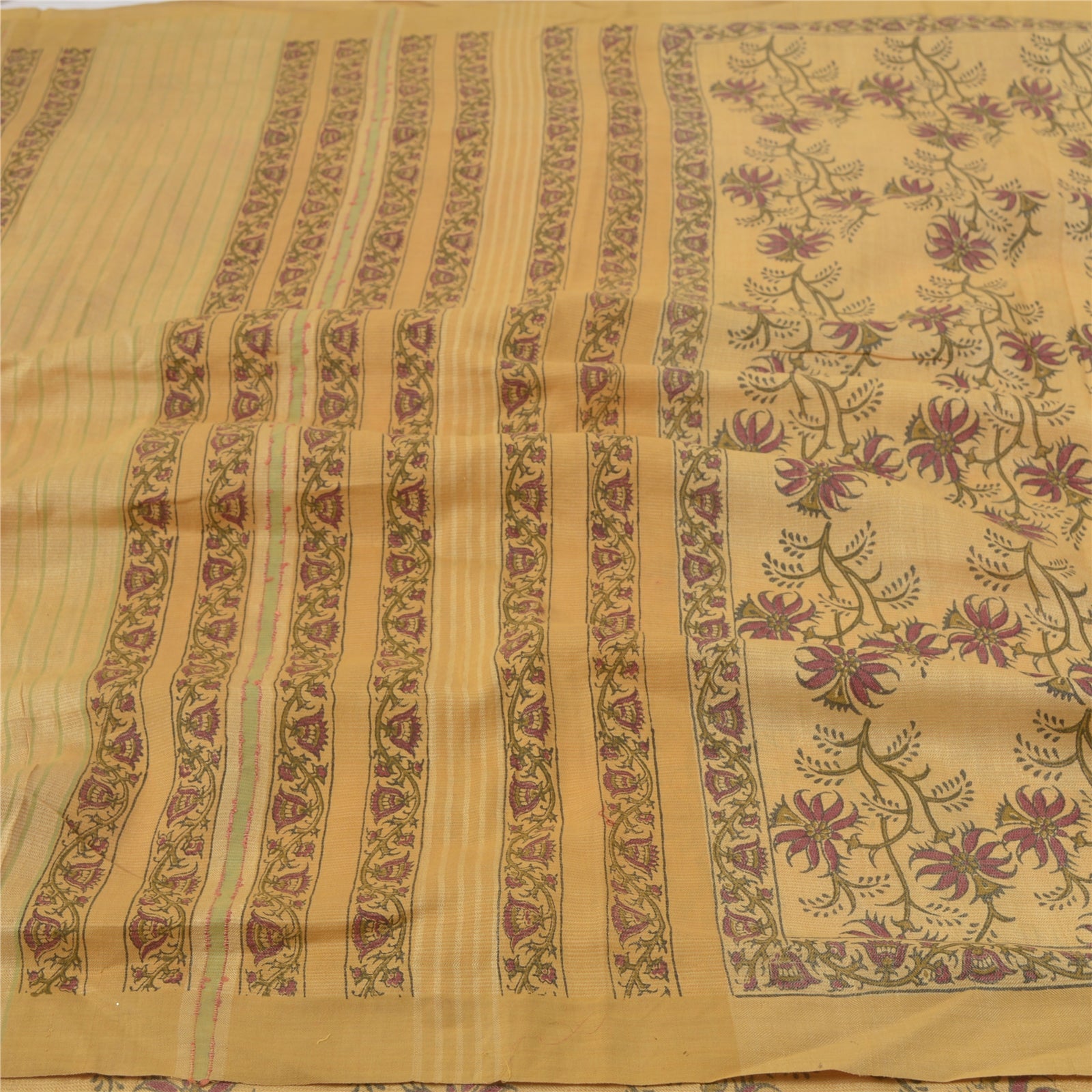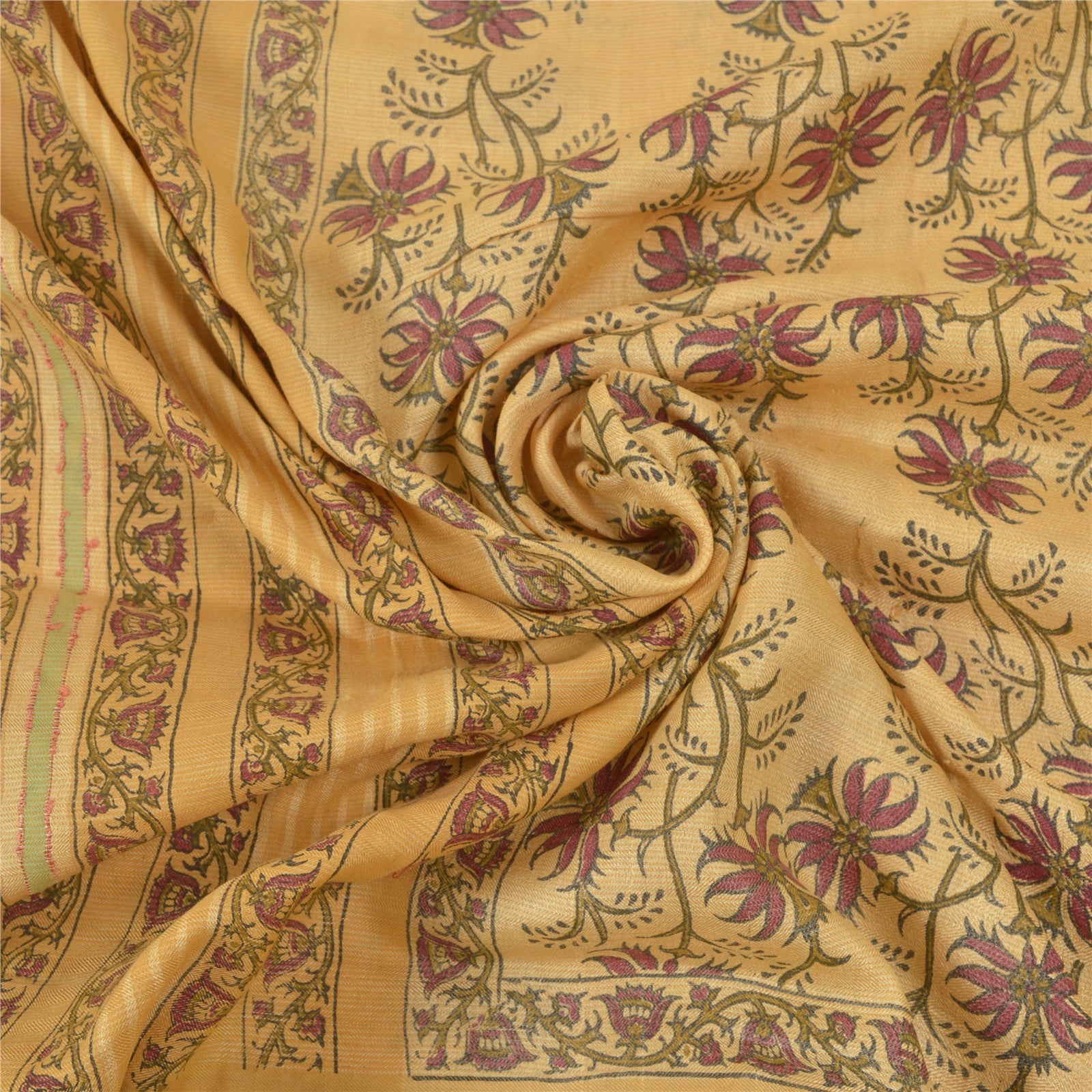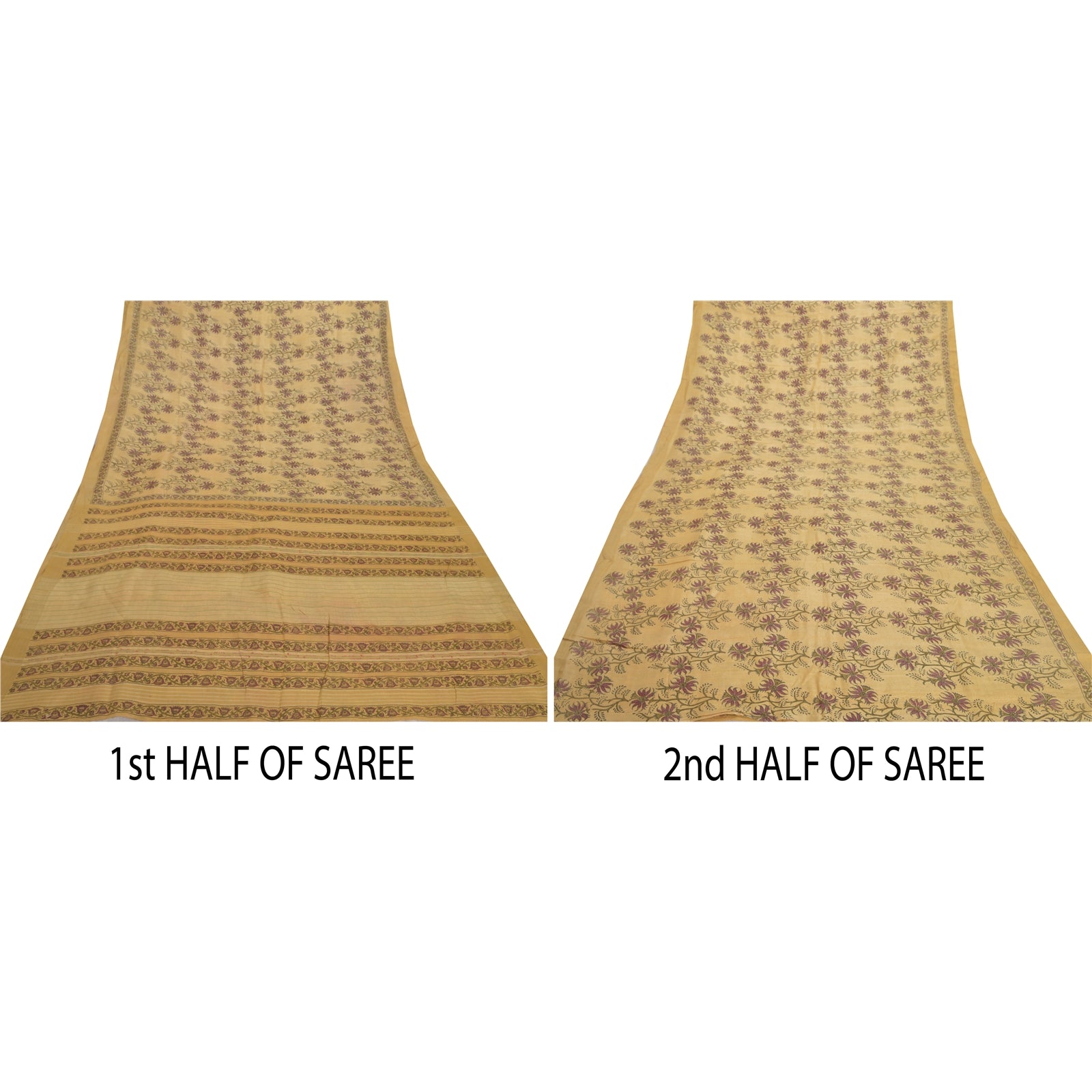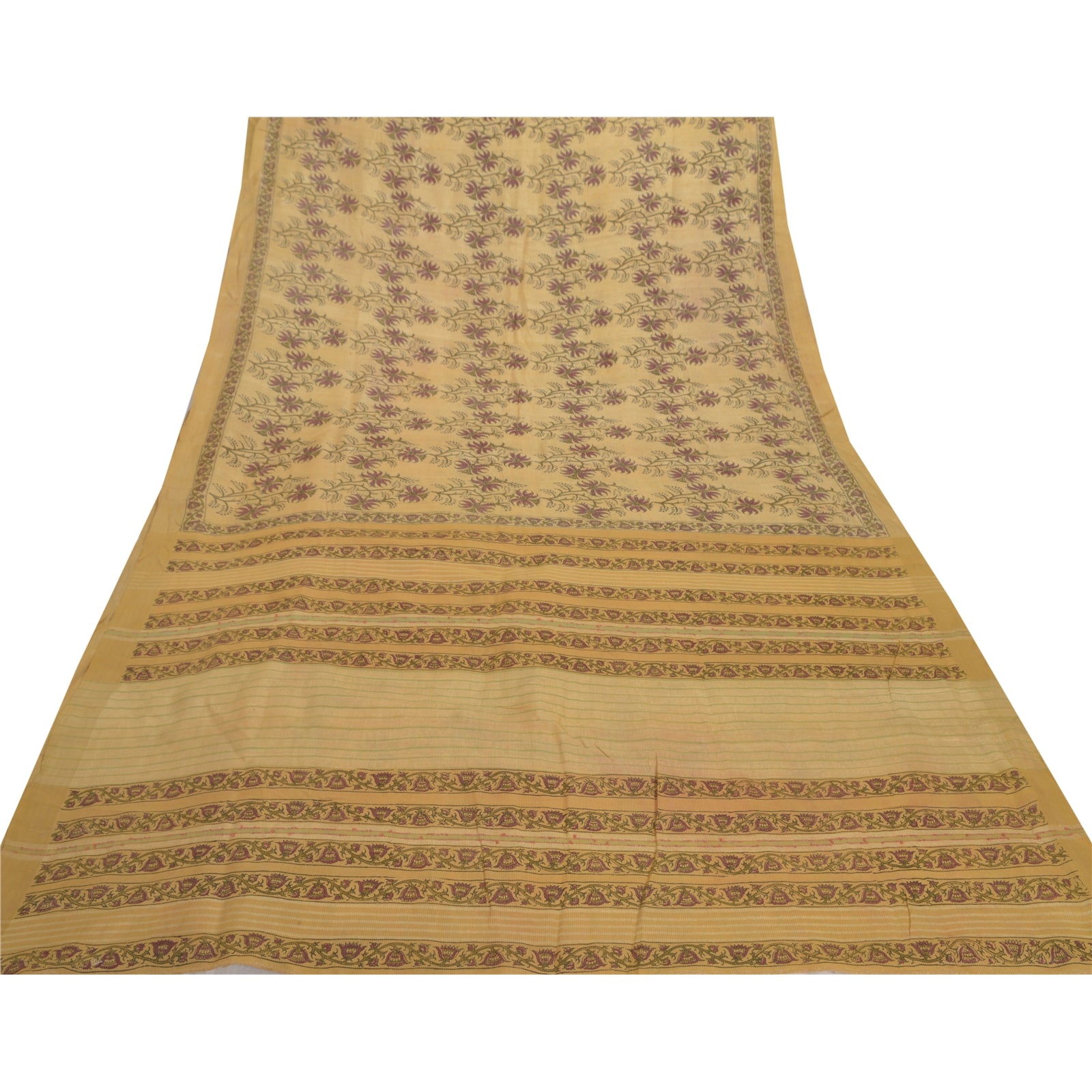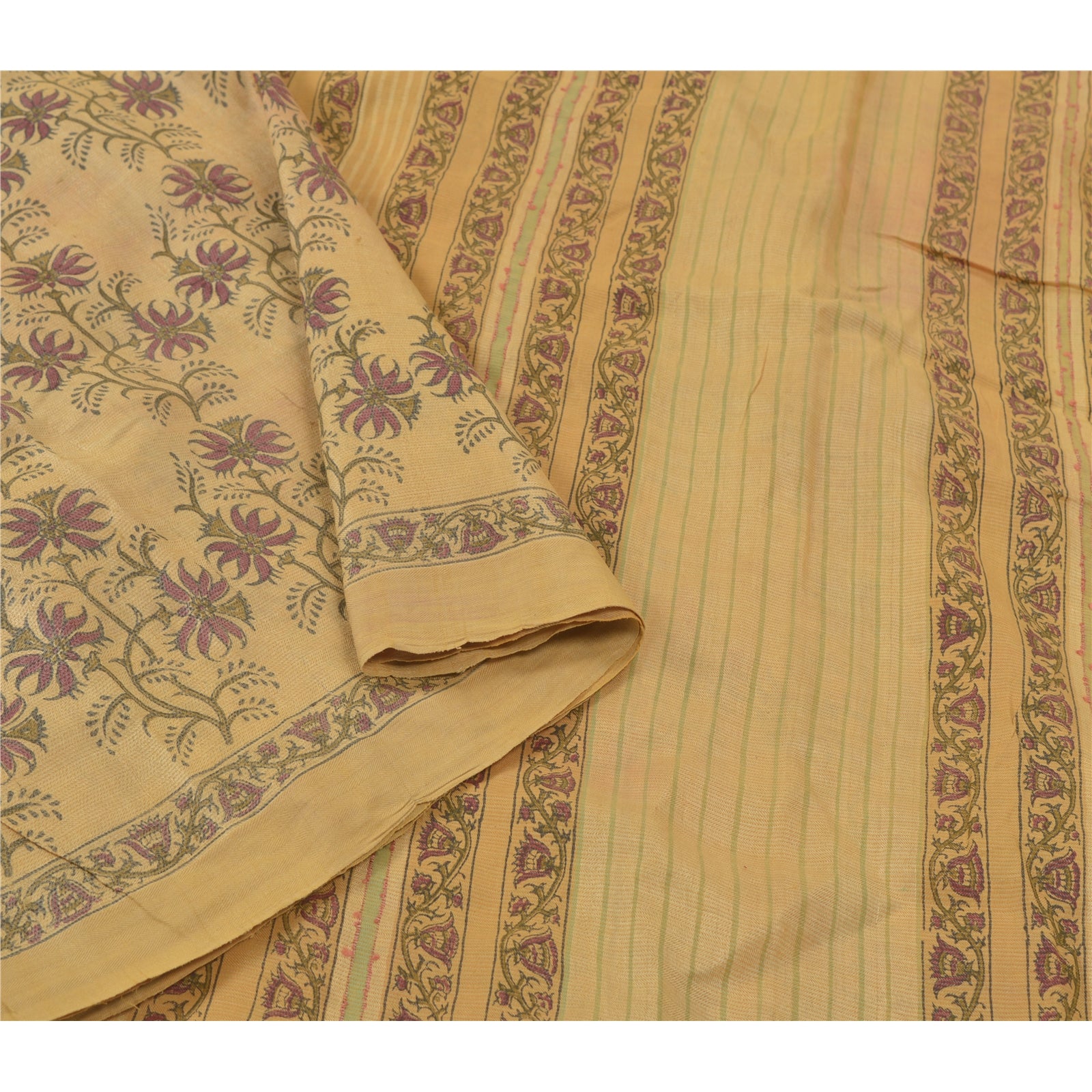 Sanskriti Vintage Heavy Sarees Pure Woolen Cream Sustainable Fabric Printed & Woven Sari