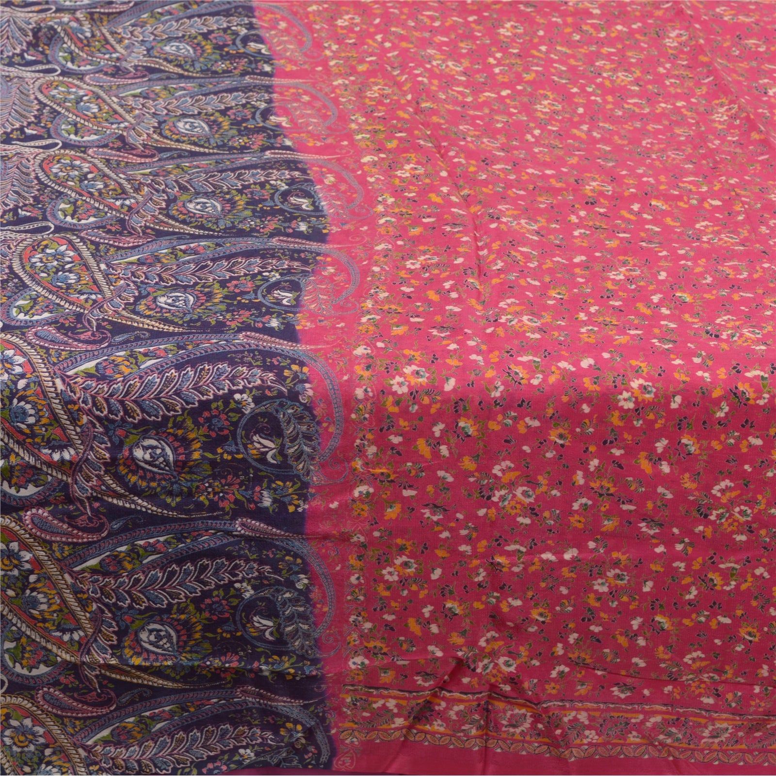 Sanskriti Vintage Hot Pink/Blue Pure Silk Sarees Printed Sari Craft Sustainable Fabric