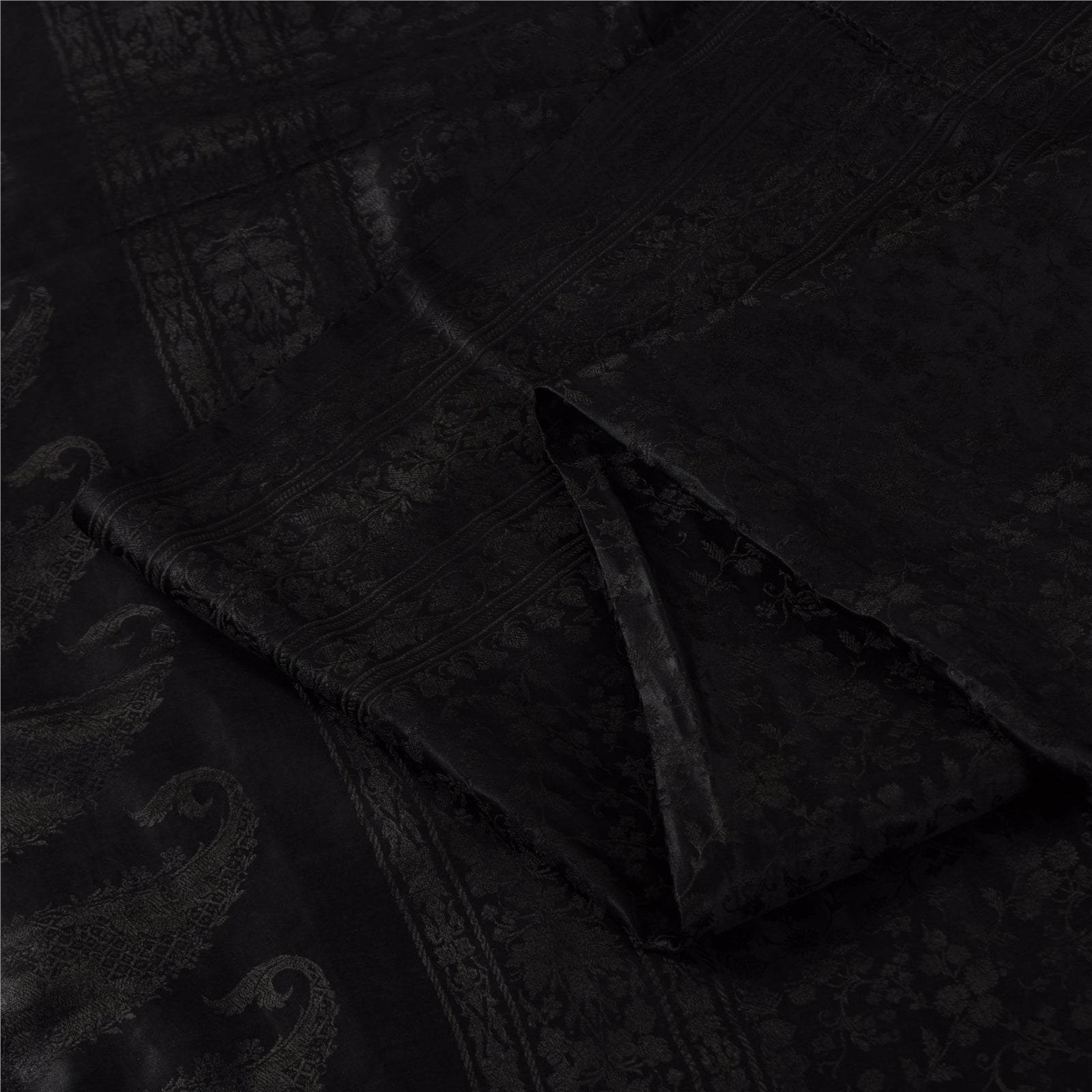 THE ITEM COLOR OR SHADE MAY BE DARKER OR LIGHTER THAN THE PICTURE.' An Awesome Sari In 100% Pure Silk Black Colored woven Sari/Fabric. Pallu & Border Features floral design embellished with black color woven work You Can See Center Portion Of The Sari Has Similar Woven work With Floral Design. This unique vintage saree can be used for various crafting ideas for example design a dress, use it as a throw, as window dressing, upholstery, table linen and much more. Let your creative juices flow and use this decorated fabric in multiple fashion Shipping note: International buyers please note: Import duties, taxes, and charges are not included in the item price or postage cost. These charges are the buyer's responsibility. Please check with your country's customs office to determine what these additional costs will be prior to bidding or buying. Buyer will pay custom duty/tax. It is calculated and charged differently by every country. As a seller I do not have any control over it. VAT or sales tax is calculated by the platform at the time of checkout. Customs charge is payable at the time of delivery. SKU: HS-7217