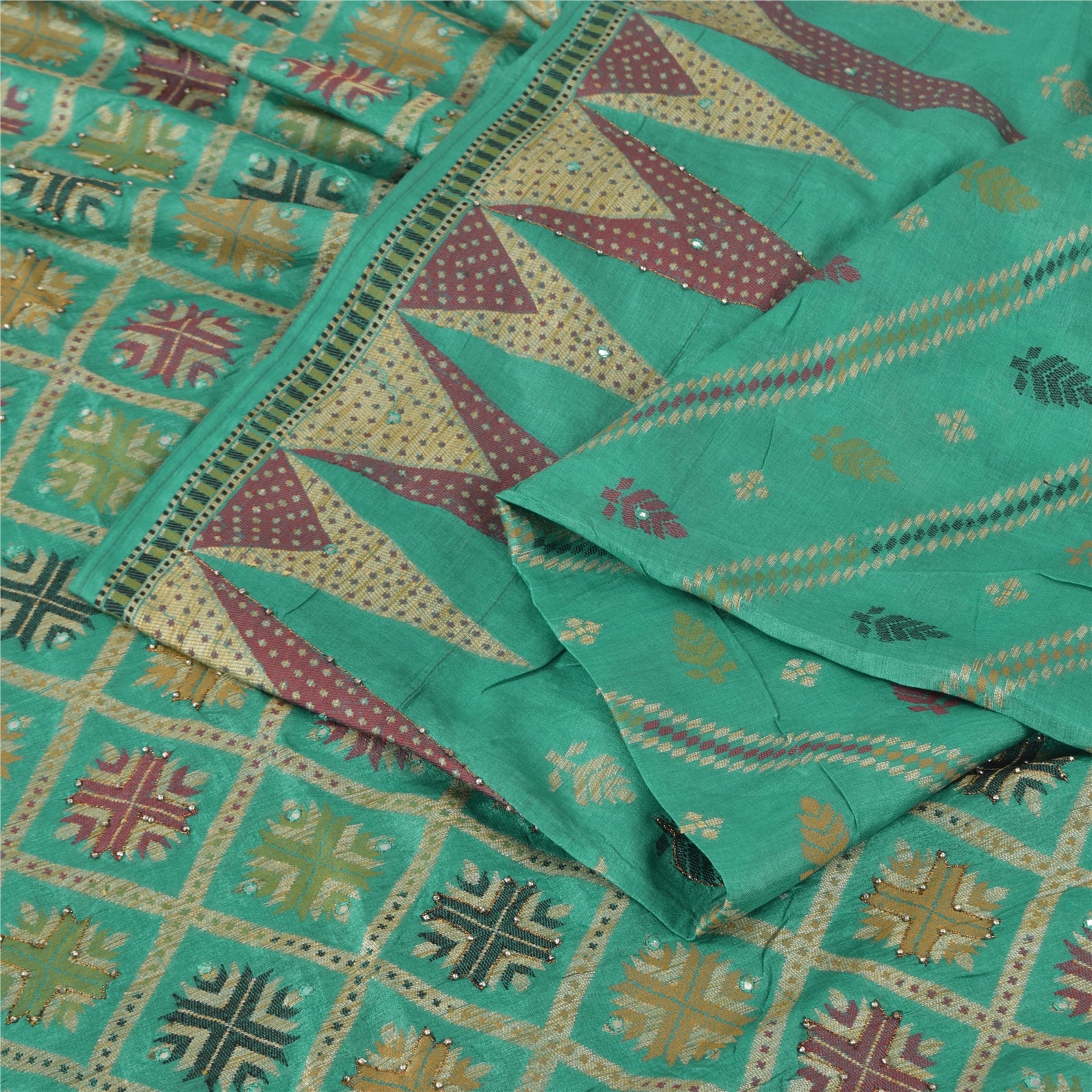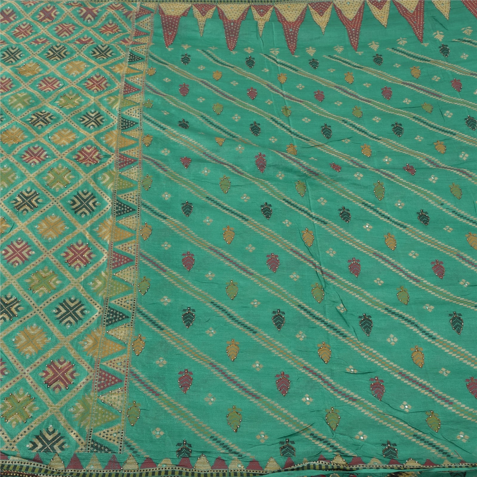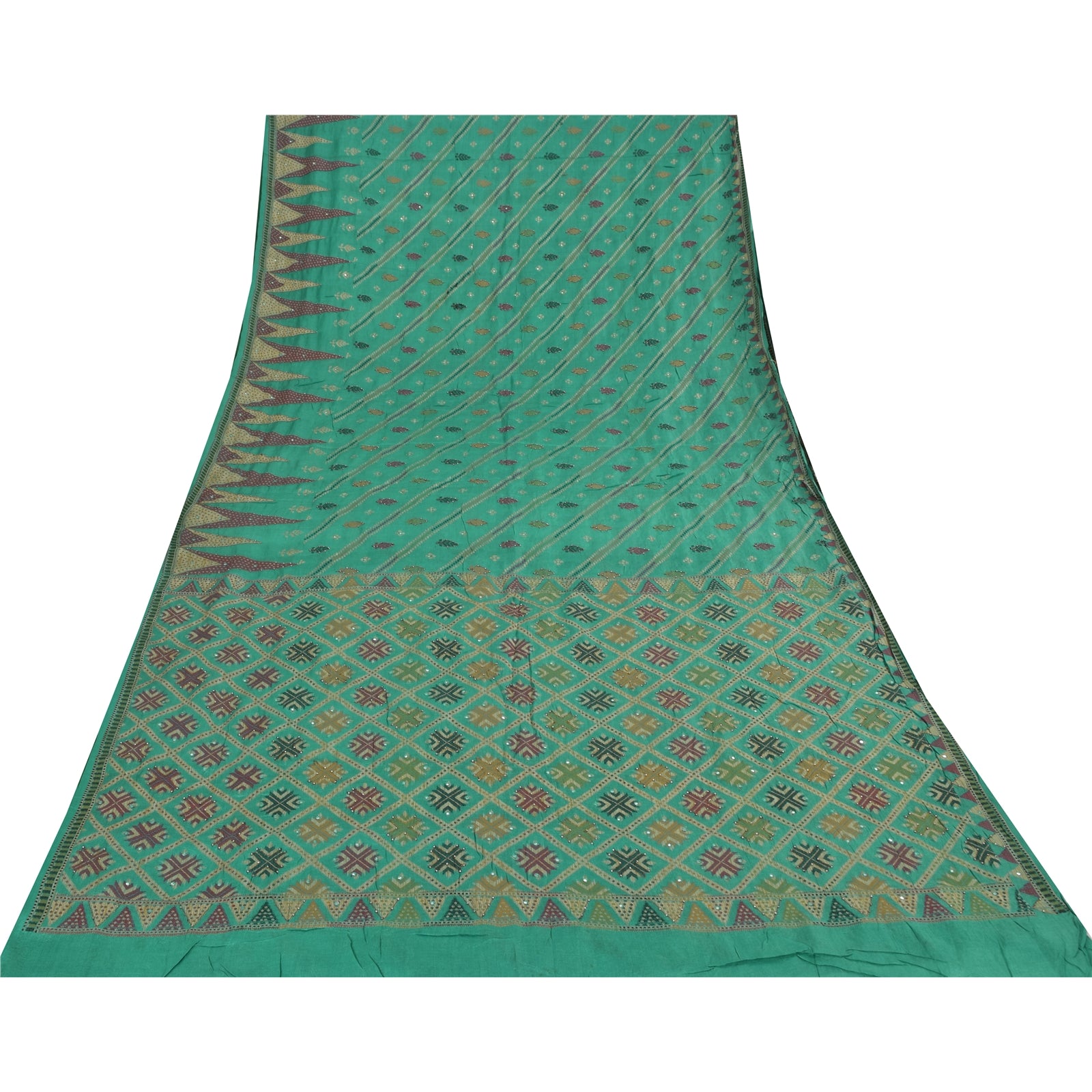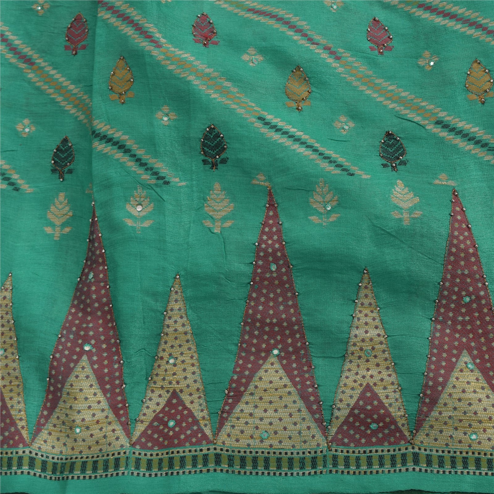 Sanskriti Vintage Indian Green Sarees Pure Silk Hand Beaded Premium Sari Sustainable Fabric