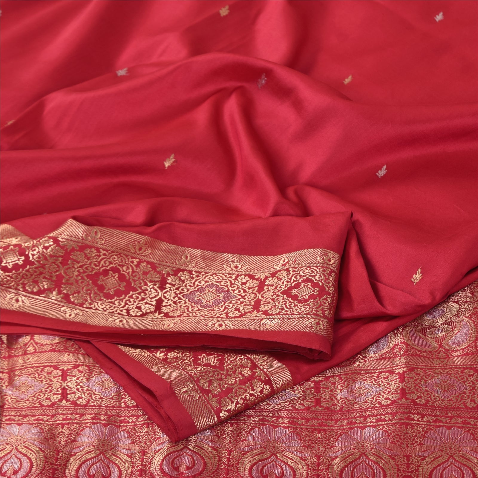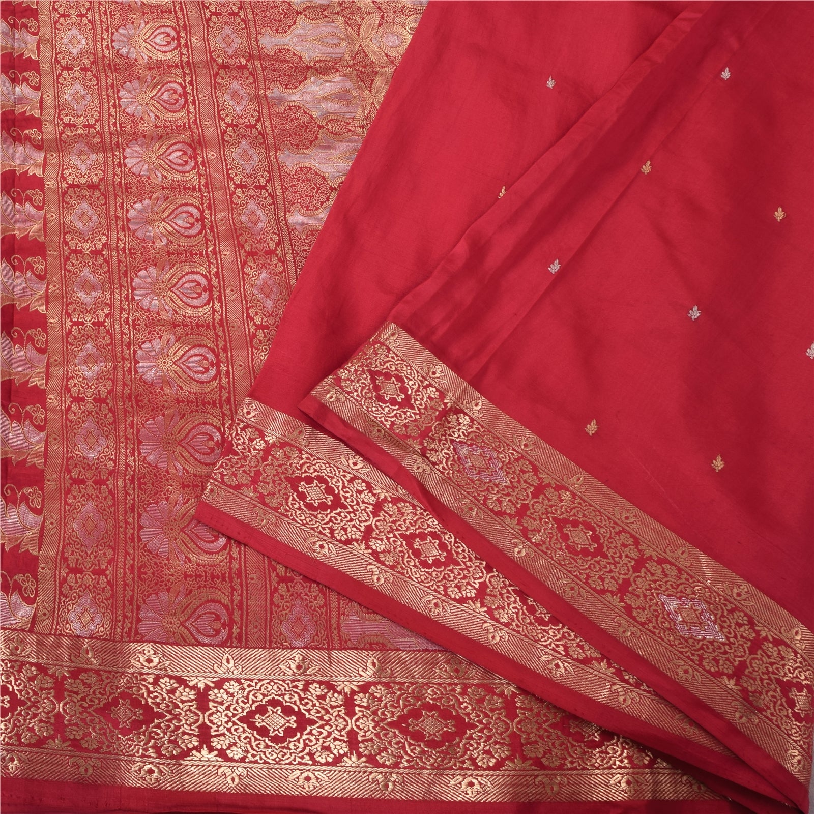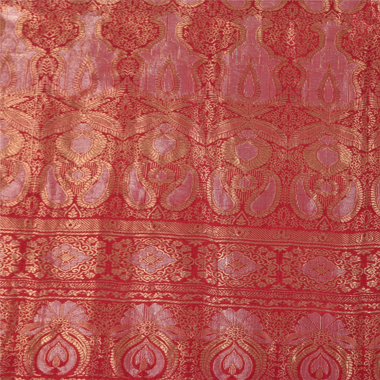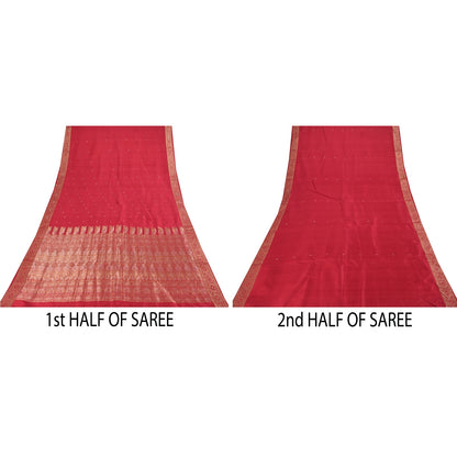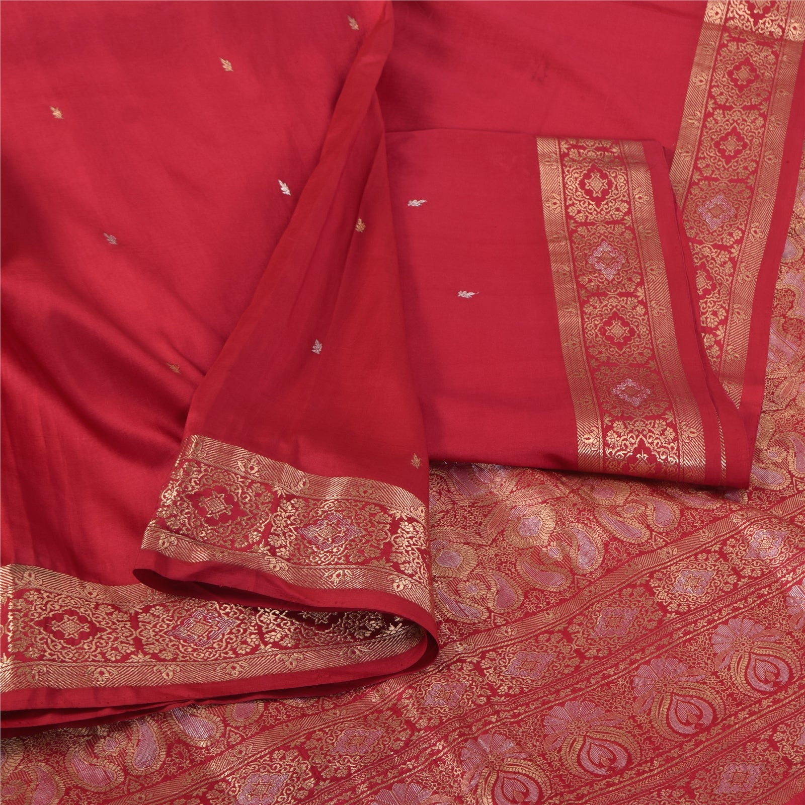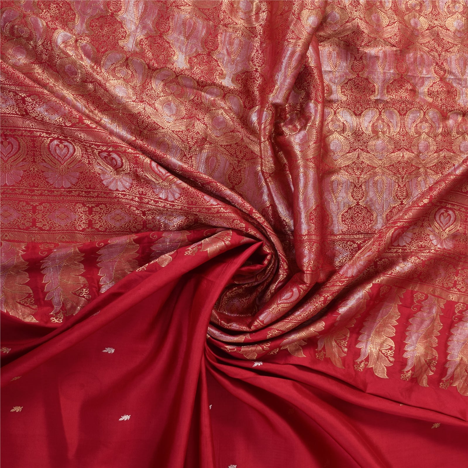 Sanskriti Vintage Indian Red Sarees Pure Silk Woven Ethnic Craft Fabric 5yd Sari