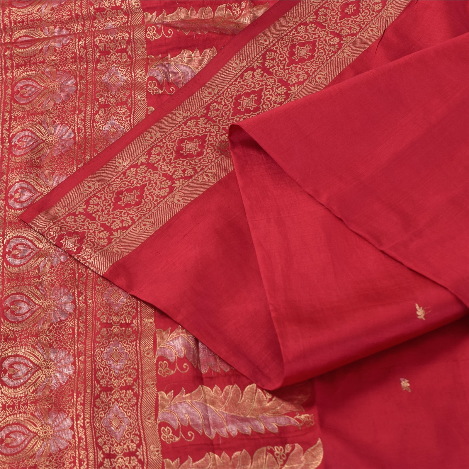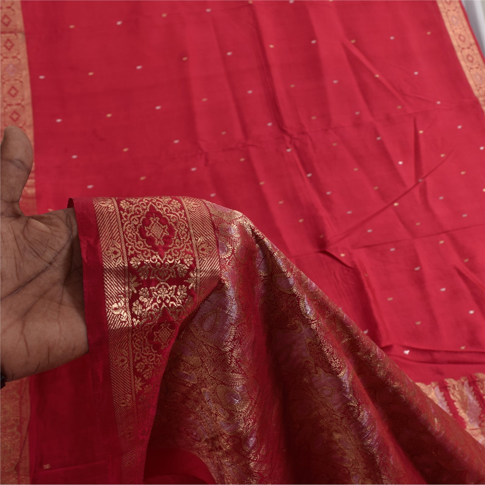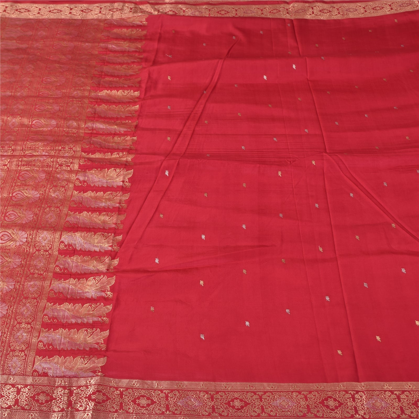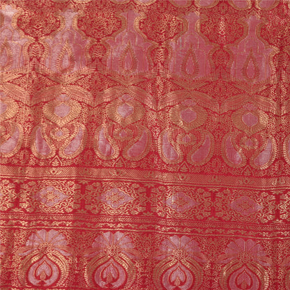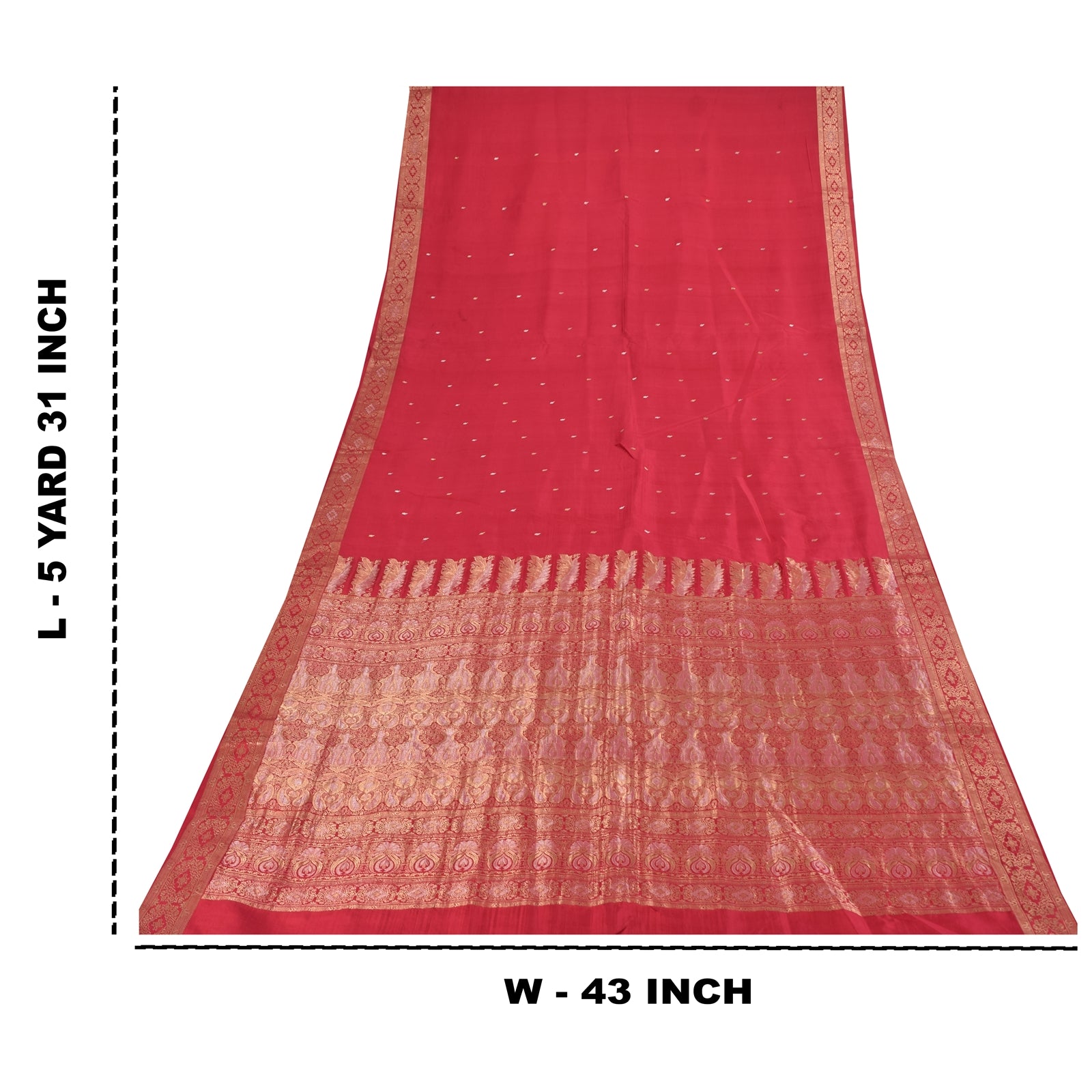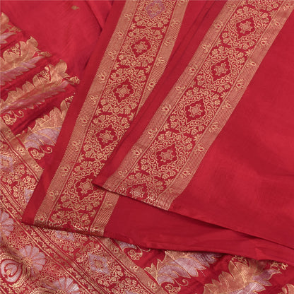 Sanskriti Vintage Indian Red Sarees Pure Silk Woven Ethnic Craft Fabric 5yd Sari