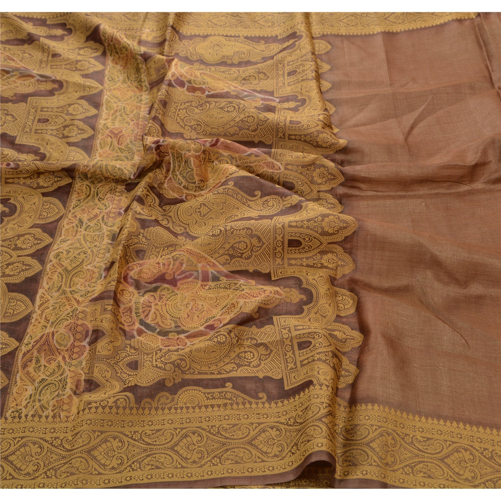 ? Beautiful brown colored woven pure silk sari ? Pallu & Border features floral & paisley design adorned with beige weaving work makes the sari look ravishing What is special about this saree? Nice woven work with floral design on brown color base Sustainable Fabric is really enhancing the beauty of the saree. This unique vintage saree can be used for various crafting ideas even if you don't want to use it as a sari. Design a dress, use it as a throw, as window dressing, upholstery, sarongs, table linen and much more. Let your creative juices flow and use this decorated Sustainable Fabric in multiple fashion.