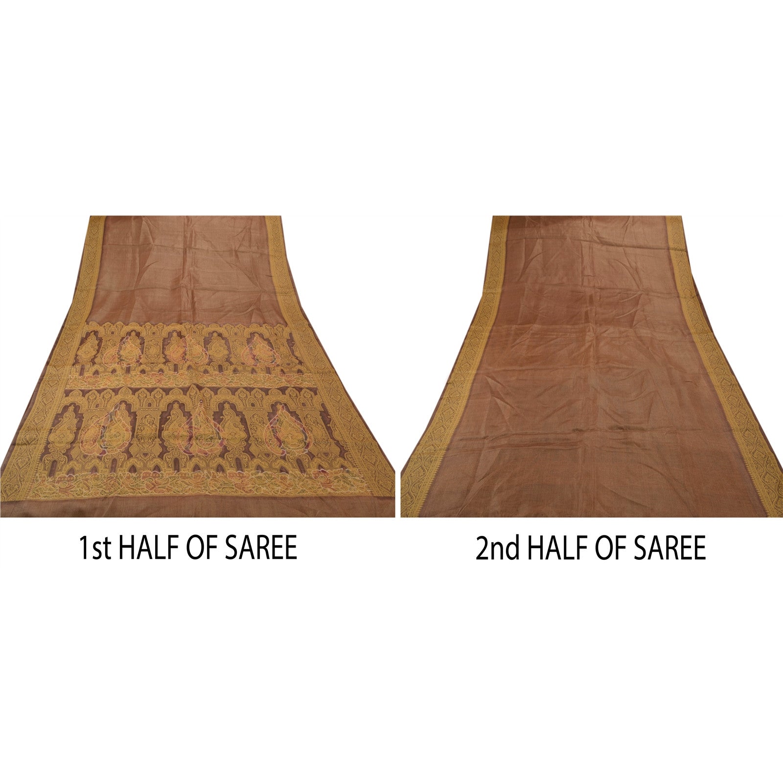 Sanskriti Vintage Indian Saree 100% Pure Silk Brown Woven Craft Sustainable Fabric Sari