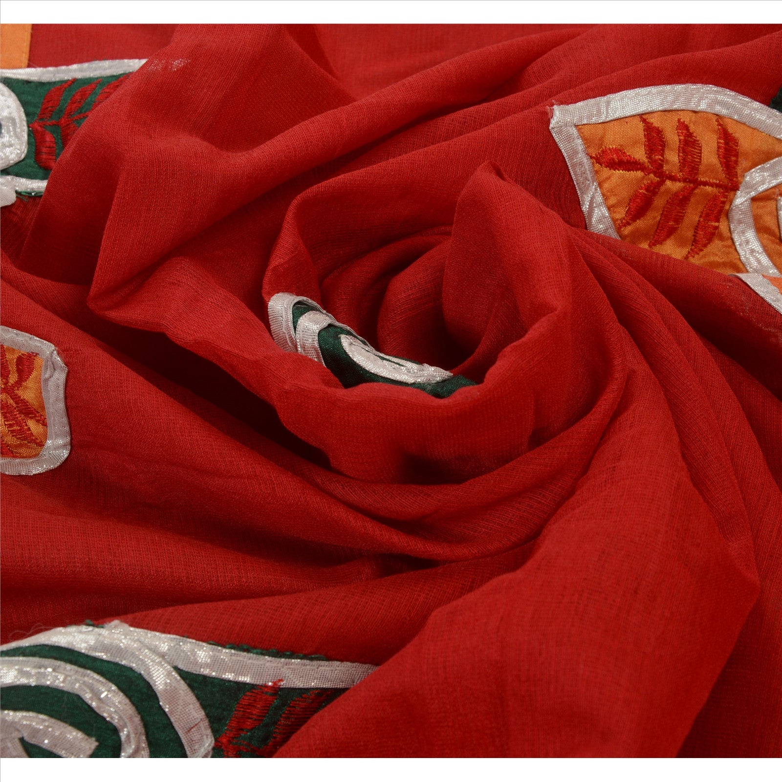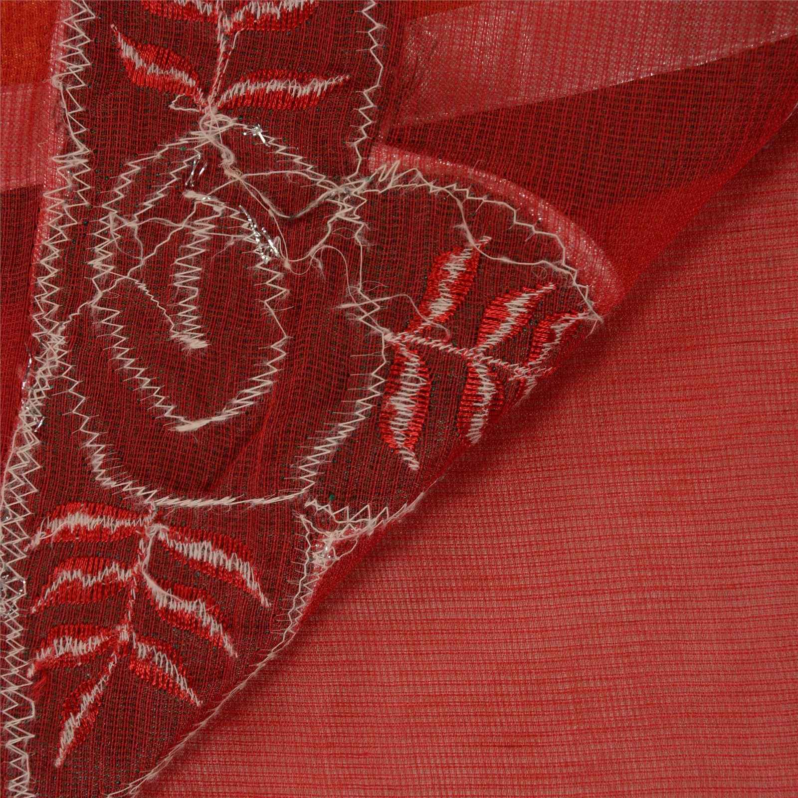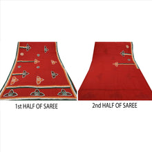 Sanskriti Vintage Indian Saree Art Silk Embroidered Red Craft Sustainable Fabric Ethnic Sari