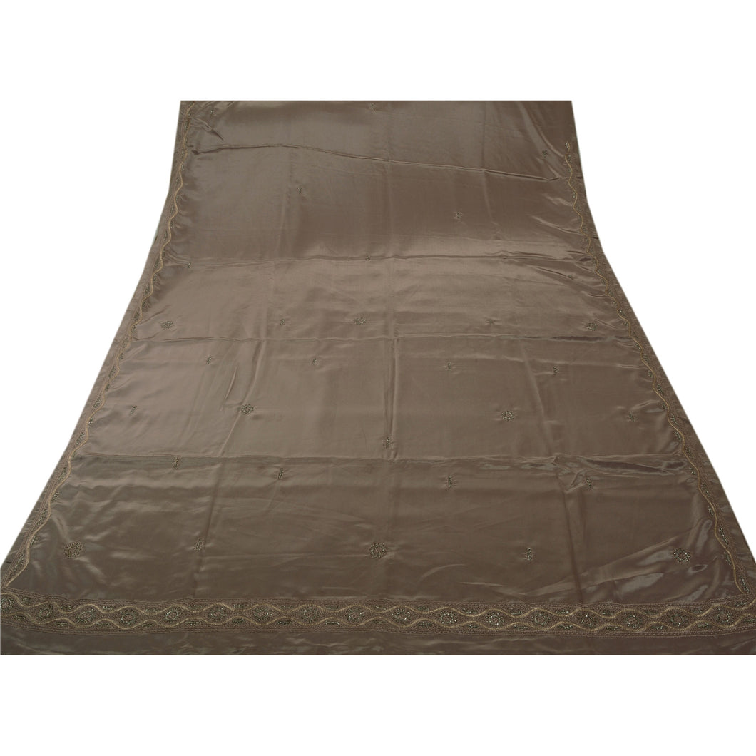 Sanskriti Vintage Indian Saree Art Silk Hand Beaded Craft Grey Sustainable Fabric Zari Sari