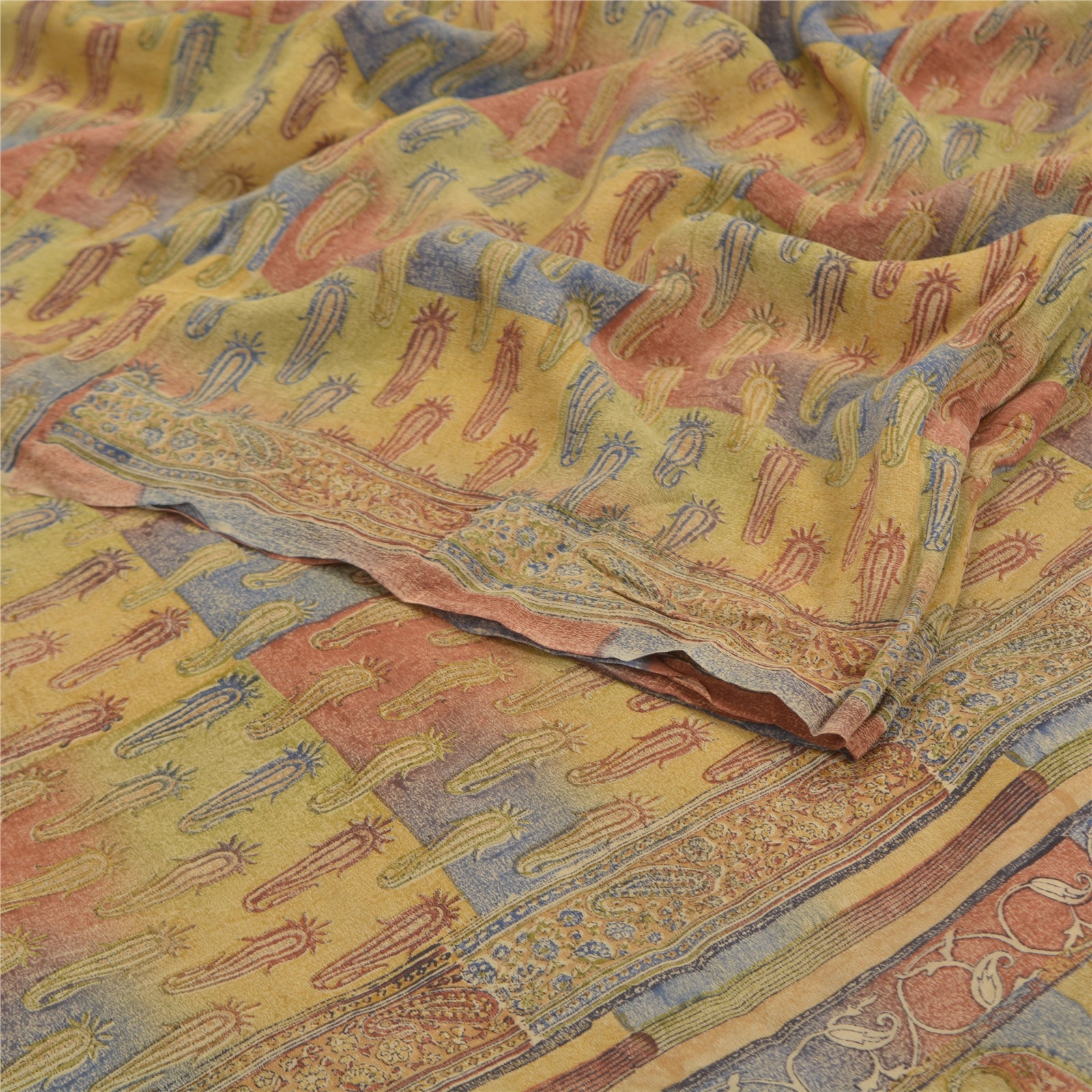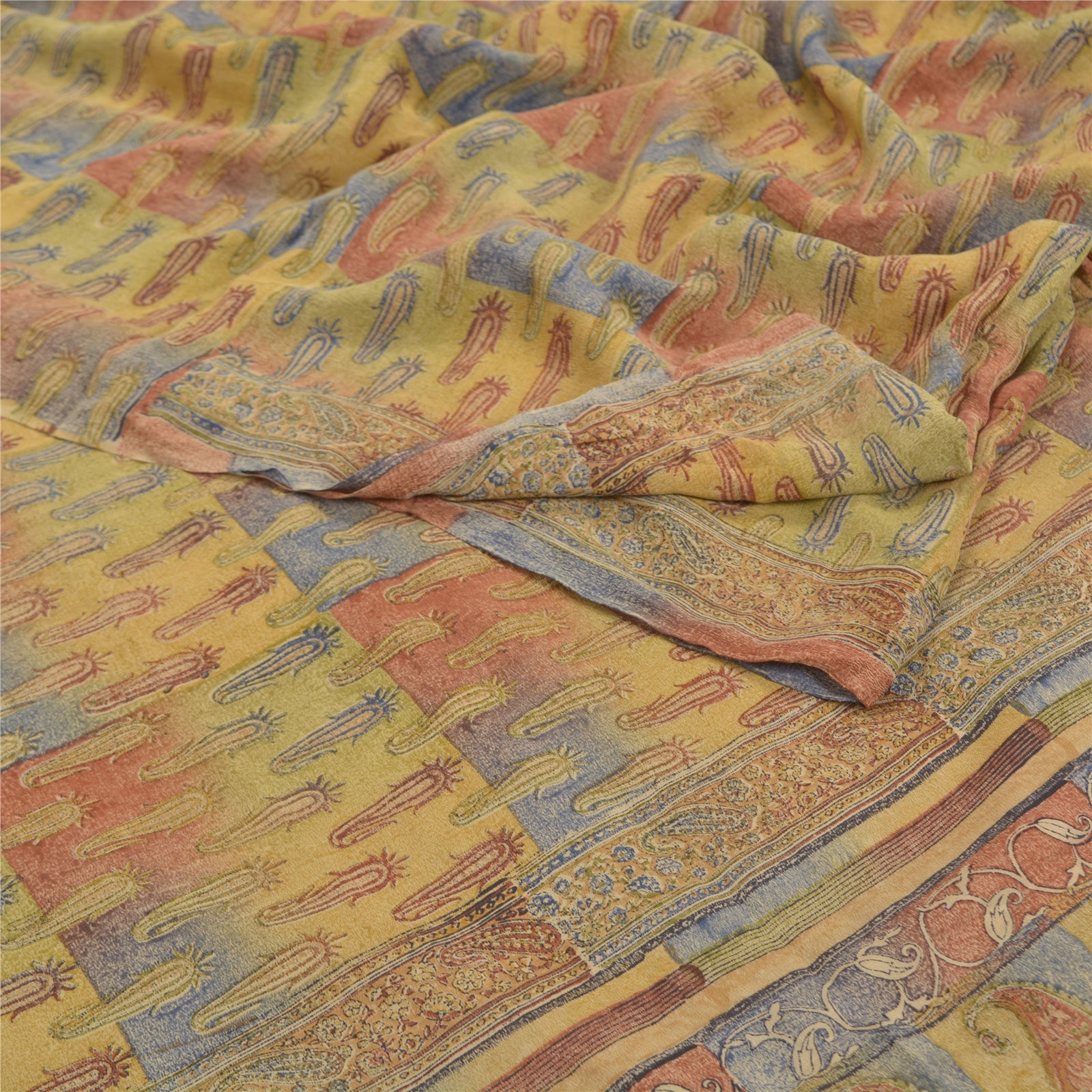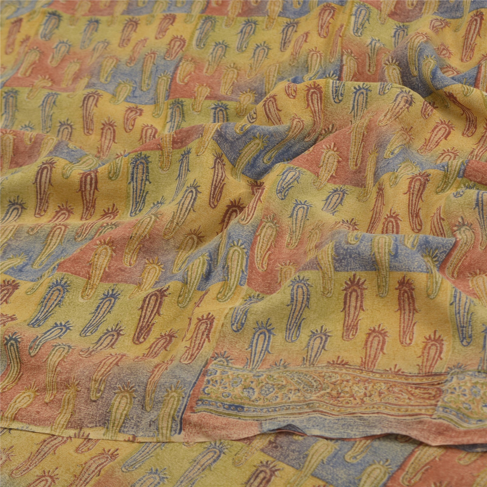 Beautiful Multi Color Colored Saree 100% Pure Crepe Silk Printed Base Sustainable Fabric Pallu & Border has printed floral design. Center part of the sari has printed paisley design. This unique vintage saree can be used for various crafting ideas even if you don't want to use it as a sari. Design a dress, use it as a throw, as window dressing, upholstery, sarongs, table linen and much more. Let your creative juices flow and use this decorated Sustainable Fabric in multiple fashion.