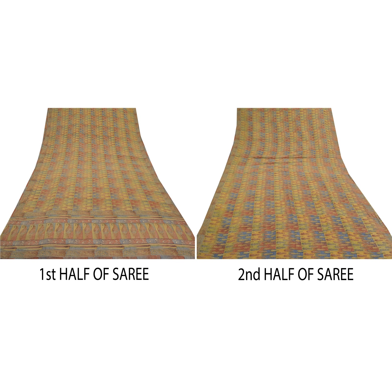 Sanskriti Vintage Indian Sarees Pure Crepe Silk Printed Sustainable Fabric Craft Sewing Sari