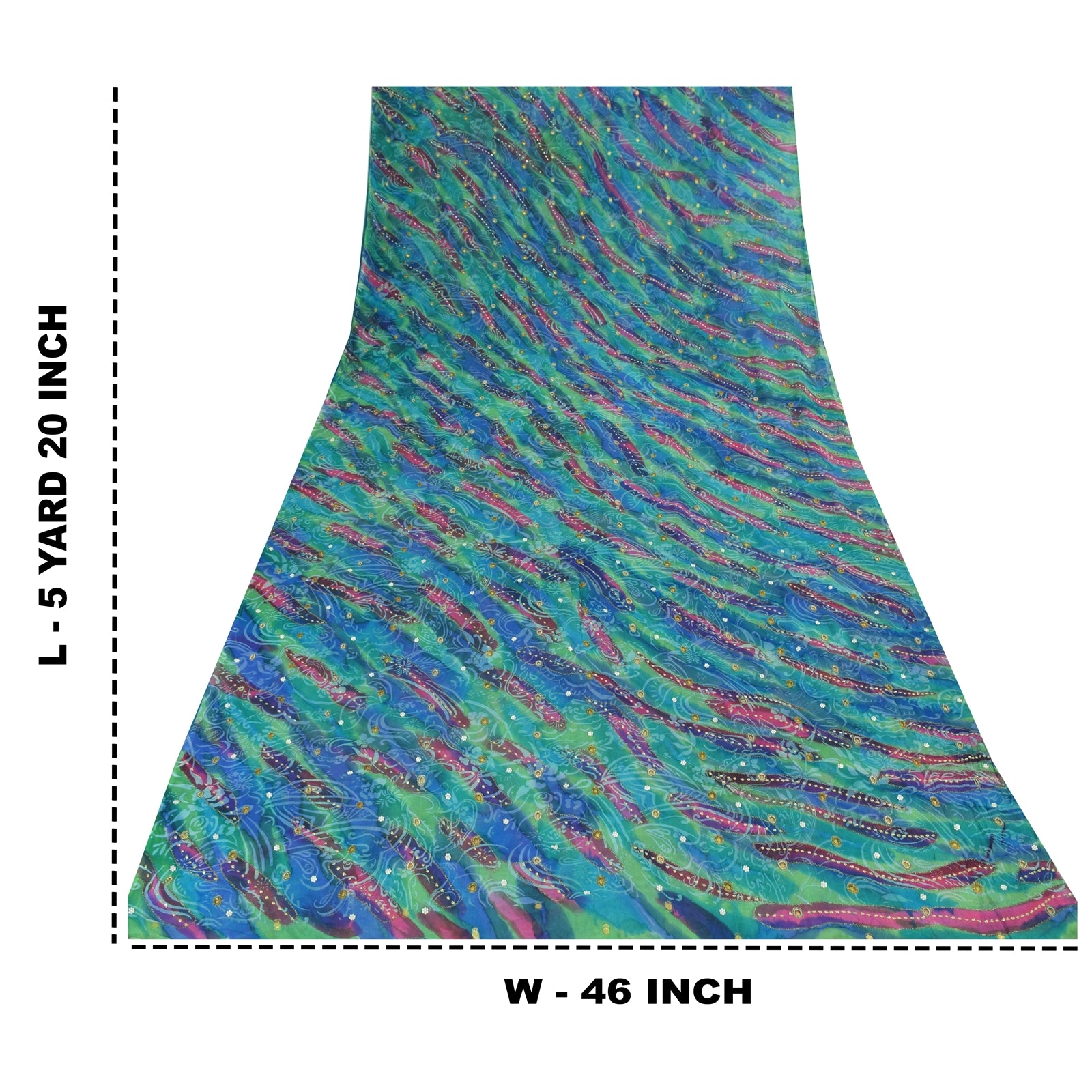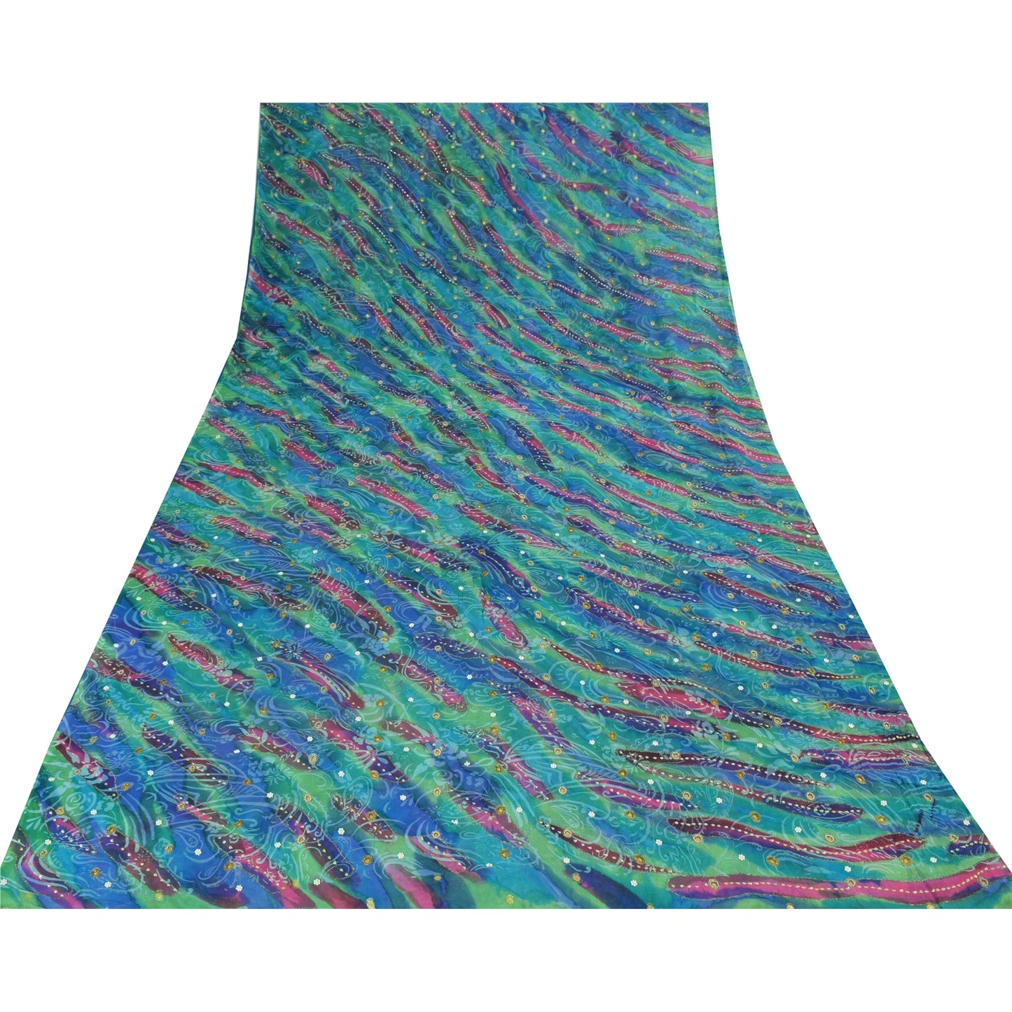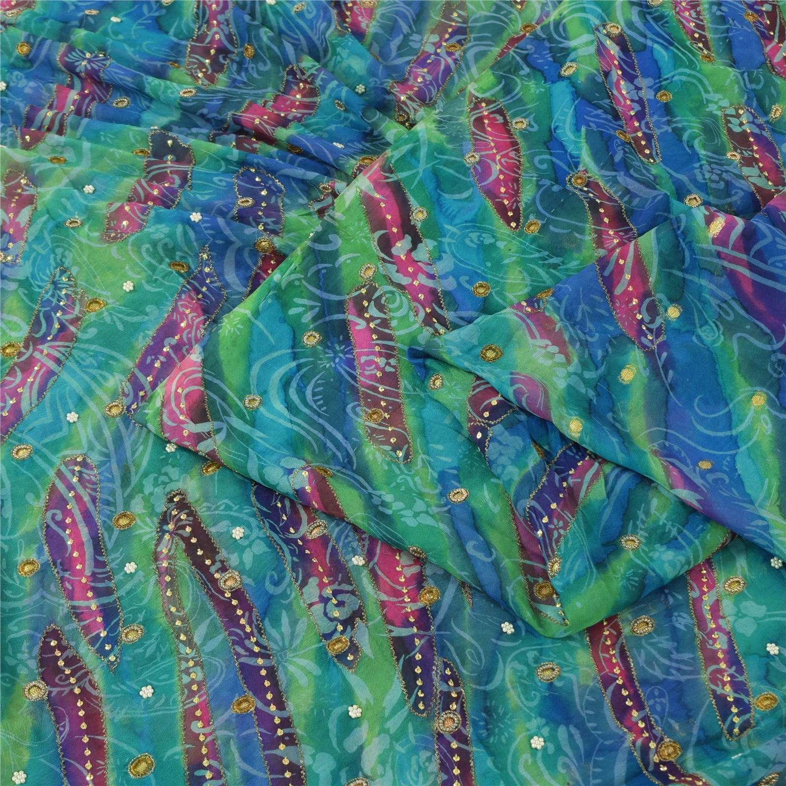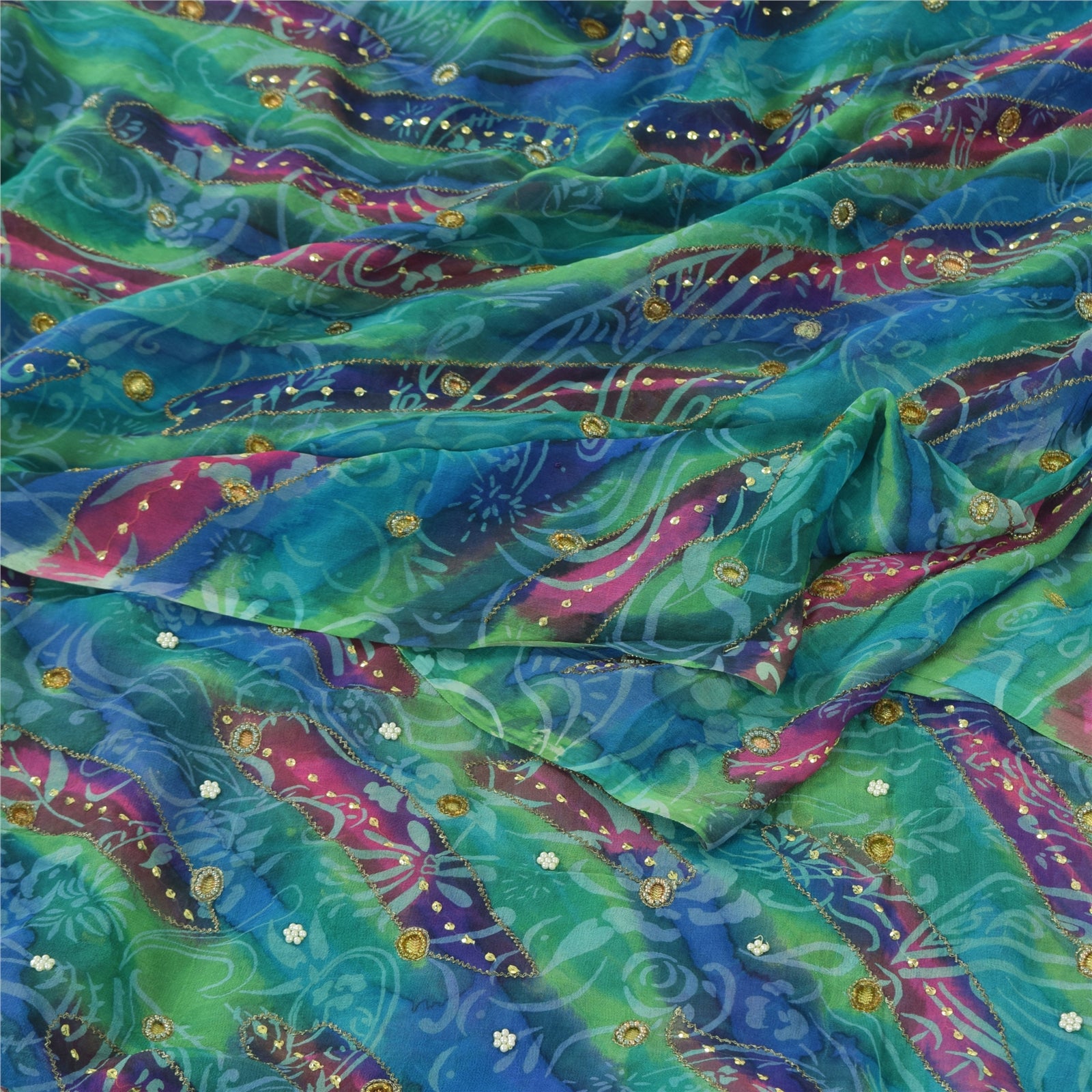Sanskriti Vintage Indian Sarees Pure Georgette Hand Beaded Sari Premium Sustainable Fabric