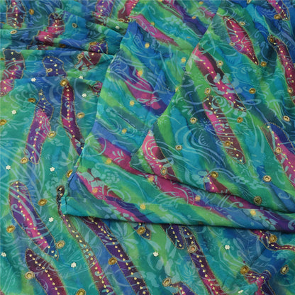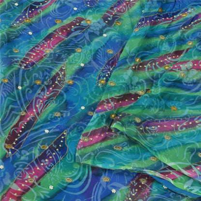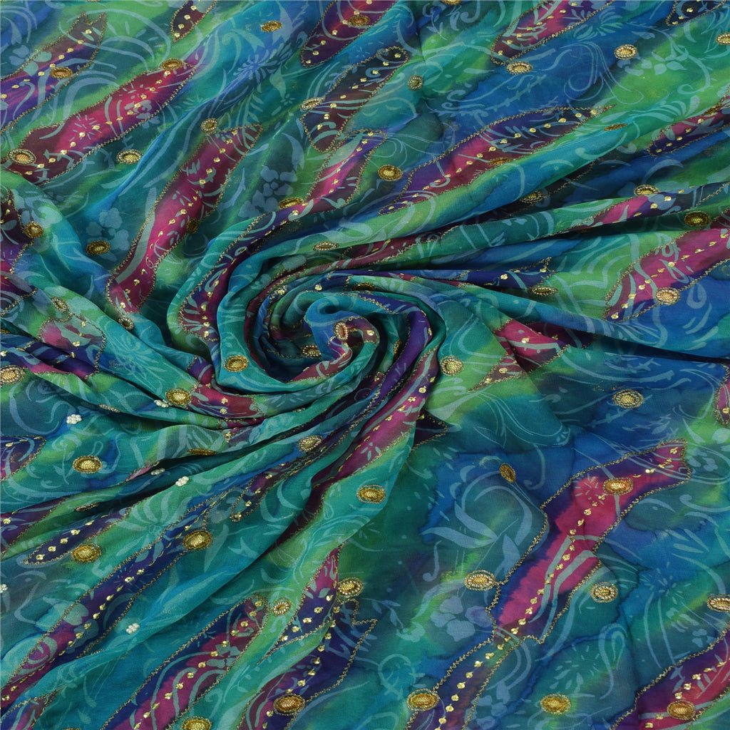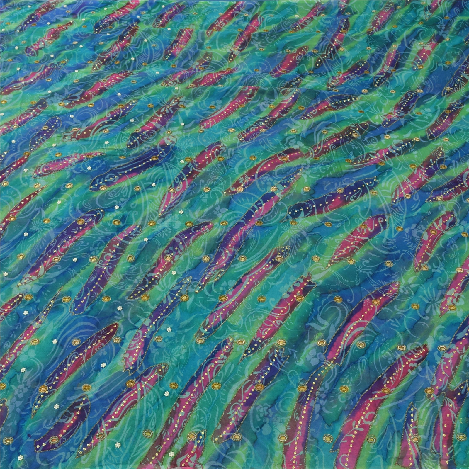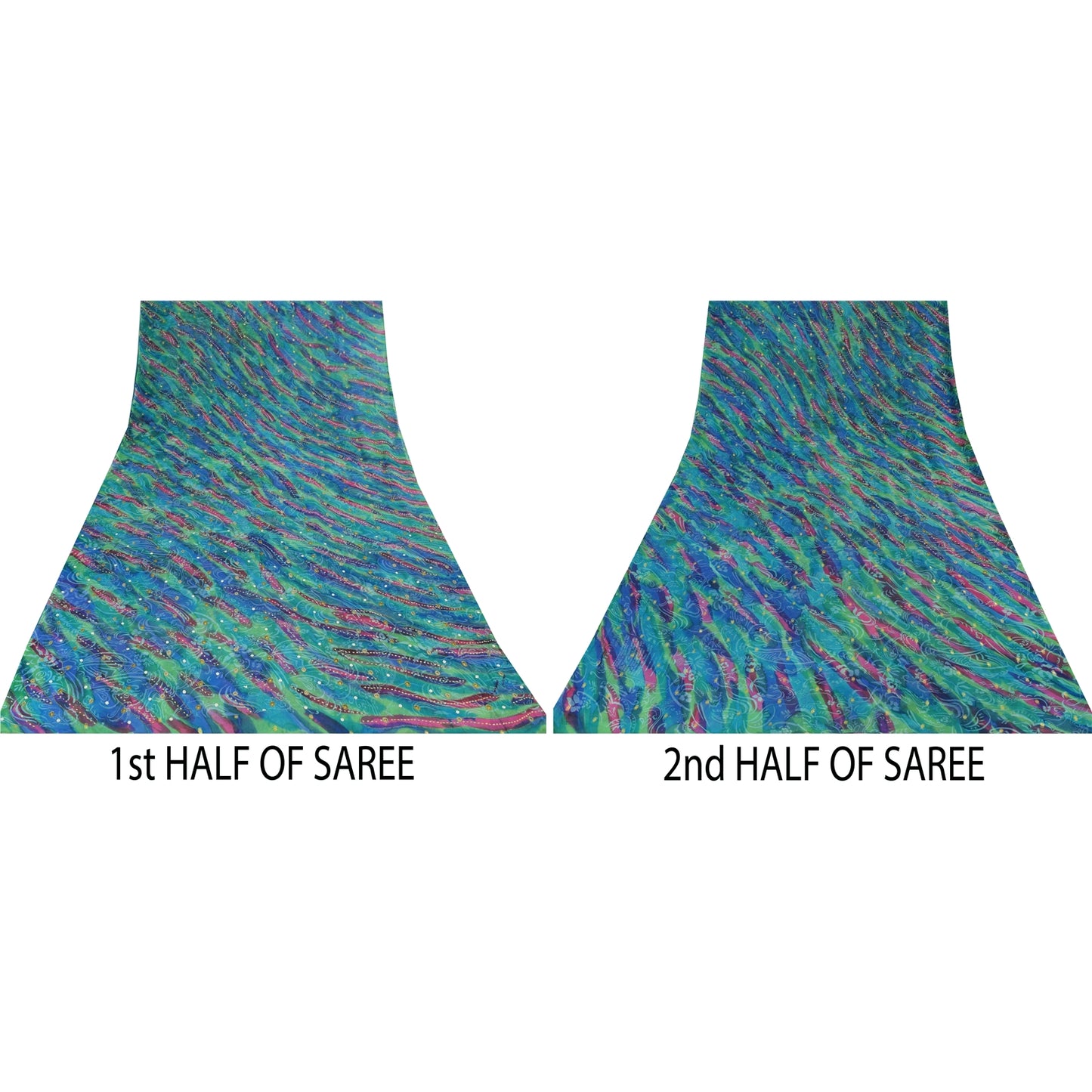 Sanskriti Vintage Indian Sarees Pure Georgette Hand Beaded Sari Premium Sustainable Fabric