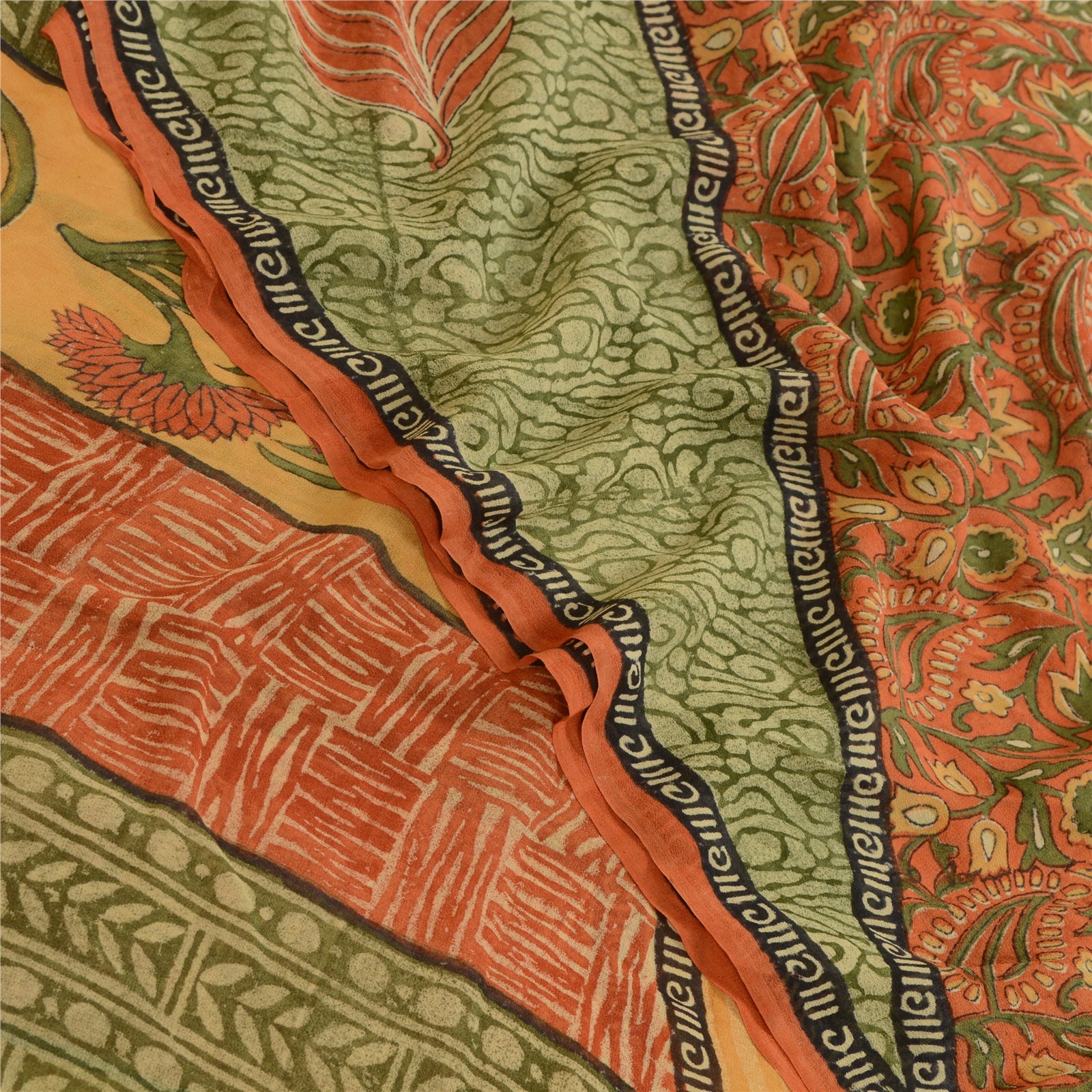 THE ITEM COLOR OR SHADE MAY BE DARKER OR LIGHTER THAN THE PICTURE.' Beautiful multi colored pure georgette silk printed saree. All over sari has printed floral & abstract design. This unique vintage saree can be used for various crafting ideas even if you don't want to use it as a sari. Design a dress, use it as a as window dressing, upholstery, sarongs, throw, dress making and table linen much more. Let your creative juices flow and use this decorated Sustainable Fabric in multiple fashion. International buyers please note: Import duties, taxes, and charges are not included in the item price or postage cost. These charges are the buyer's responsibility. Please check with your country's customs office to determine what these additional costs will be prior to bidding or buying. Buyer will pay custom duty/tax. It is calculated and charged differently by every country. As a seller I do not have any control over it.VAT or sales tax is calculated by the platform at the time of checkout. Customs charge is payable at the time of delivery.