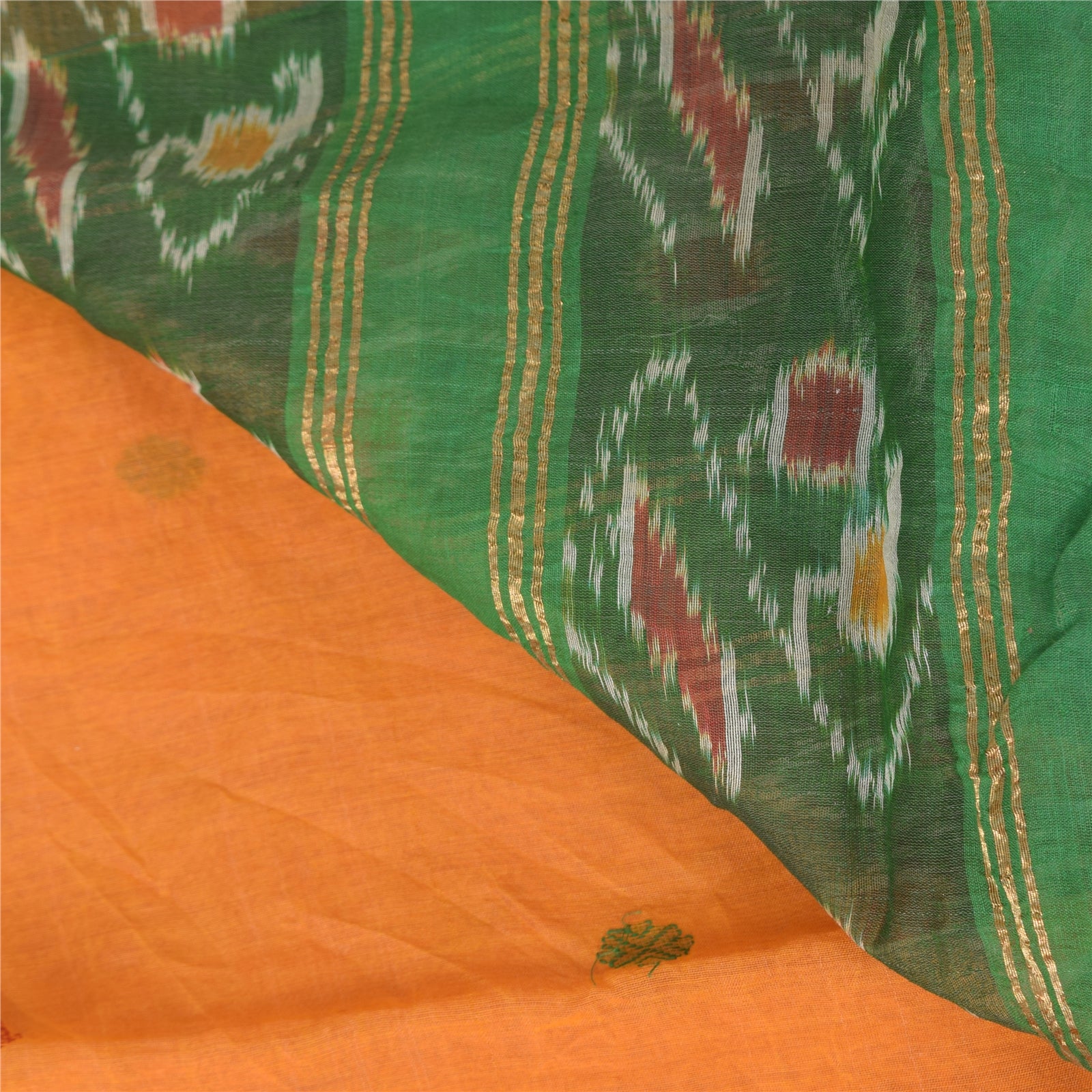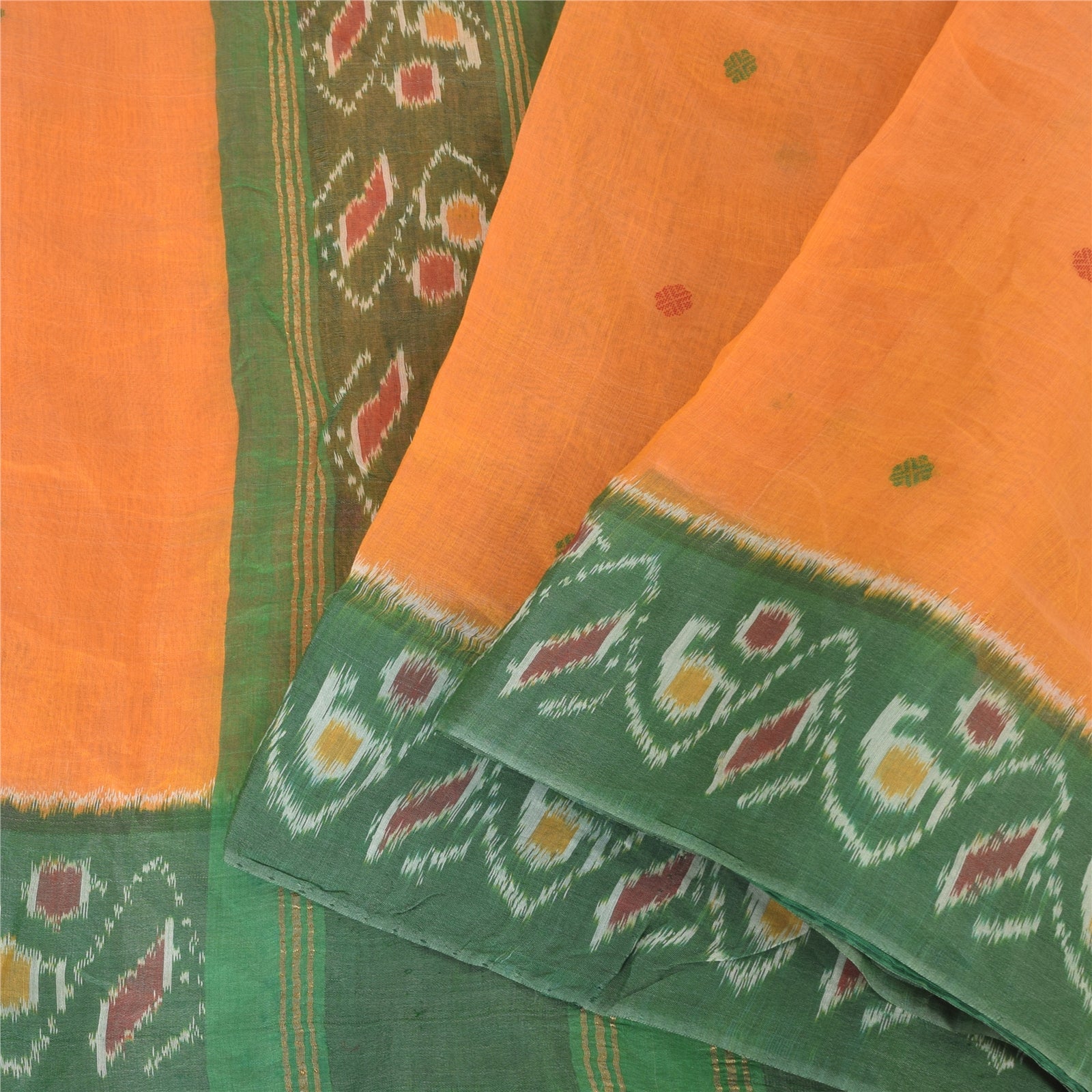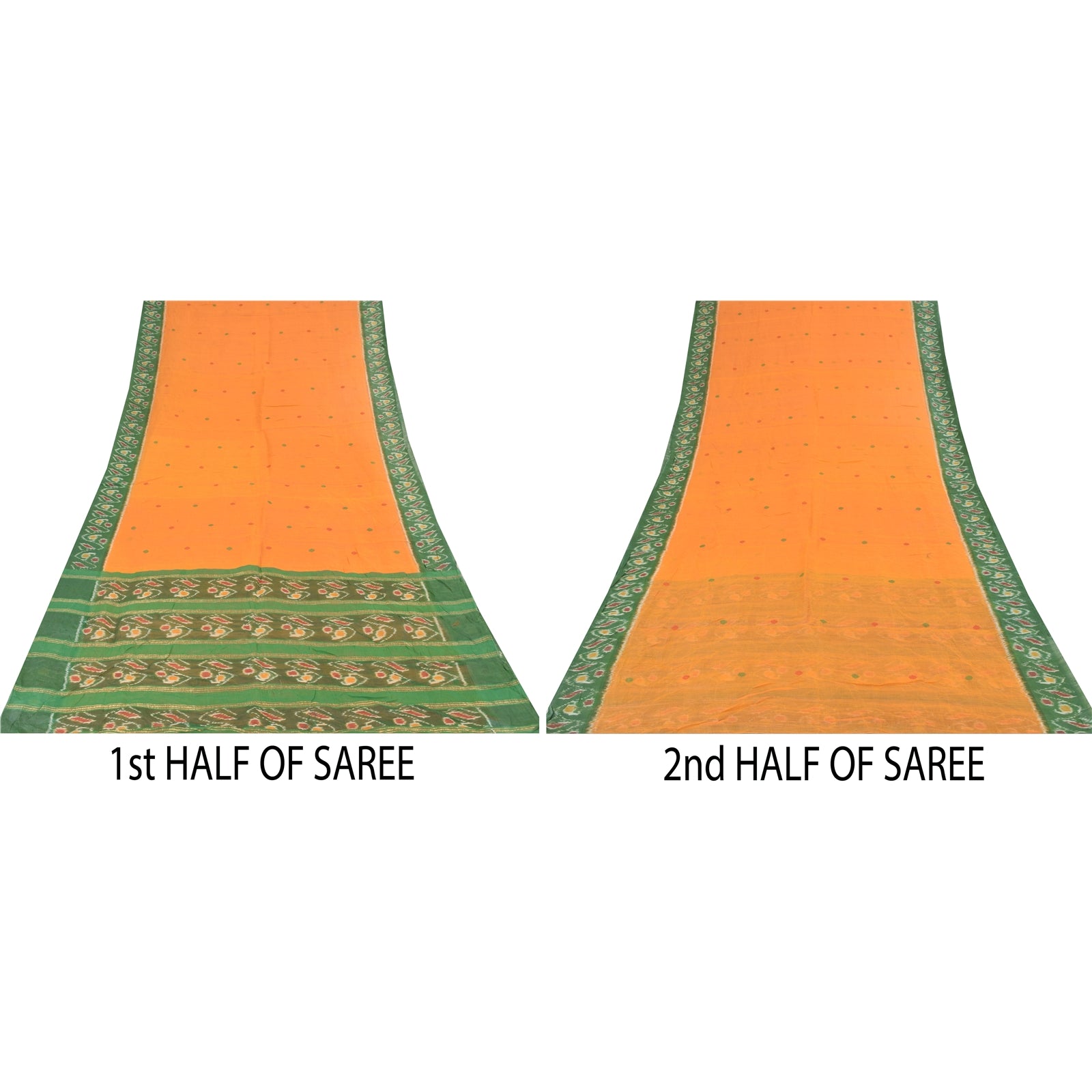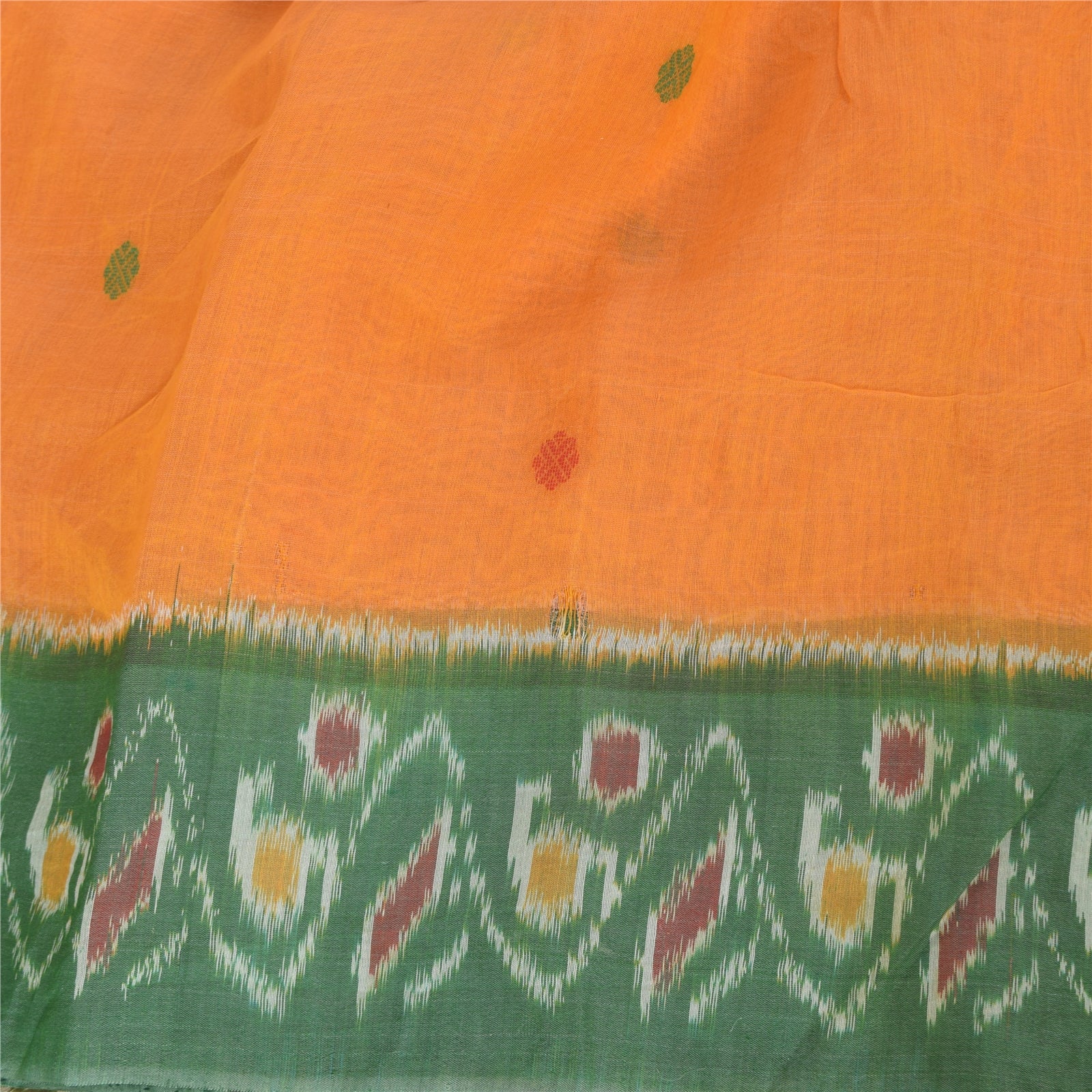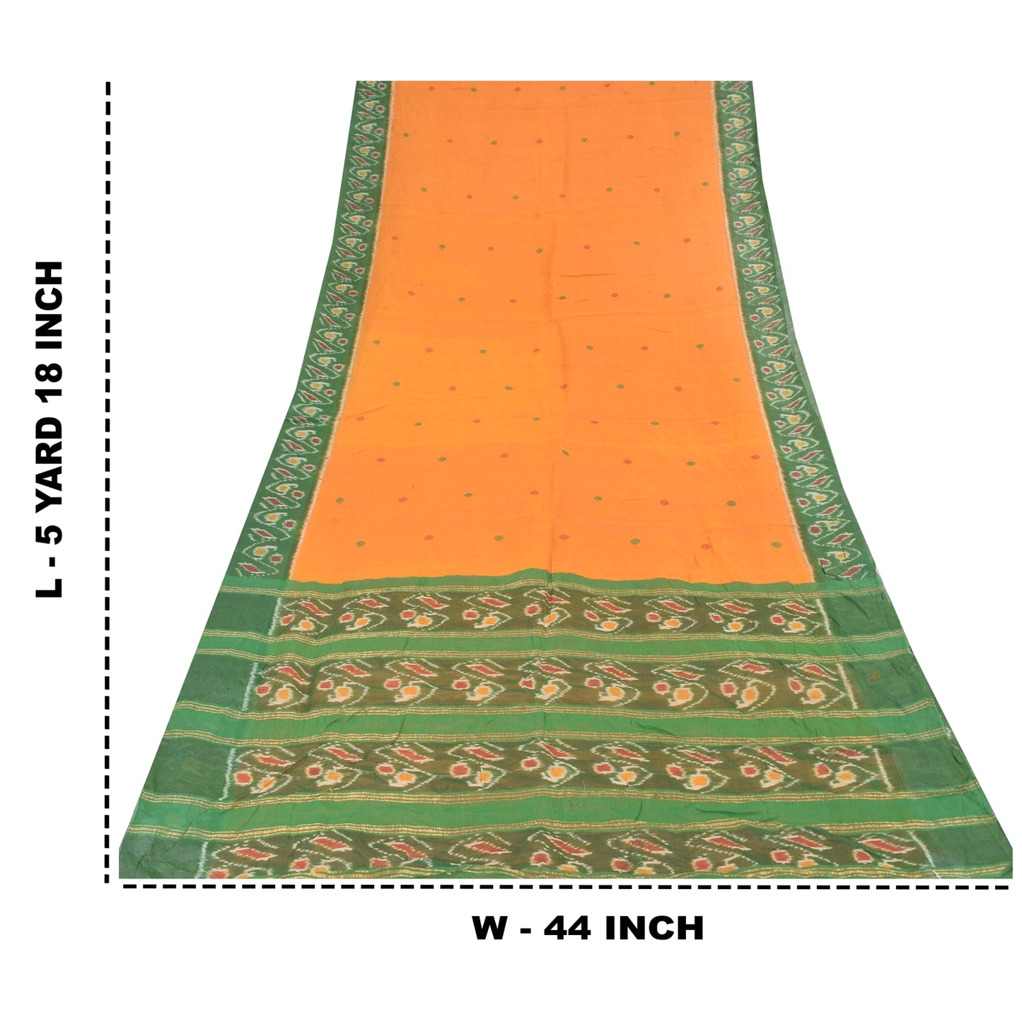 THE ITEM COLOR OR SHADE MAY BE DARKER OR LIGHTER THAN THE PICTURE.' An Awesome Sari In 100% Pure Cotton Shade Of Yellow/Green Colored Hand Woven Ikat Sari/Sustainable Fabric. Pallu & Border Features floral design embellished with golden zari woven work & multi color woven work. You Can See Center Portion Of The Sari Has multi color thread woven Work With Floral design This unique vintage saree can be used for various crafting ideas for example design a dress, use it as a throw, as window dressing, upholstery, table linen and much more. Let your creative juices flow and use this decorated Sustainable Fabric in multiple fashion Shipping note: International buyers please note: Import duties, taxes, and charges are not included in the item price or postage cost. These charges are the buyer's responsibility. Please check with your country's customs office to determine what these additional costs will be prior to bidding or buying. Buyer will pay custom duty/tax. It is calculated and charged differently by every country. As a seller I do not have any control over it. VAT or sales tax is calculated by the platform at the time of checkout. Customs charge is payable at the time of delivery. SKU: PS-64137