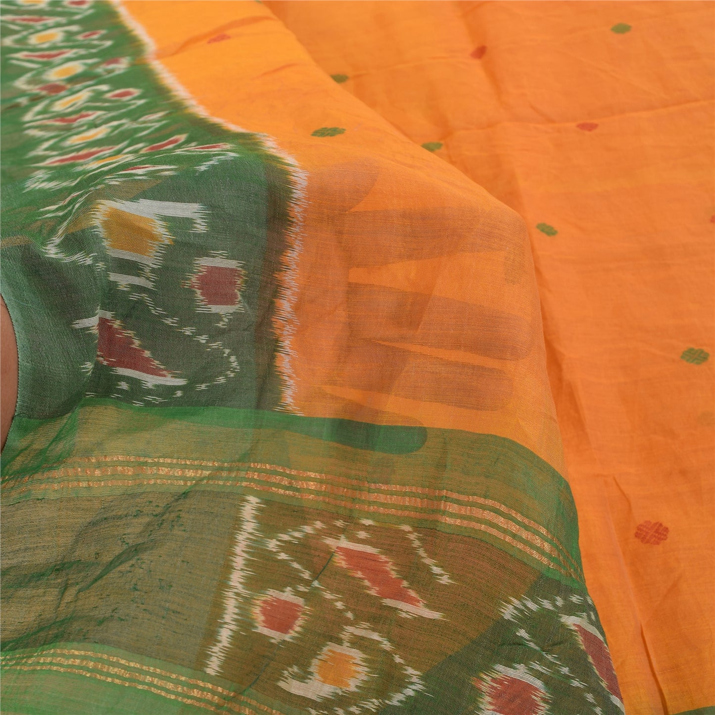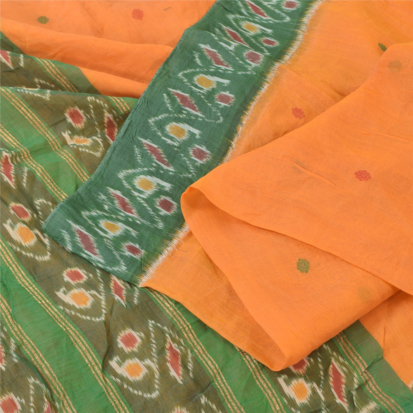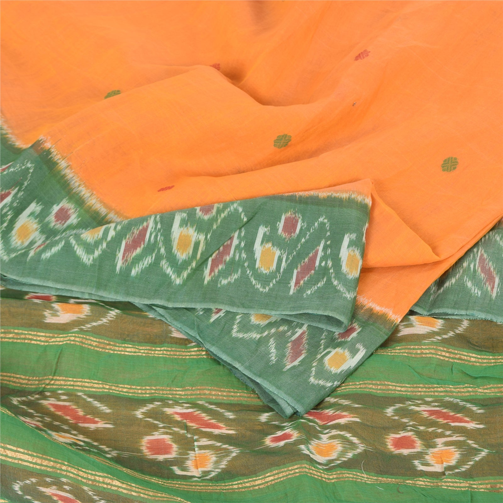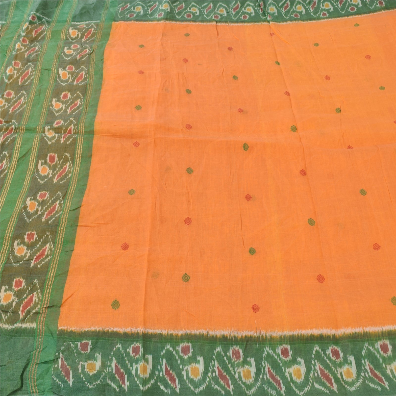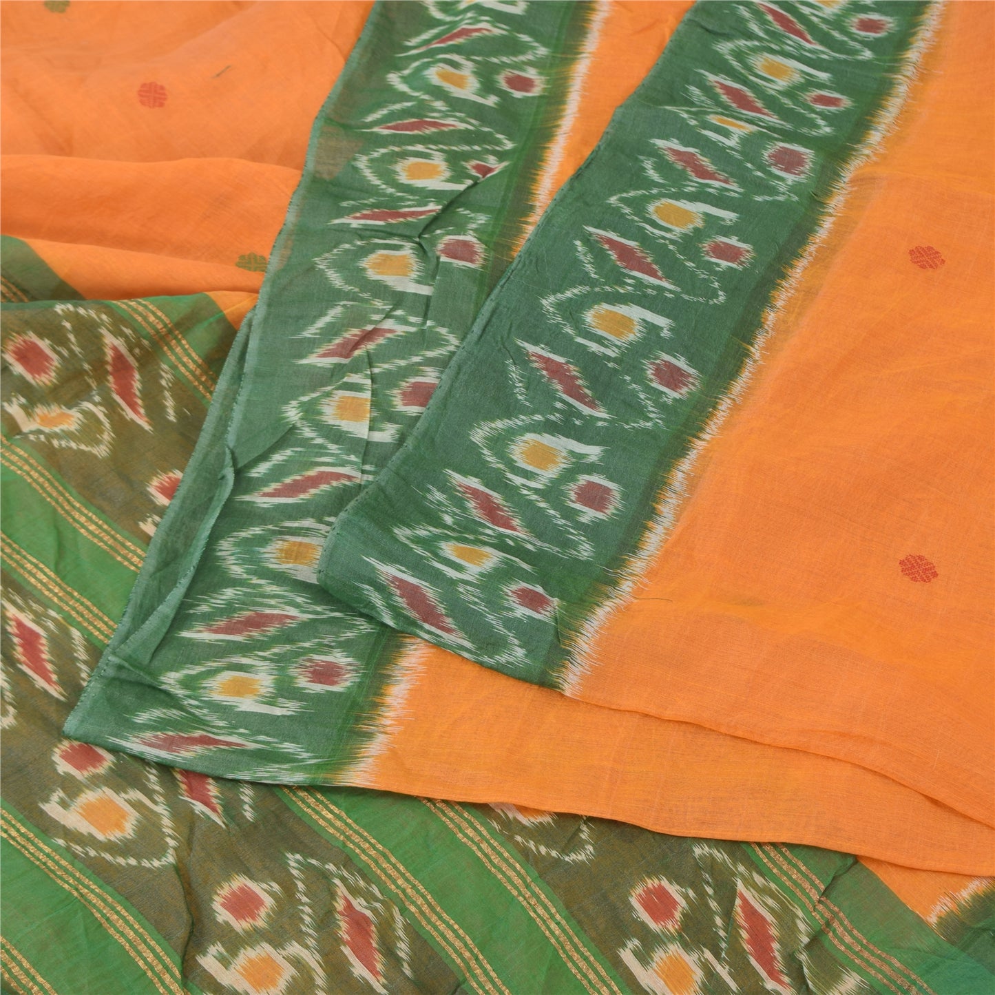 THE ITEM COLOR OR SHADE MAY BE DARKER OR LIGHTER THAN THE PICTURE.' An Awesome Sari In 100% Pure Cotton Shade Of Yellow/Green Colored Hand Woven Ikat Sari/Sustainable Fabric. Pallu & Border Features floral design embellished with golden zari woven work & multi color woven work. You Can See Center Portion Of The Sari Has multi color thread woven Work With Floral design This unique vintage saree can be used for various crafting ideas for example design a dress, use it as a throw, as window dressing, upholstery, table linen and much more. Let your creative juices flow and use this decorated Sustainable Fabric in multiple fashion Shipping note: International buyers please note: Import duties, taxes, and charges are not included in the item price or postage cost. These charges are the buyer's responsibility. Please check with your country's customs office to determine what these additional costs will be prior to bidding or buying. Buyer will pay custom duty/tax. It is calculated and charged differently by every country. As a seller I do not have any control over it. VAT or sales tax is calculated by the platform at the time of checkout. Customs charge is payable at the time of delivery. SKU: PS-64137