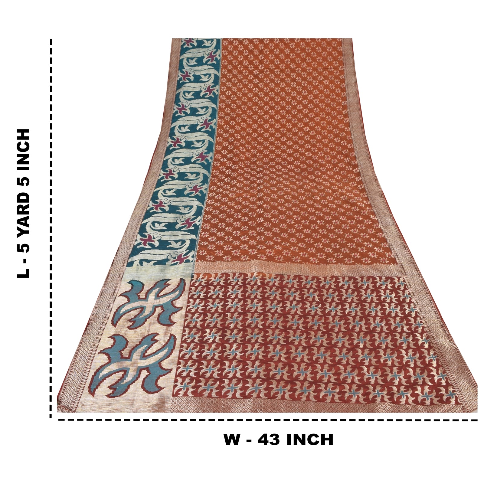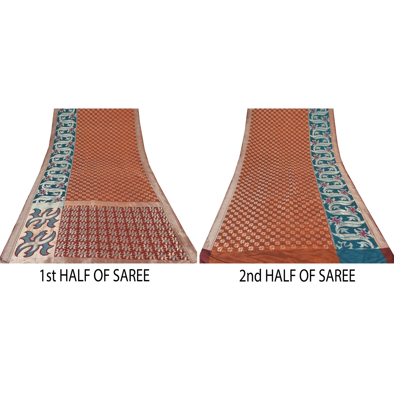 Sanskriti Vintage Indian Sarees Pure Silk Woven Dark Red Sari Floral Fabric