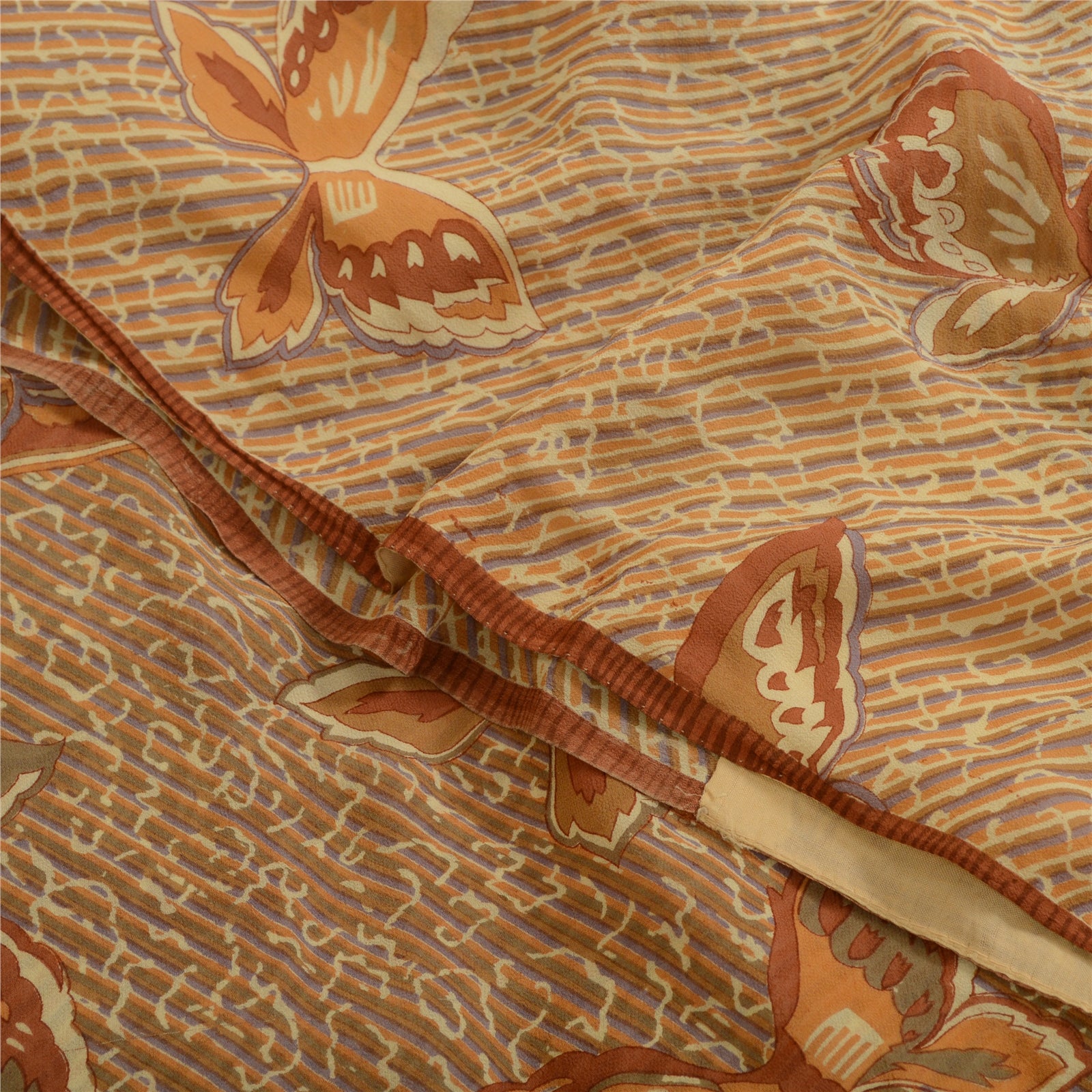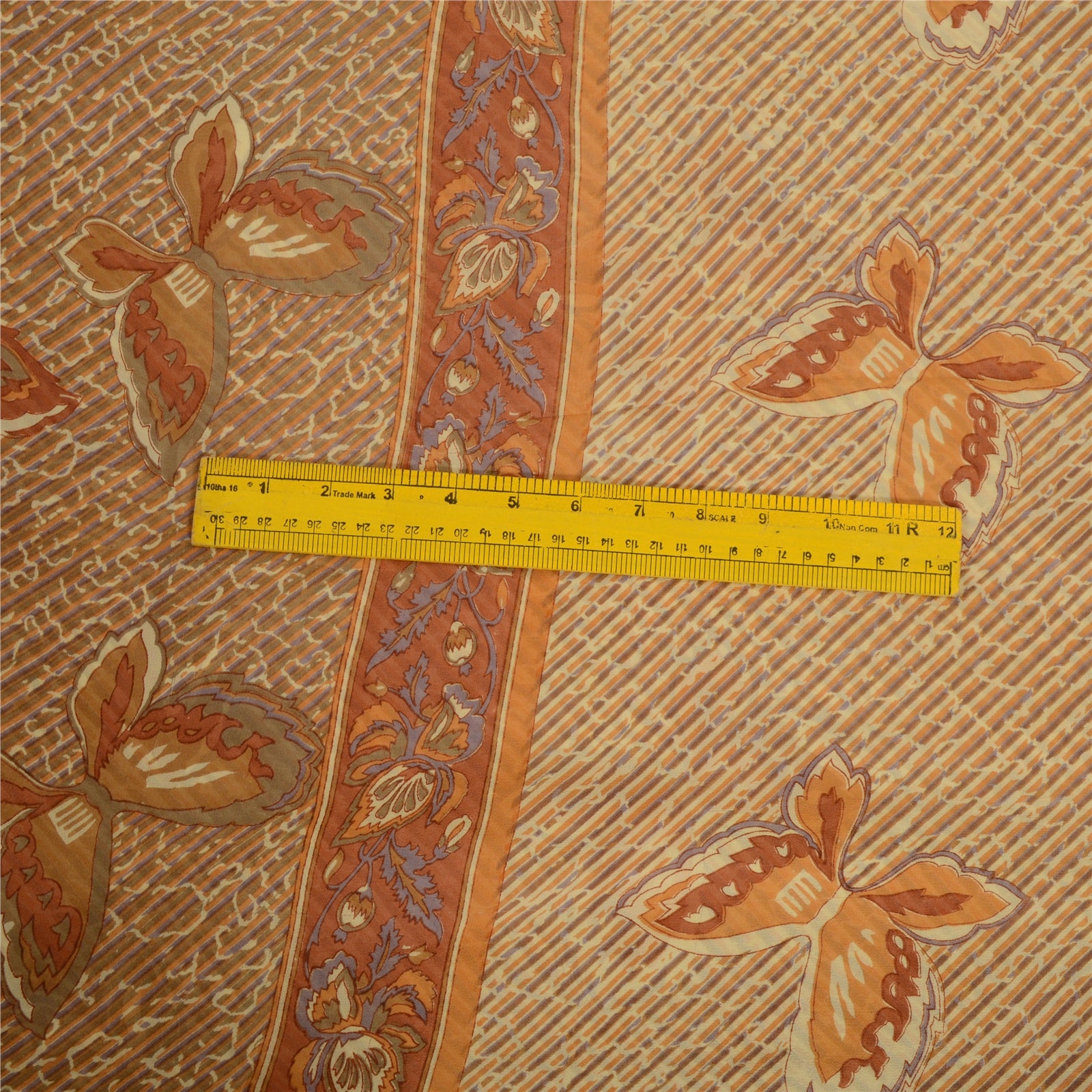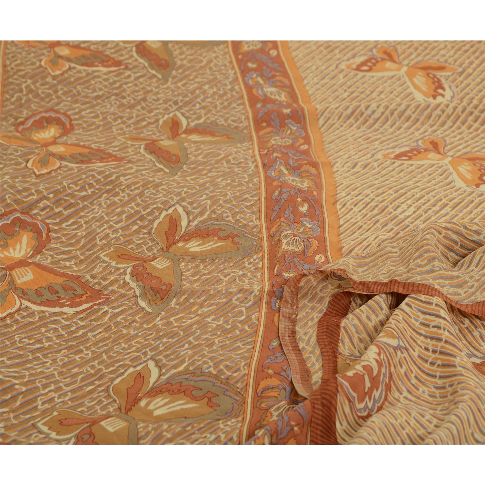 Sanskriti Vintage Ivory/Brown Sarees Pure Georgette Printed Sari Craft Sustainable Fabric